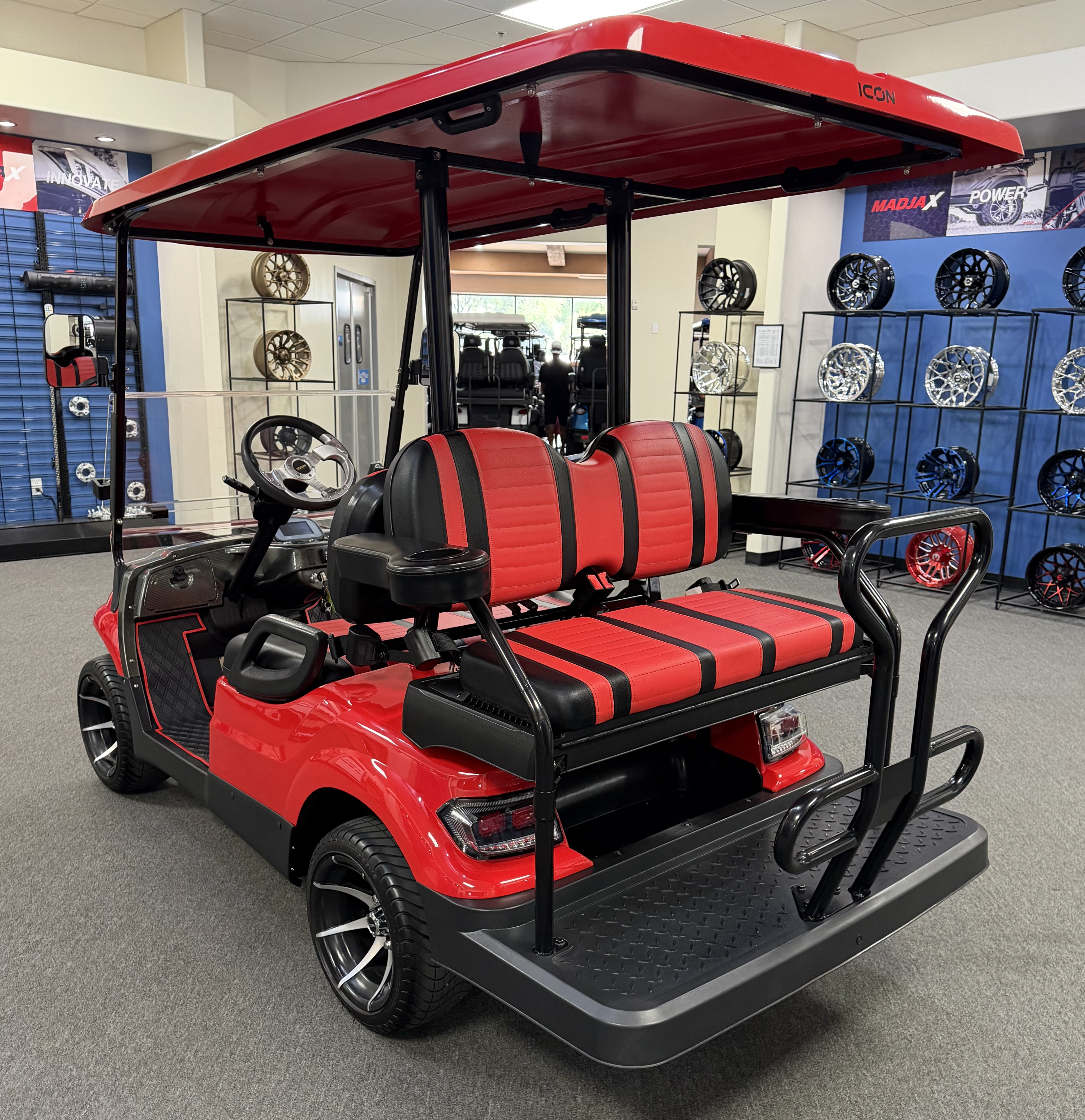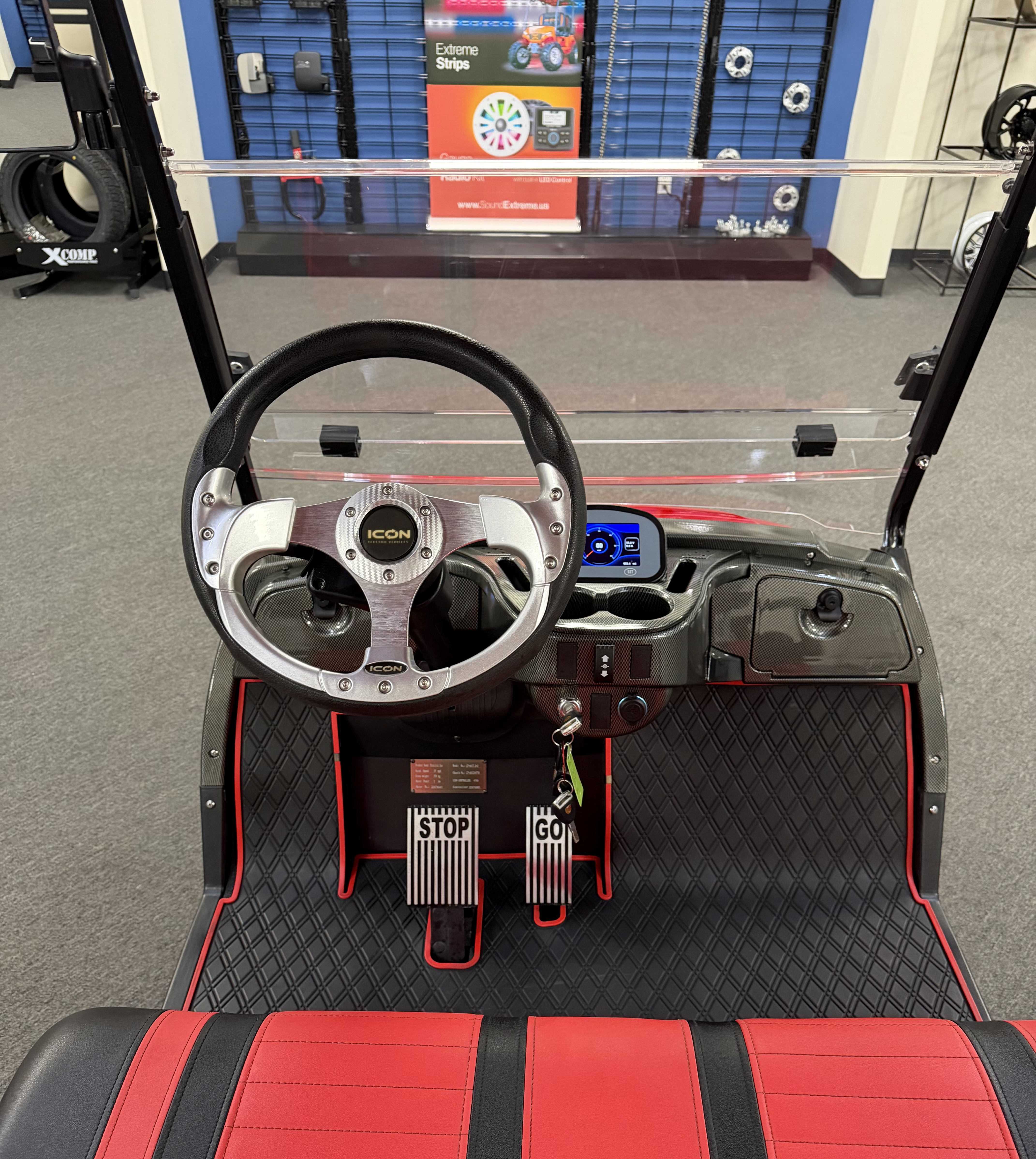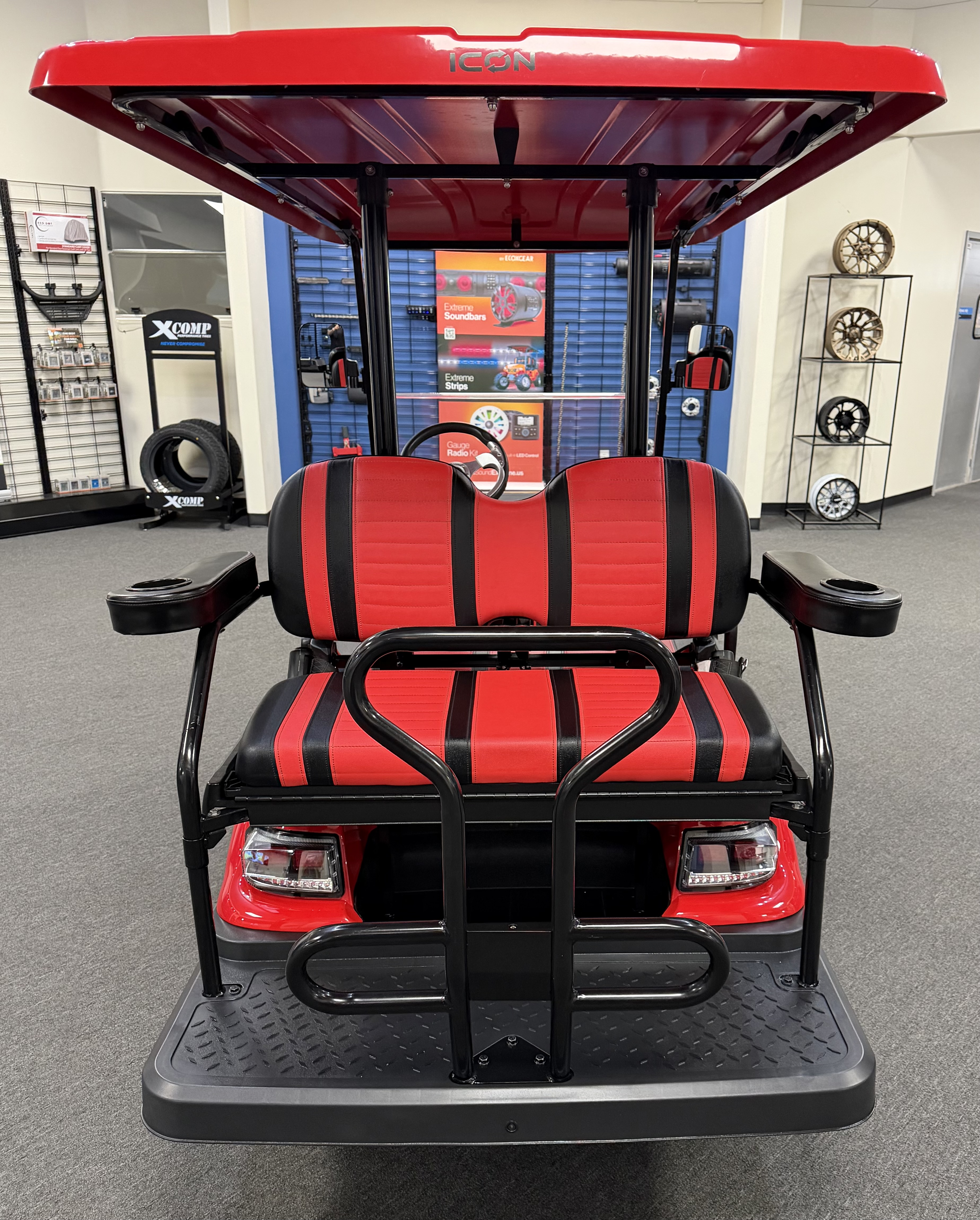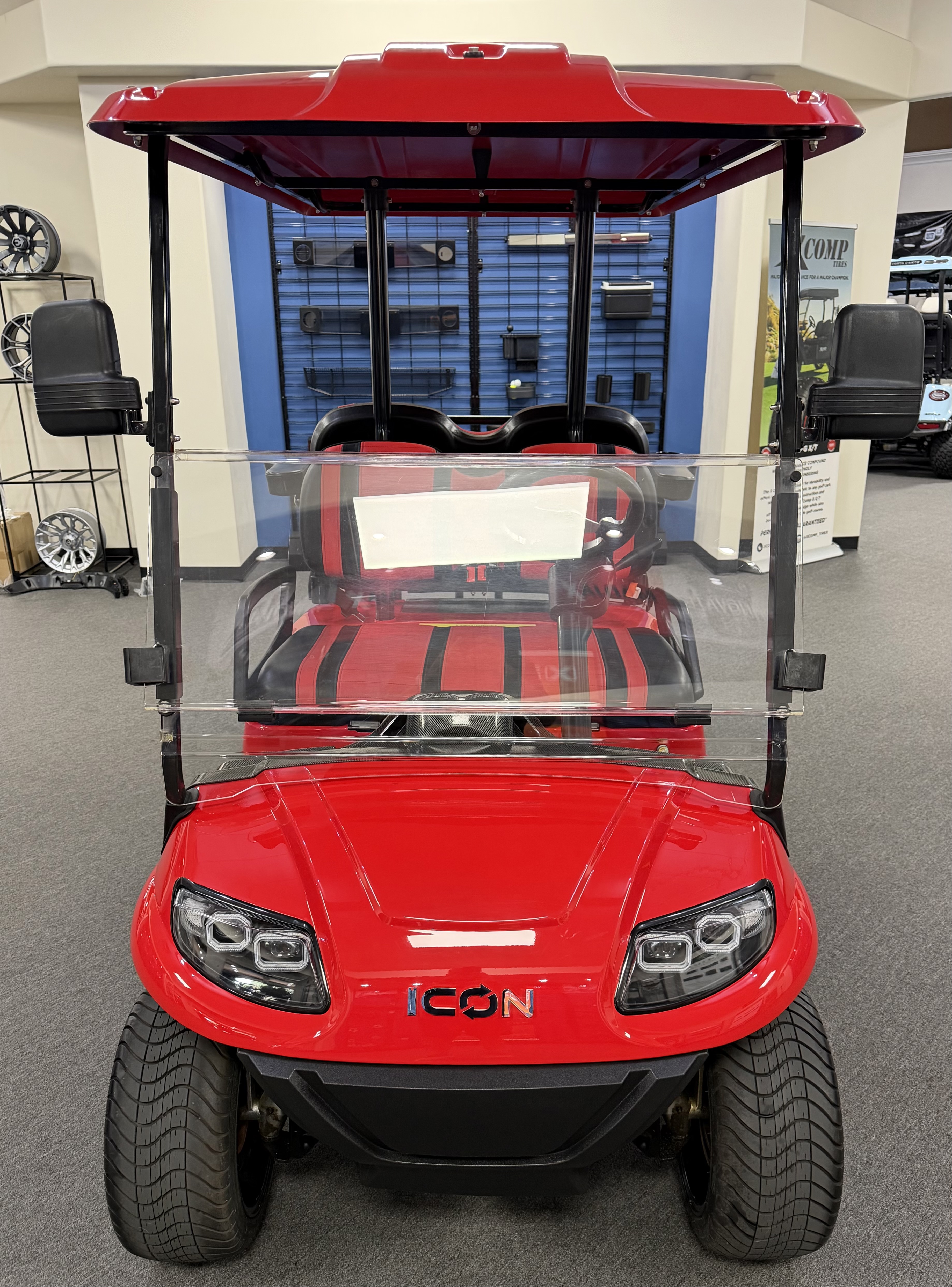 **** FRESH TRADE **** 2023 Icon i40 Torch Red, ECO Battery Lithium ( 8 Year Warranty Battery ), Backup Camera, Rear Arm Rest, Xtreme Floor Mat, Carbon Fiber Dash, USB Charger.  This Cart Has Been Garage Kept.  Financing Available