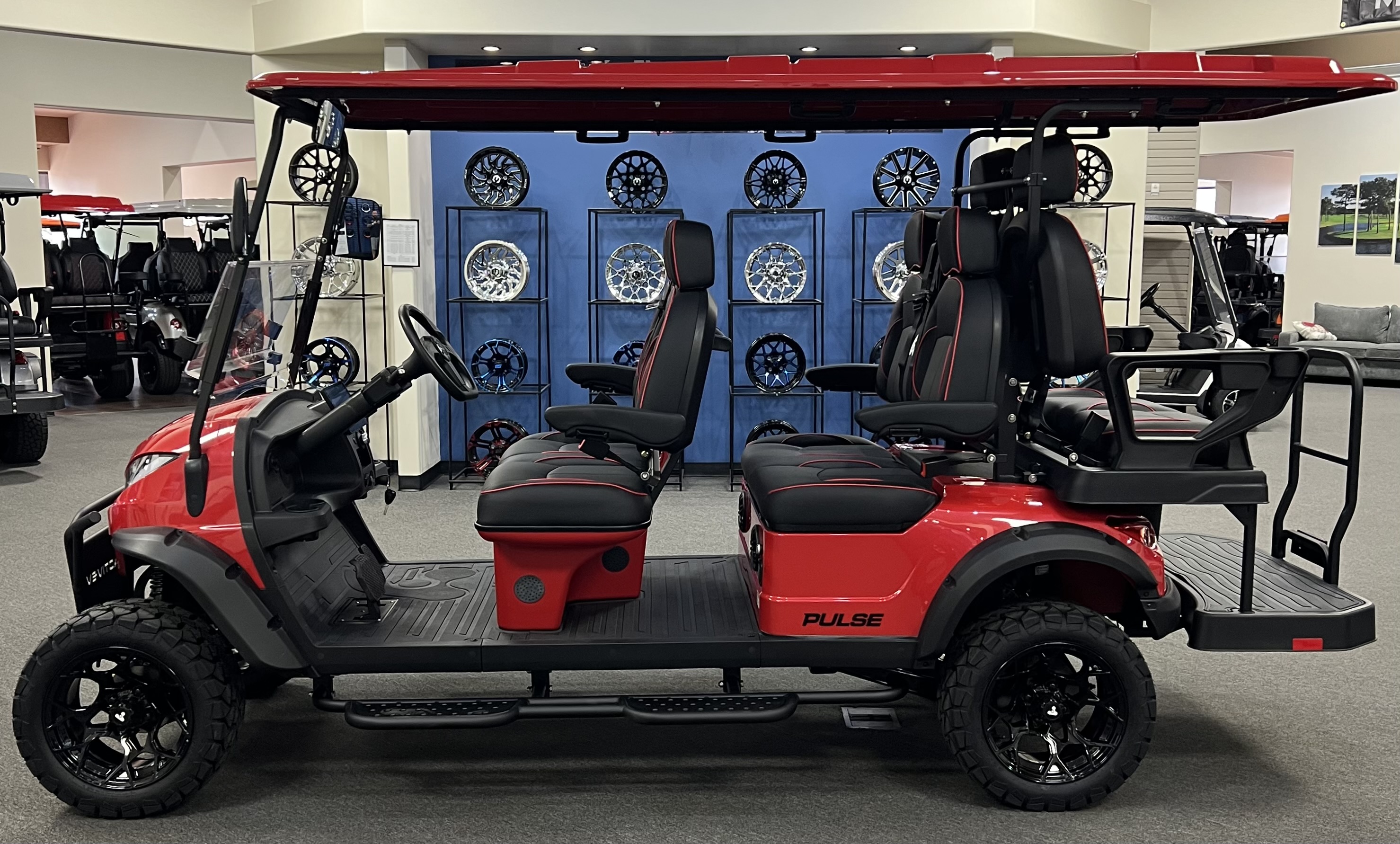 2024 ActivEV Pulse Lifted 6 Person Cart, Eco Battery Lithium, 10.1” LCD Touch Screen, Apple Car Play, Wireless Phone Charger, Sound System, Premium Captain’s Chairs, LED Head Lights, LED Turn Signal Mirrors, Back Up Camera, Adjustable Arm Rest, Unique Keys, and Much More. We Also Have a Full Line of Accessory Upgrades Along with Financing Available.