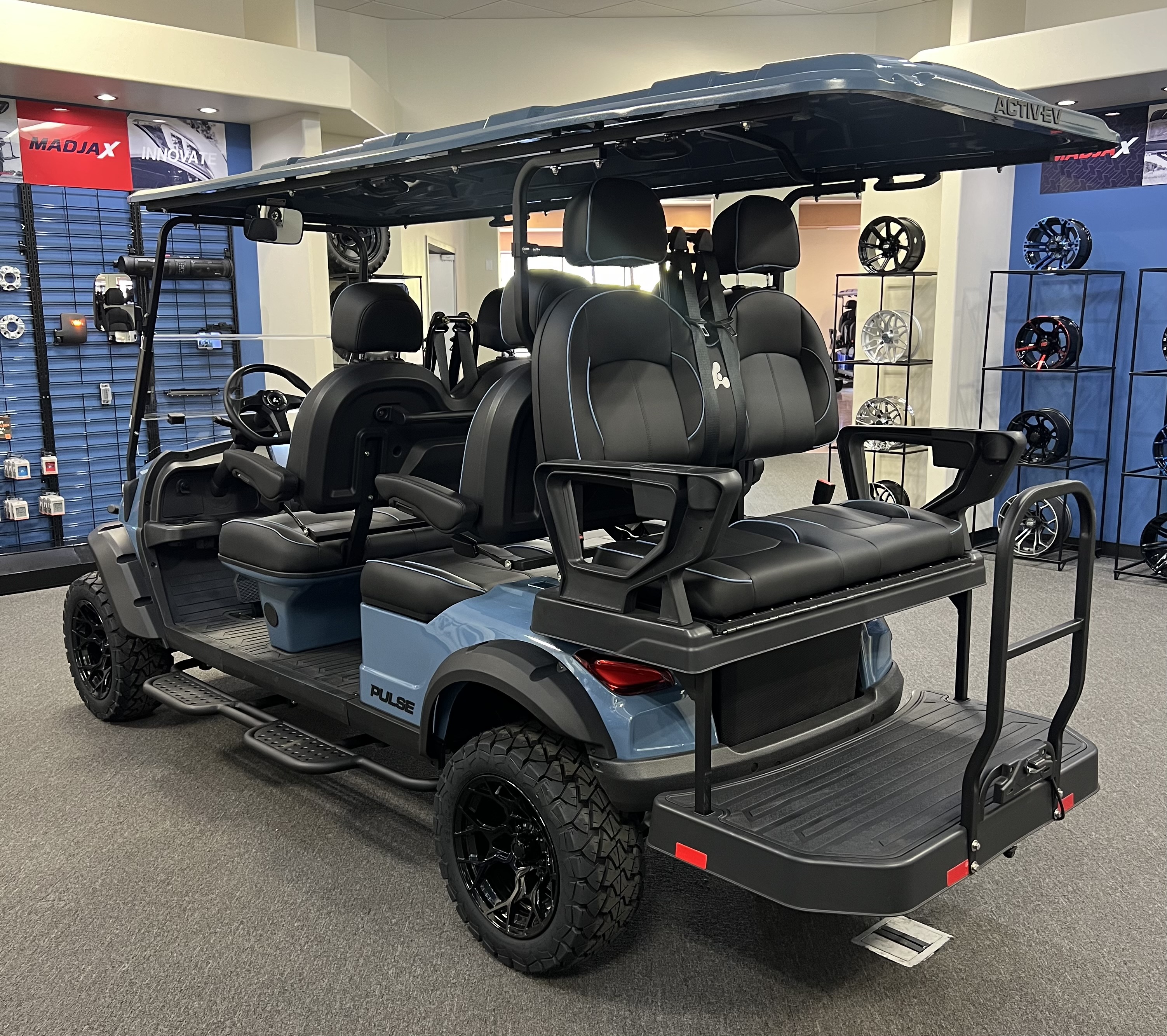 2024 ActivEV Pulse Lifted 6 Person Cart, Eco Battery Lithium, 10.1” LCD Touch Screen, Apple Car Play, Wireless Phone Charger, Sound System, Premium Captain’s Chairs, LED Head Lights, LED Turn Signal Mirrors, Back Up Camera, Adjustable Arm Rest, Unique Keys, and Much More. We Also Have a Full Line of Accessory Upgrades Along with Financing Available.