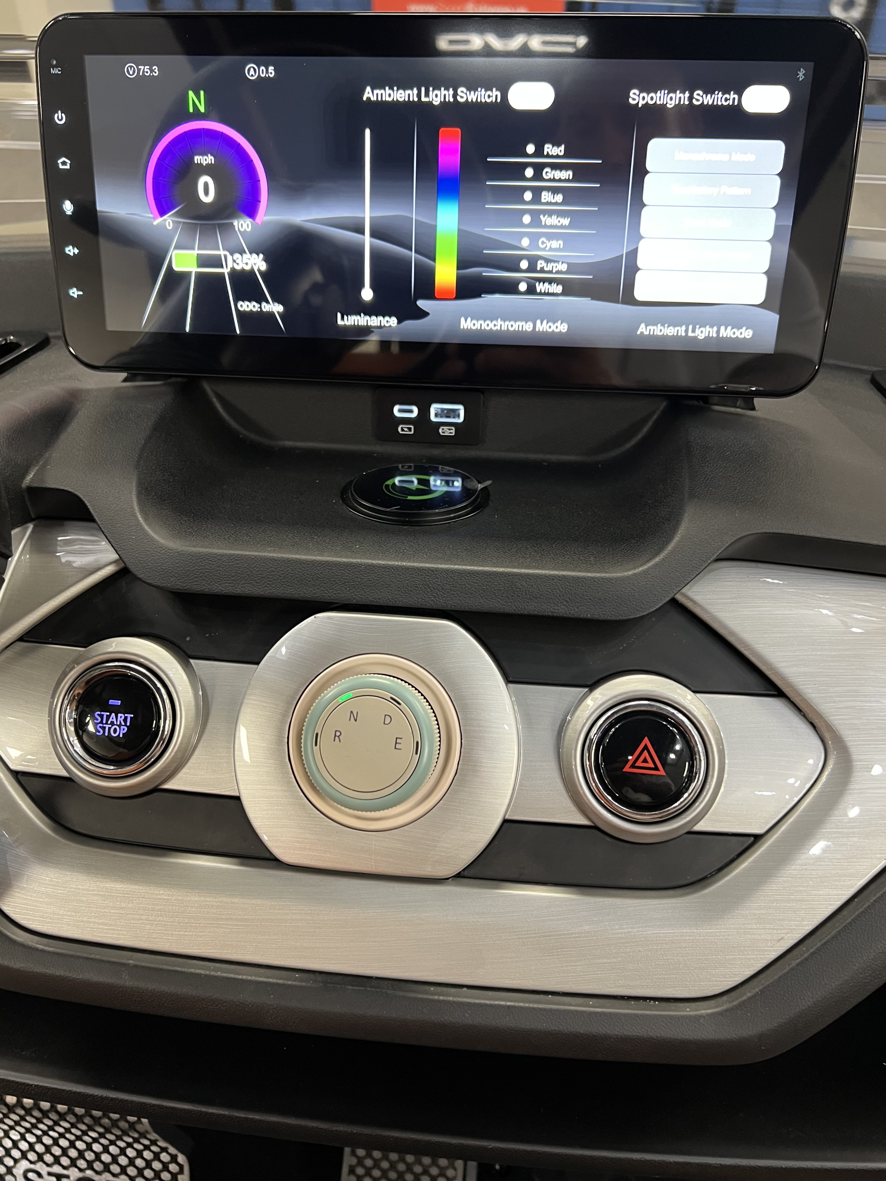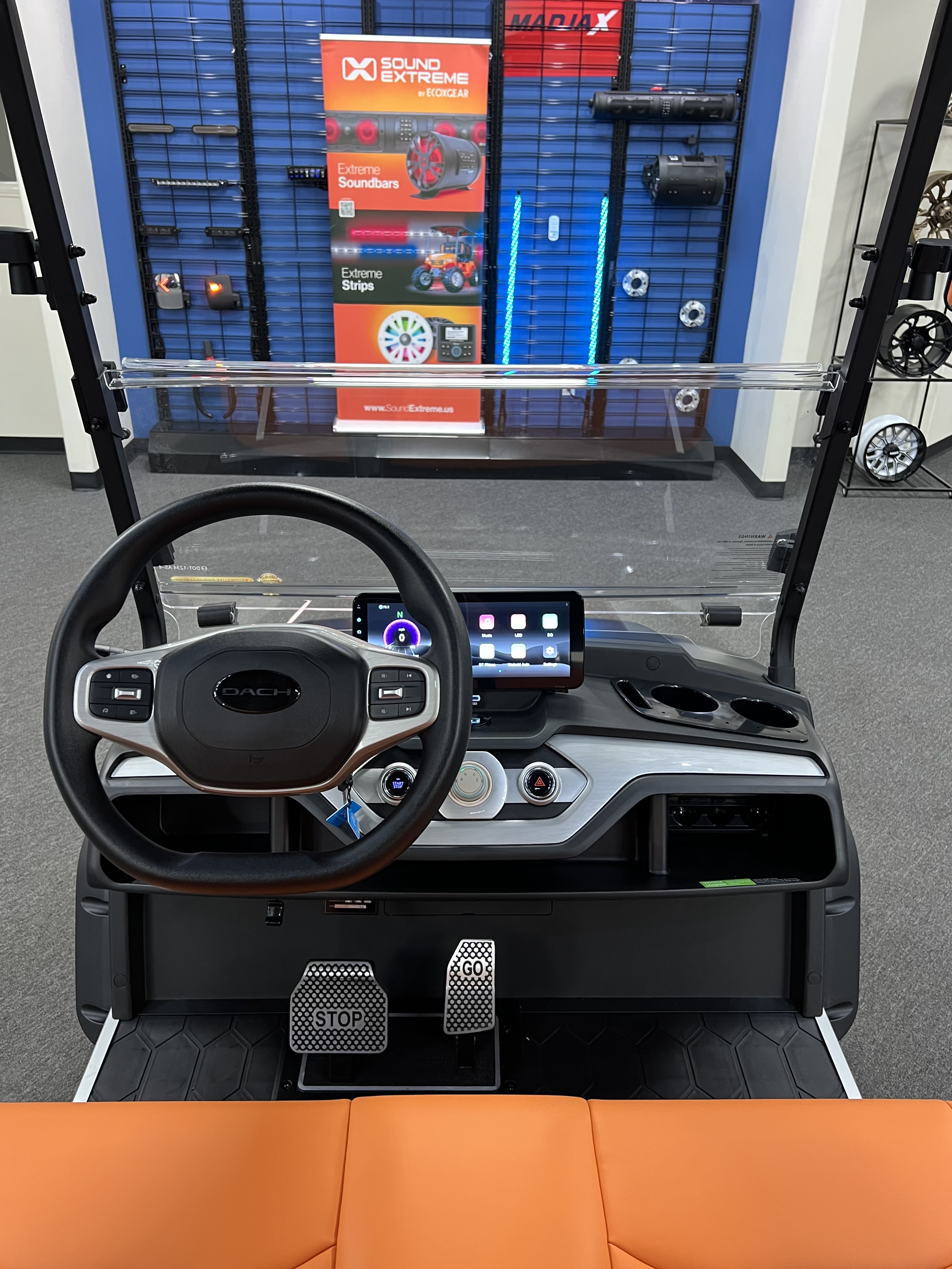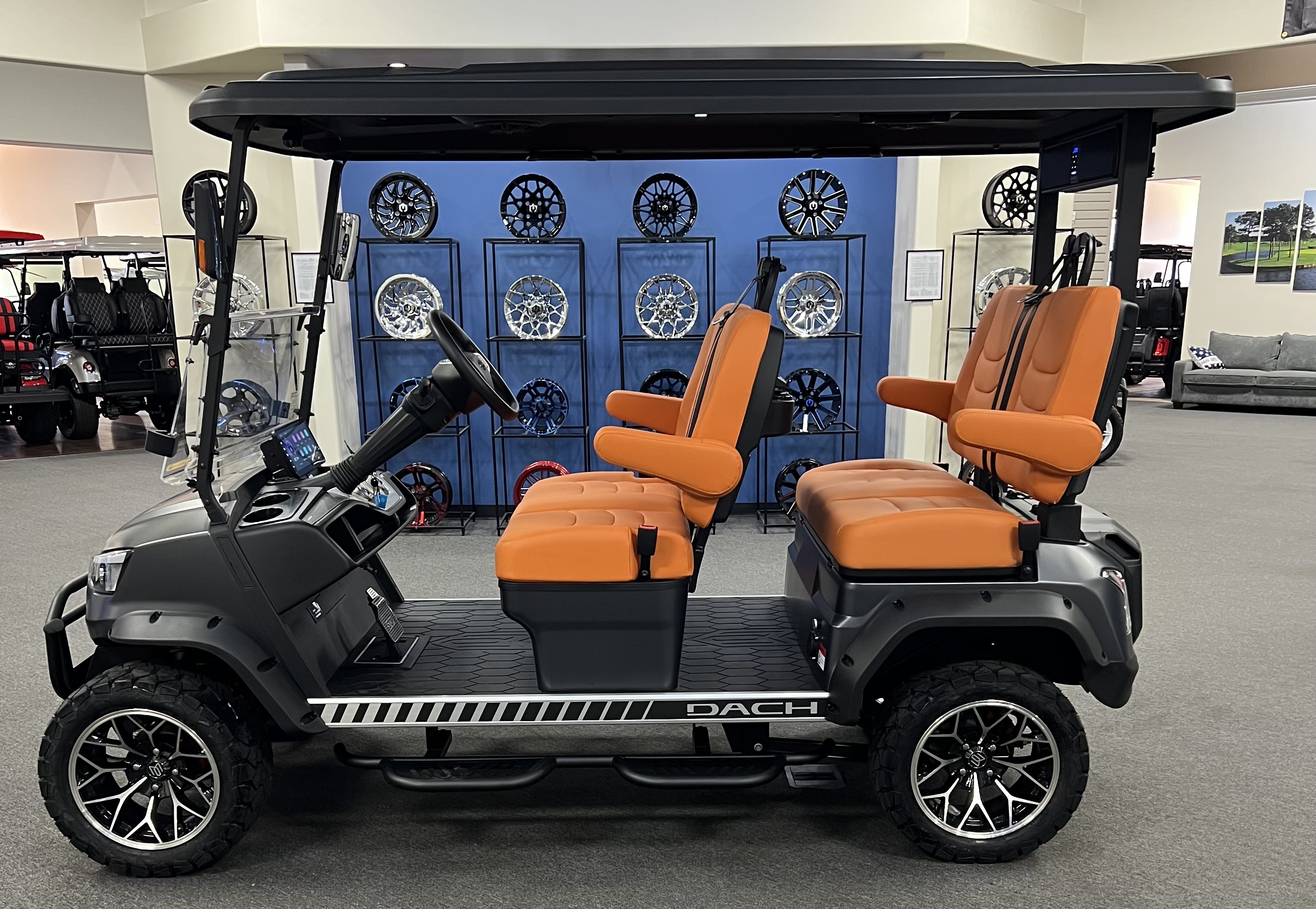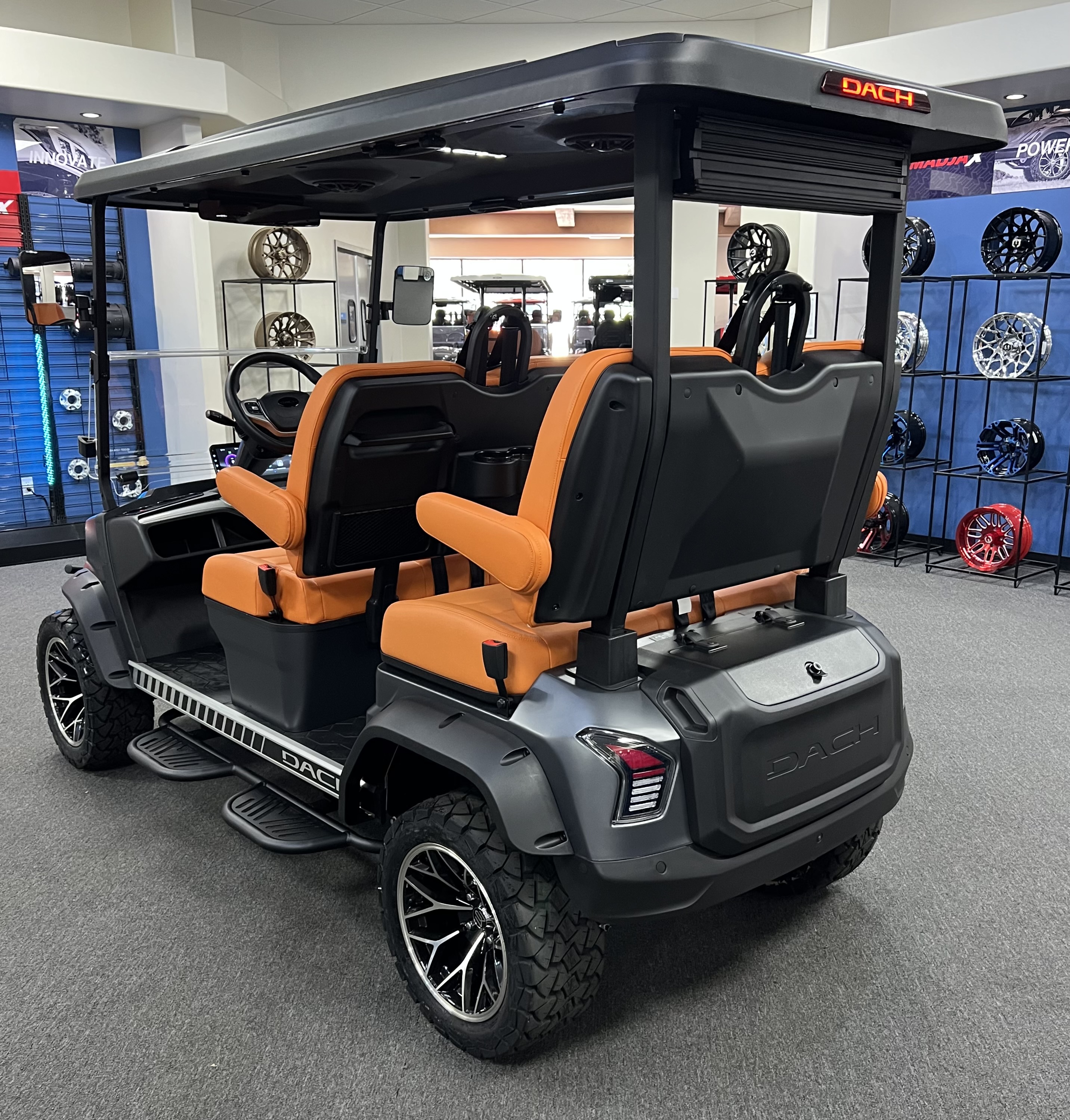 DACH 2025 Apollo 4: 4 Seat Forward Facing Golf Cart, 72V/105AH Lithium Battery, 12.3” Touch Screen, Backup camera,Apple/Andriod Carplay, Bluetooth soundbar, Roof Lining includes 2- 6 ½” speakers, Ambient lights, Roof logo light, High mounted brake lights, Cruise control ( YES Cruise control) Tilt steering, Wireless phone charging, Turn signal side mirrors, Front LED headlights, Running boards, Push Button Start, Folding armrests, Premier seats, Front push bar, Steering wheel radio controls, 4-wheel Disc brakes, and much more. We Also Have a Full Line of Accessory Upgrades Along with Financing Available.