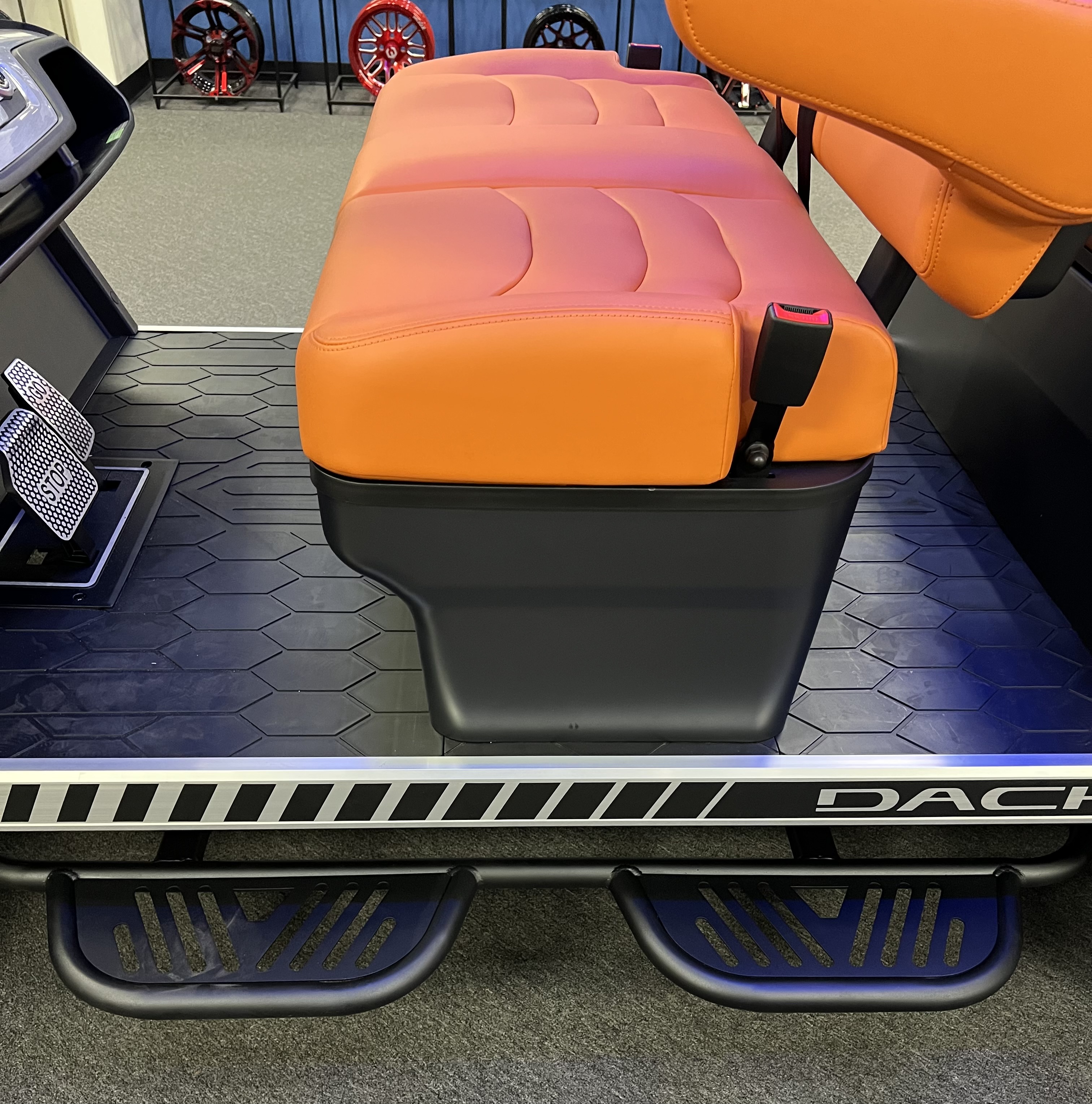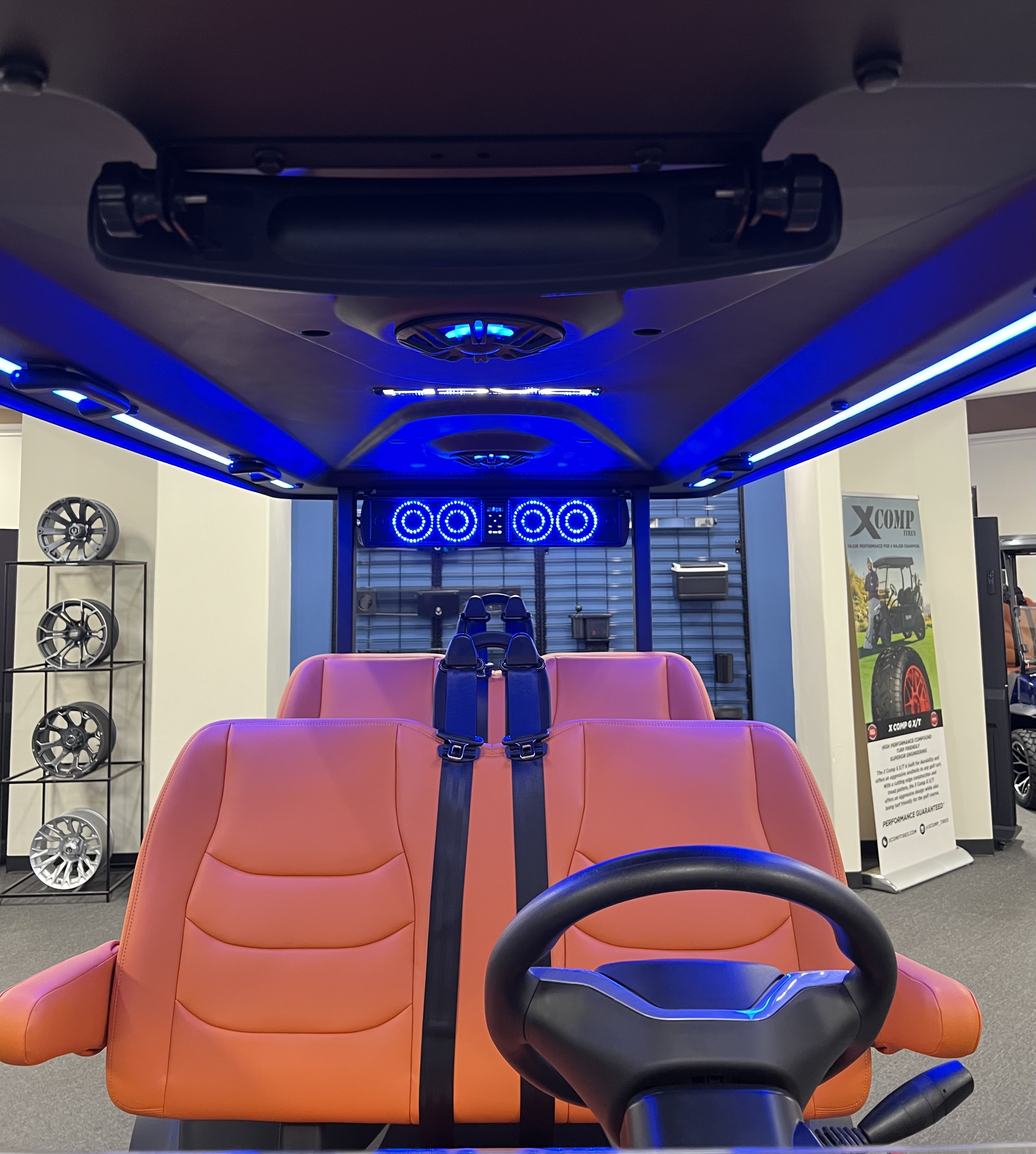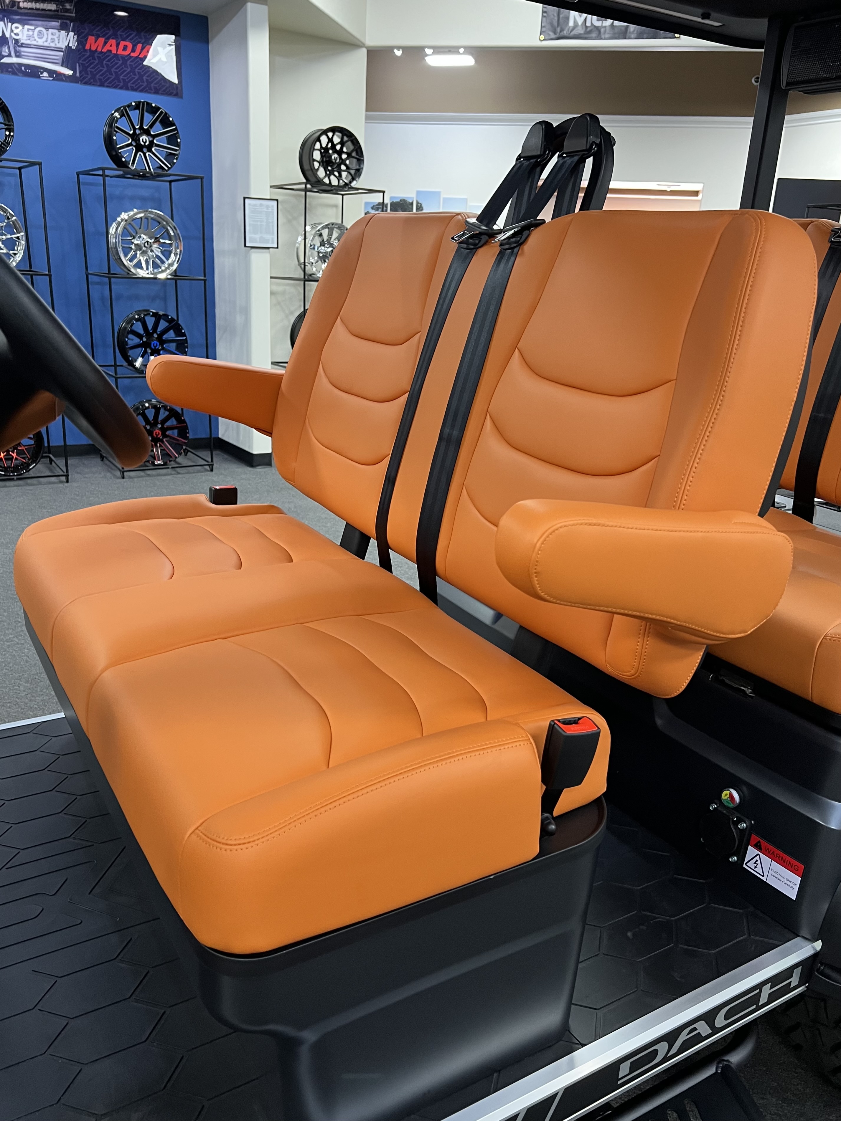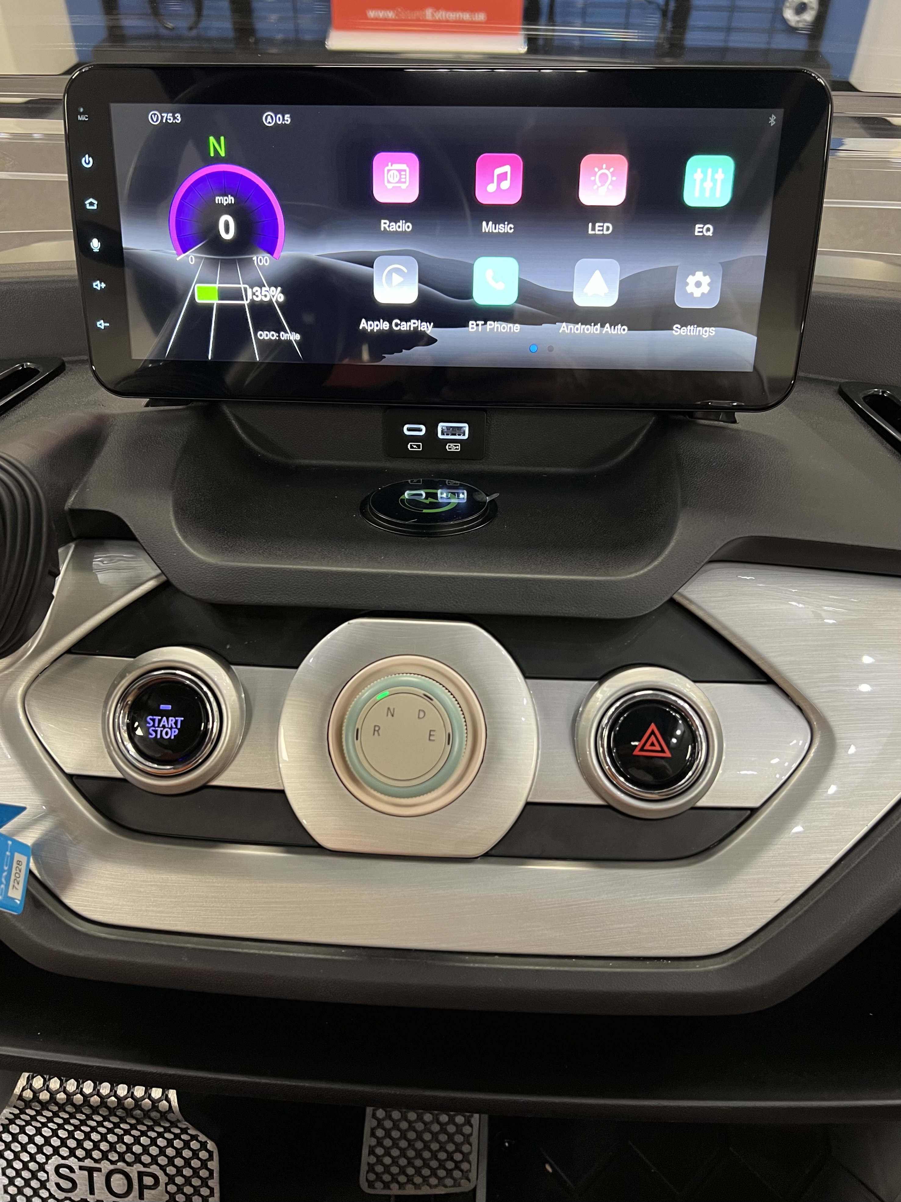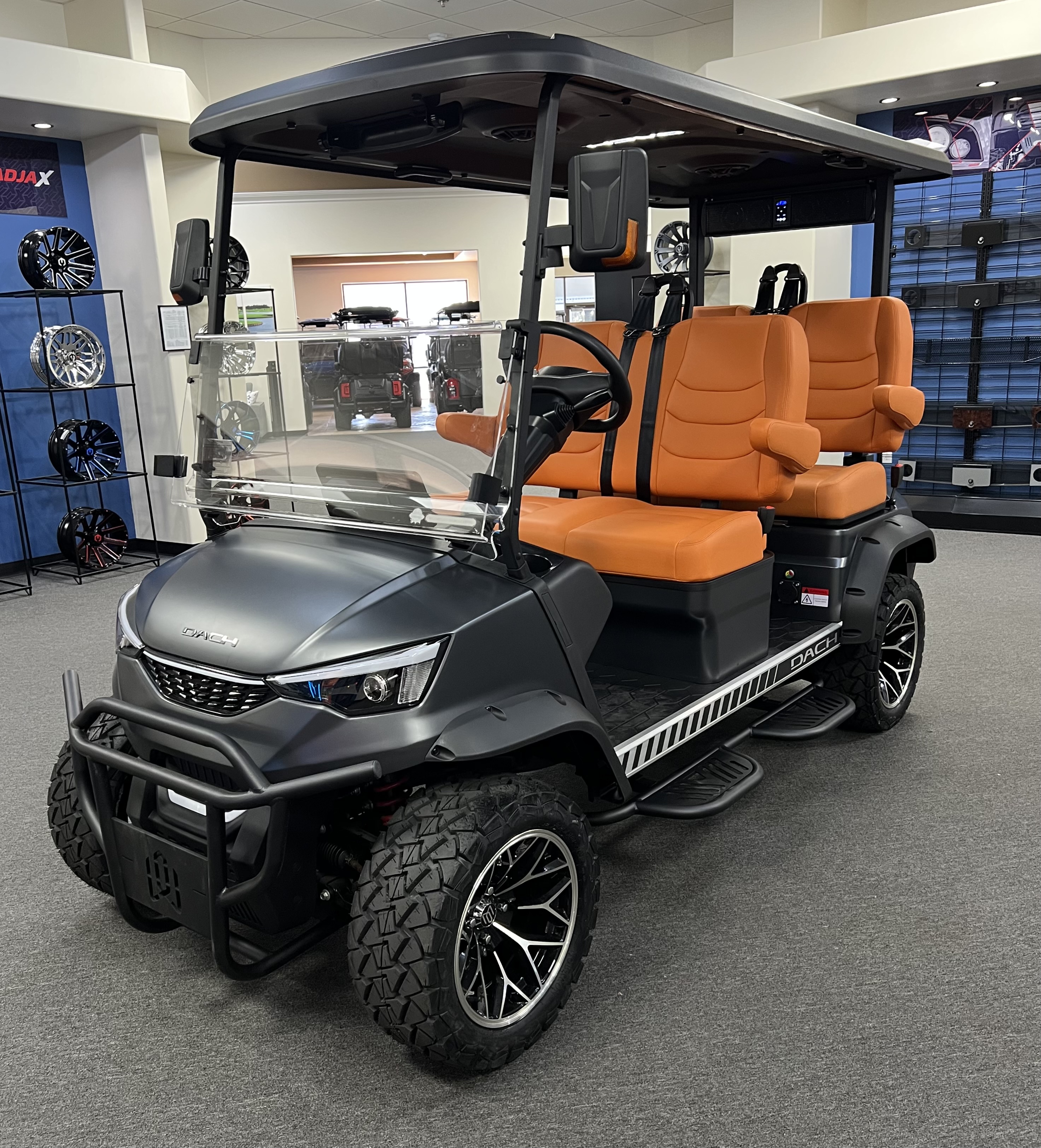 DACH 2025 Apollo 4: 4 Seat Forward Facing Golf Cart, 72V/105AH Lithium Battery, 12.3” Touch Screen, Backup camera,Apple/Andriod Carplay, Bluetooth soundbar, Roof Lining includes 2- 6 ½” speakers, Ambient lights, Roof logo light, High mounted brake lights, Cruise control ( YES Cruise control) Tilt steering, Wireless phone charging, Turn signal side mirrors, Front LED headlights, Running boards, Push Button Start, Folding armrests, Premier seats, Front push bar, Steering wheel radio controls, 4-wheel Disc brakes, and much more. We Also Have a Full Line of Accessory Upgrades Along with Financing Available.
