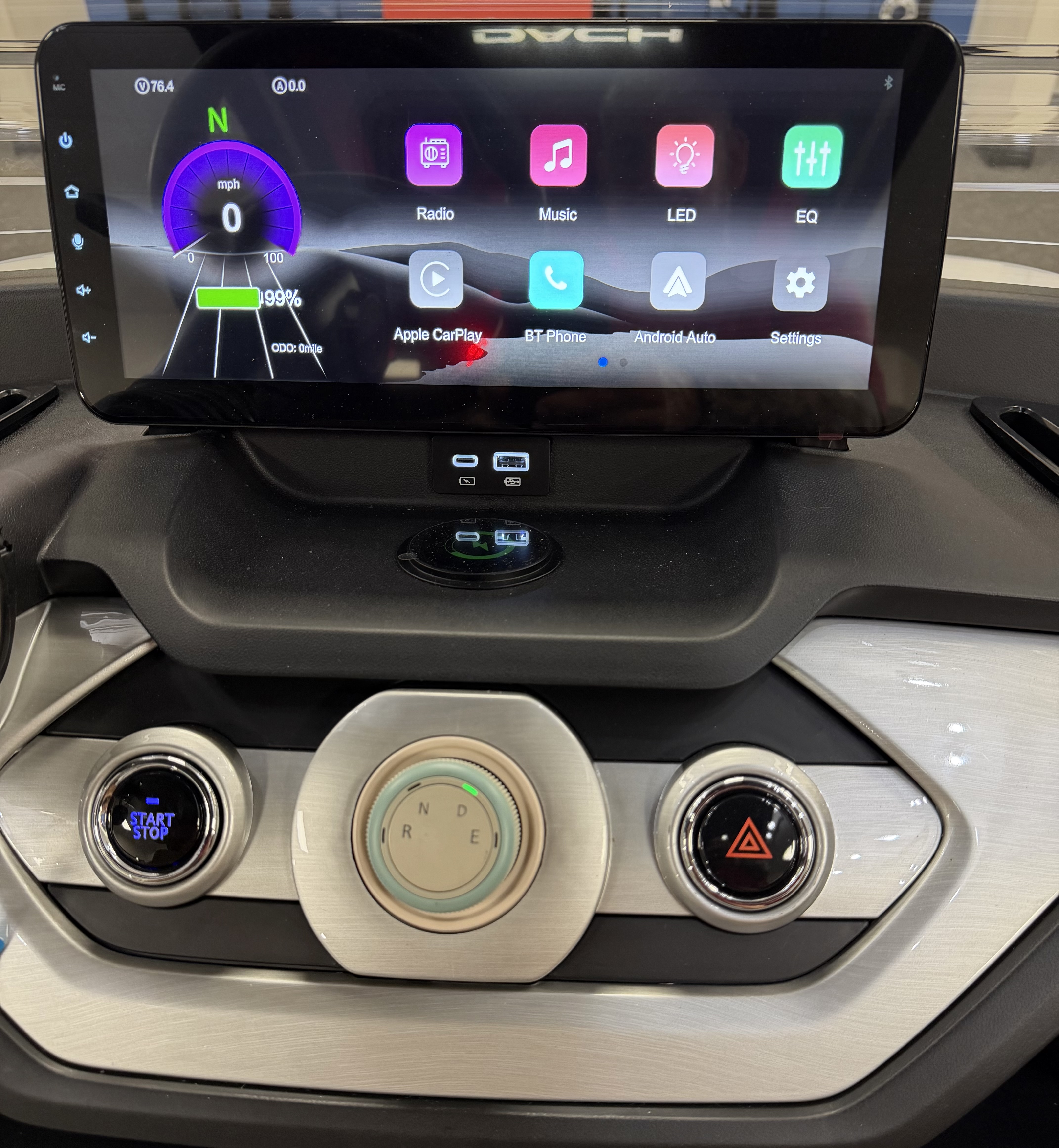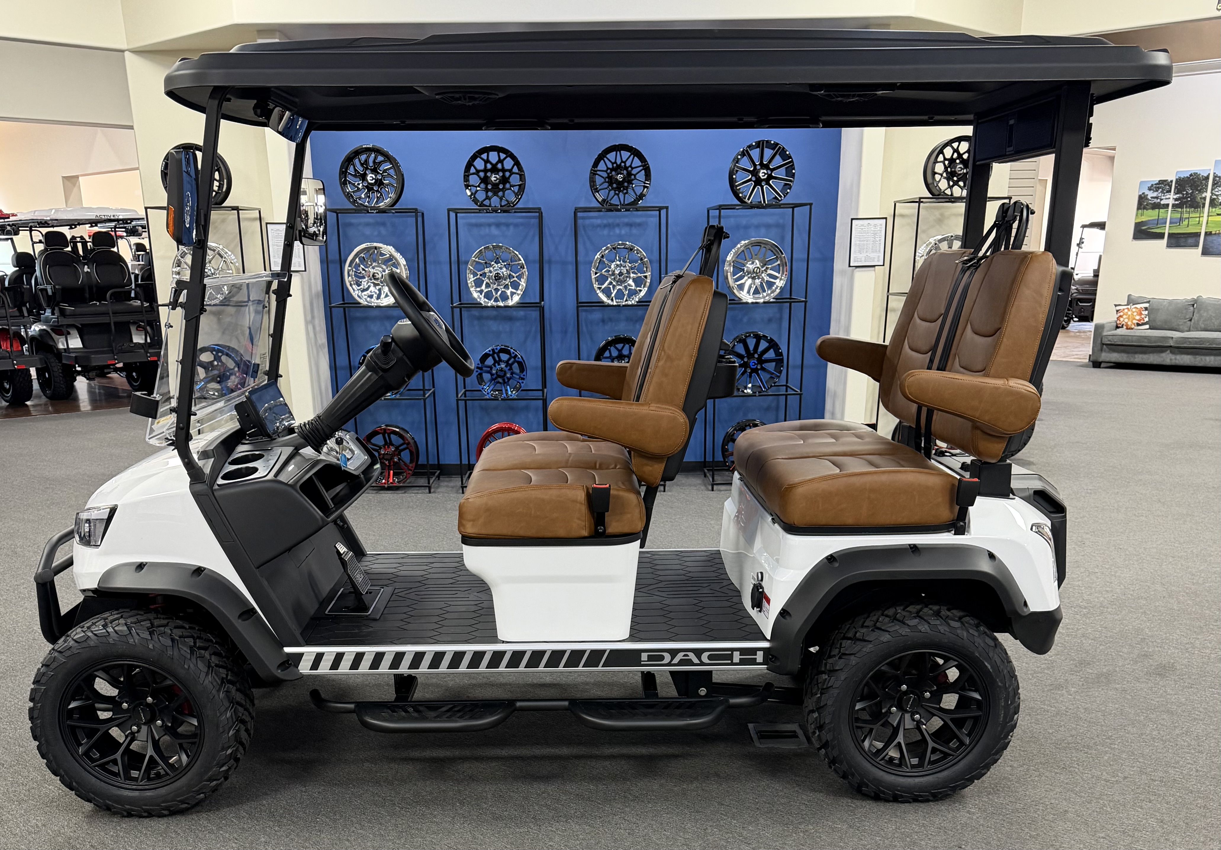 DACH 2025 Apollo 4: 4 Seat Forward Facing Golf Cart, 72V/105AH Lithium Battery, 12.3” Touch Screen, Backup camera,Apple/Andriod Carplay, Bluetooth soundbar, Roof Lining includes 2- 6 ½” speakers, Ambient lights, Roof logo light, High mounted brake lights, Cruise control ( YES Cruise control) Tilt steering, Wireless phone charging, Turn signal side mirrors, Front LED headlights, Running boards, Push Button Start, Folding armrests, Premier seats, Front push bar, Steering wheel radio controls, 4-wheel Disc brakes, and much more. We Also Have a Full Line of Accessory Upgrades Along with Financing Available.