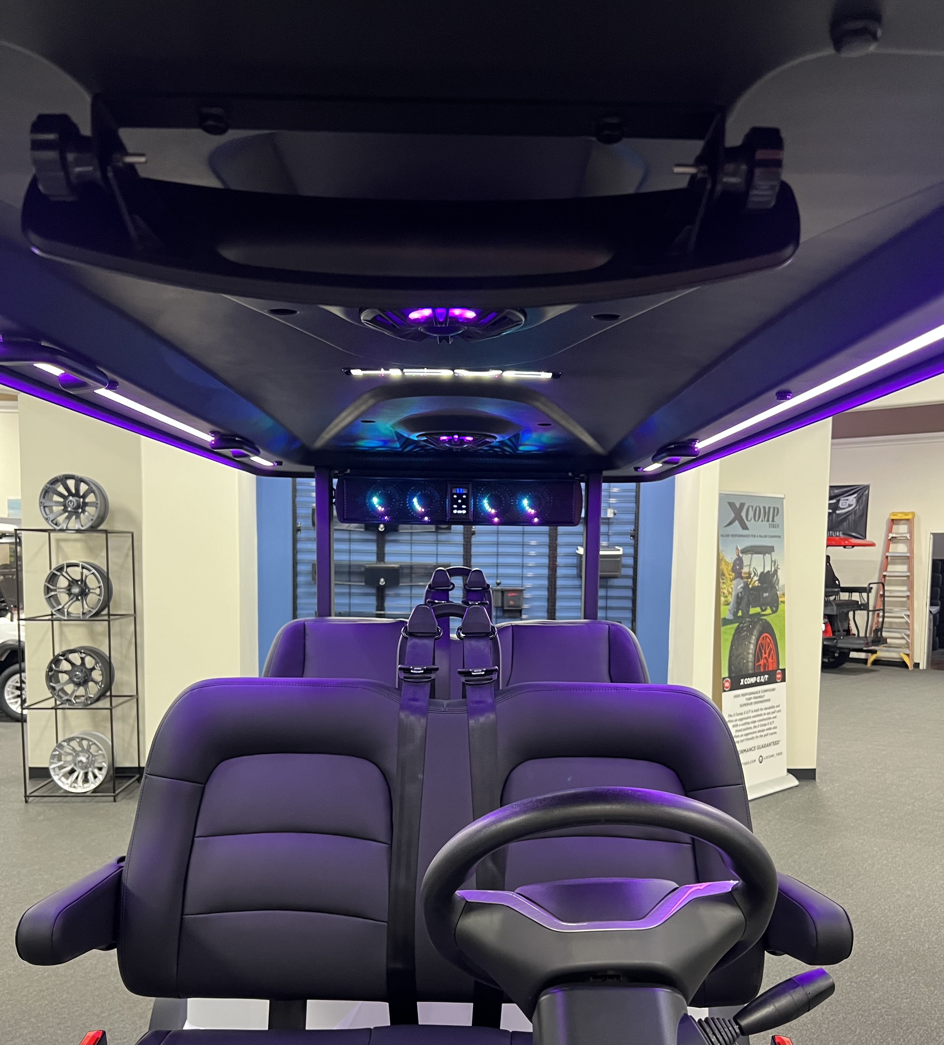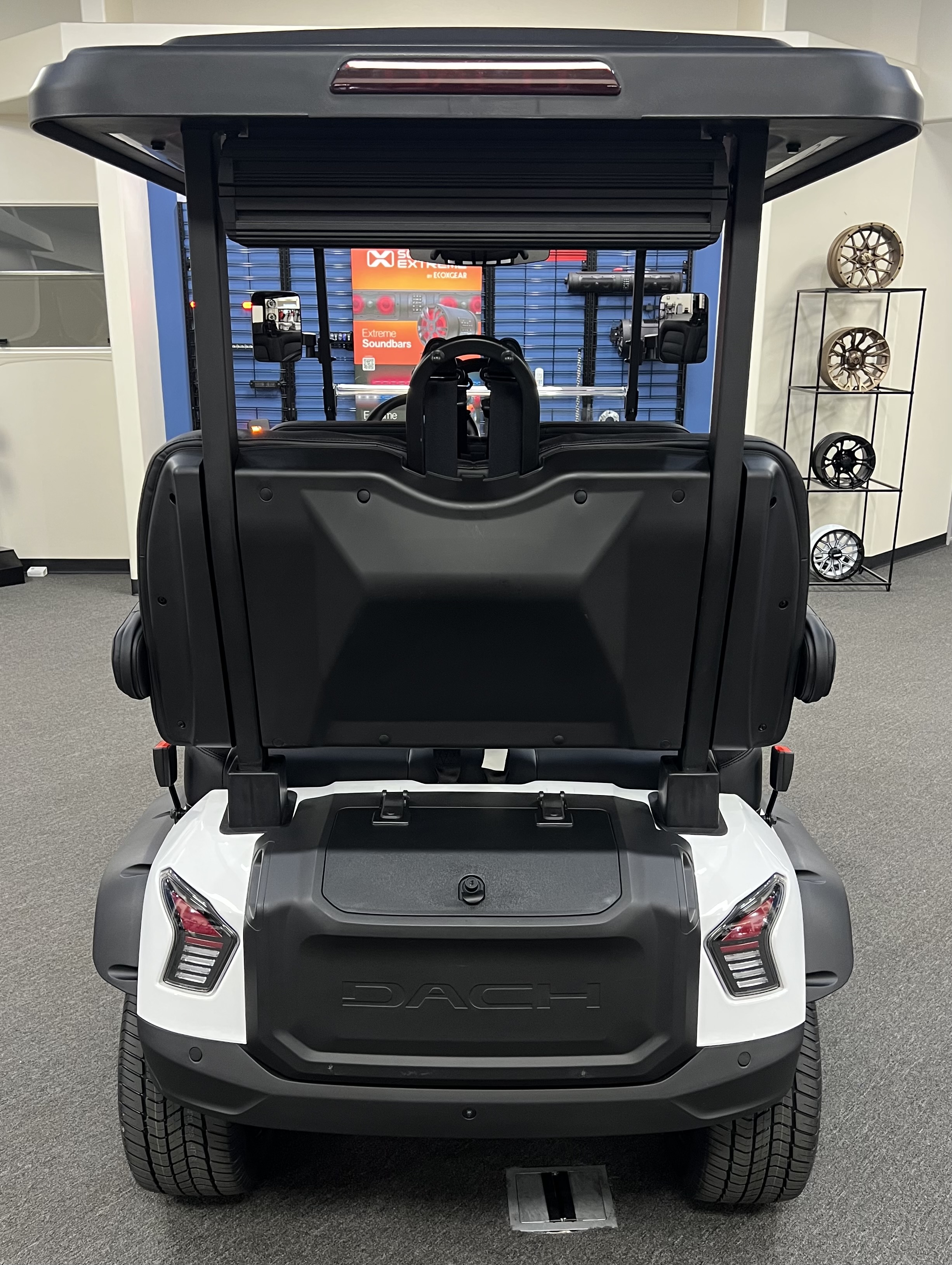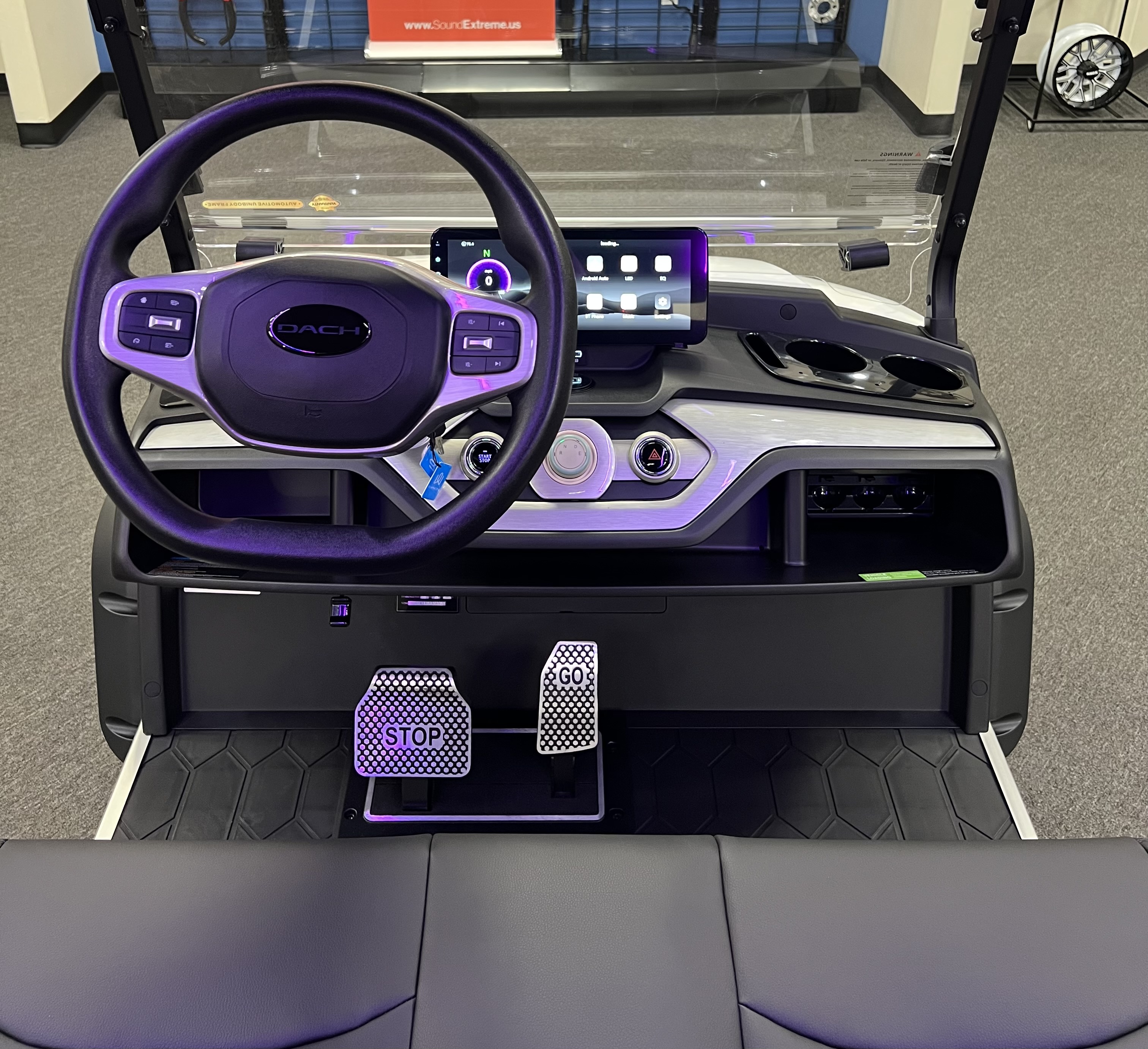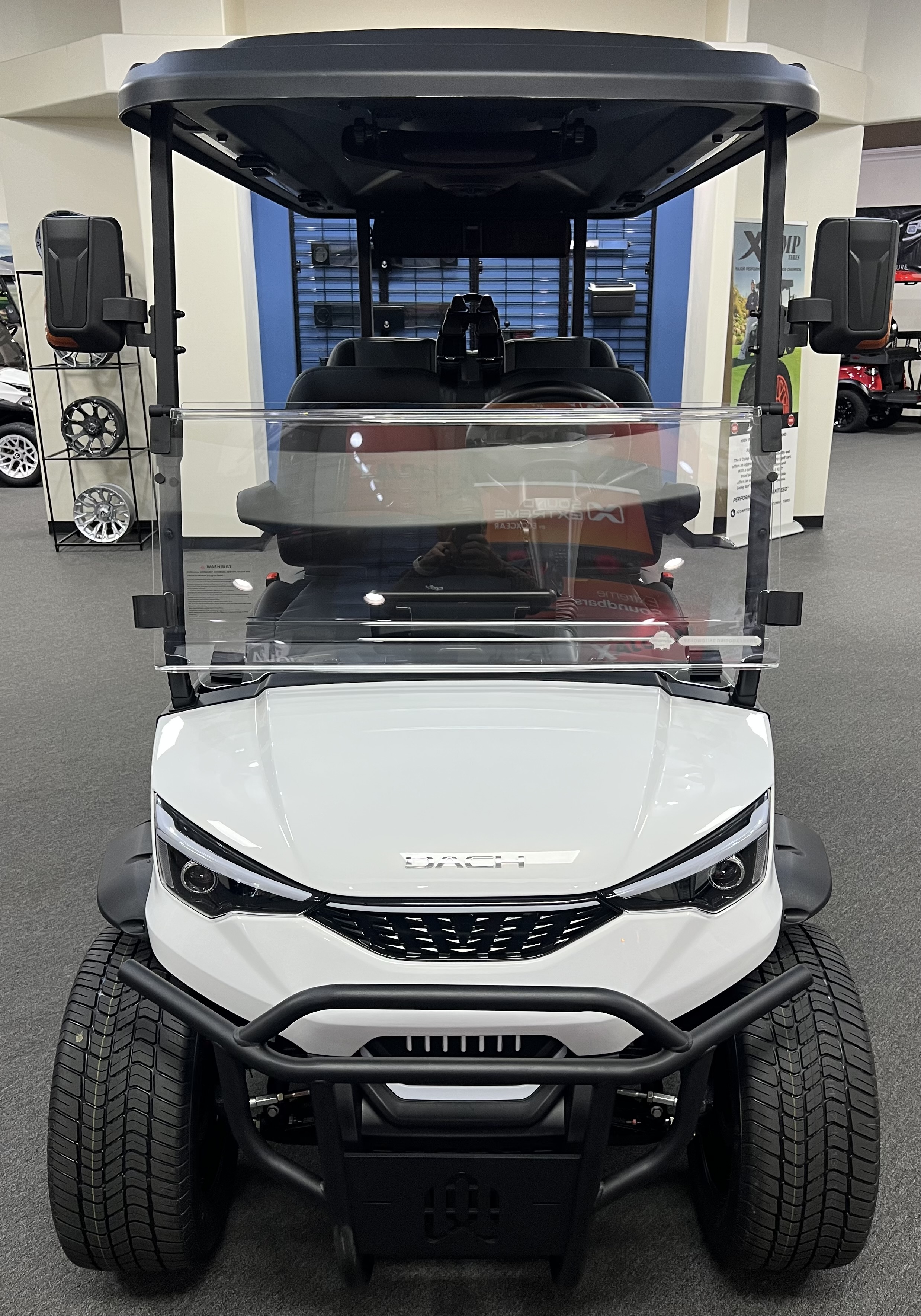 DACH 2025 Apollo Rider 4: 4 Seat Forward Facing Golf Cart, 72V/105AH Lithium Battery, 12.3” Touch Screen, Backup camera,Apple/Andriod Carplay, Bluetooth soundbar, Roof Lining includes 2- 6 ½” speakers, Ambient lights, Roof logo light, High mounted brake lights, Cruise control ( YES Cruise control) Tilt steering, Wireless phone charging, Turn signal side mirrors, Front LED headlights, Running boards, Push Button Start, Folding armrests, Premier seats, Front push bar, Steering wheel radio controls, 4-wheel Disc brakes, and much more. , We Also Have a Full Line of Accessory Upgrades Along with Financing Available.