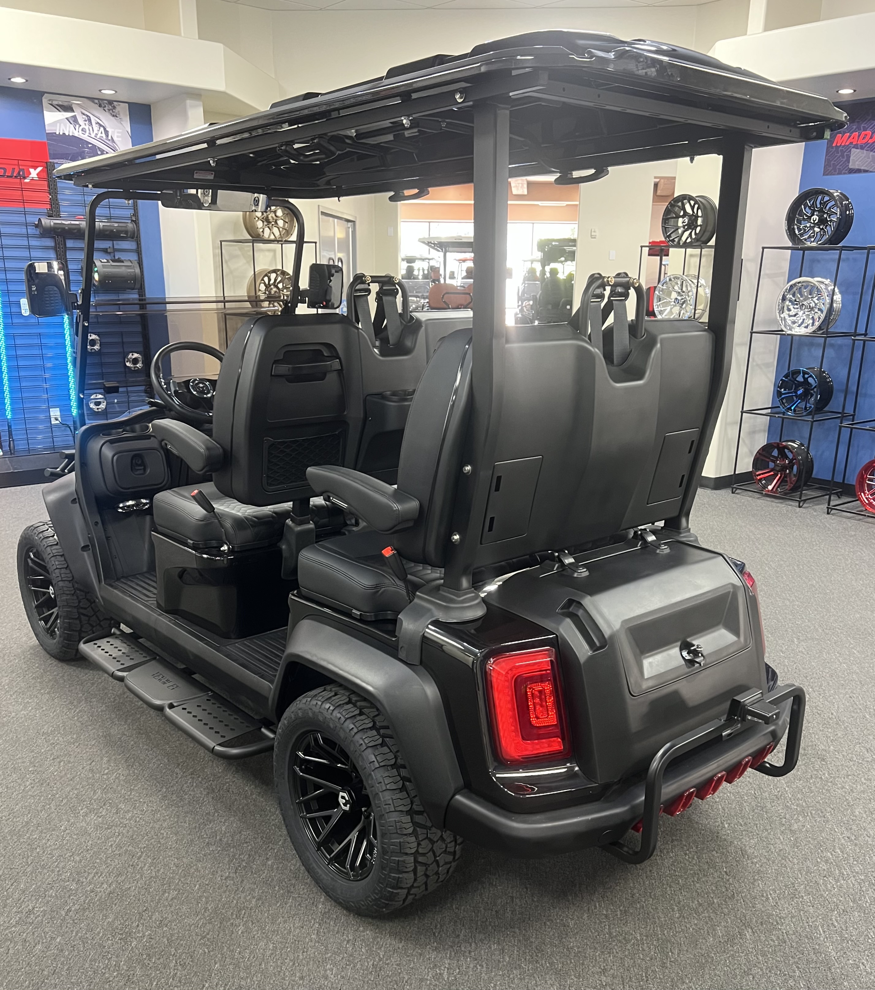 2025 4 Seater Stealth Lifted, Eco 51.2V /105Ah ECO Lithium Battery, 10.1” Digital Display Screen, Backup Camera, Carbon Fiber Style Dash, Locking Compartments, , USB Charger, Horn, Digital Gauges, Lit License Plate Bracket, Built-in ECOXGear Marine Grade Sound System, Removable & Lockable Trunk in Rear, Storage Tray Beneath Rear Seats, Wireless Cell Phone Charging Pad, We Also Have a Full Line of Accessory Upgrades Along with Financing Available.