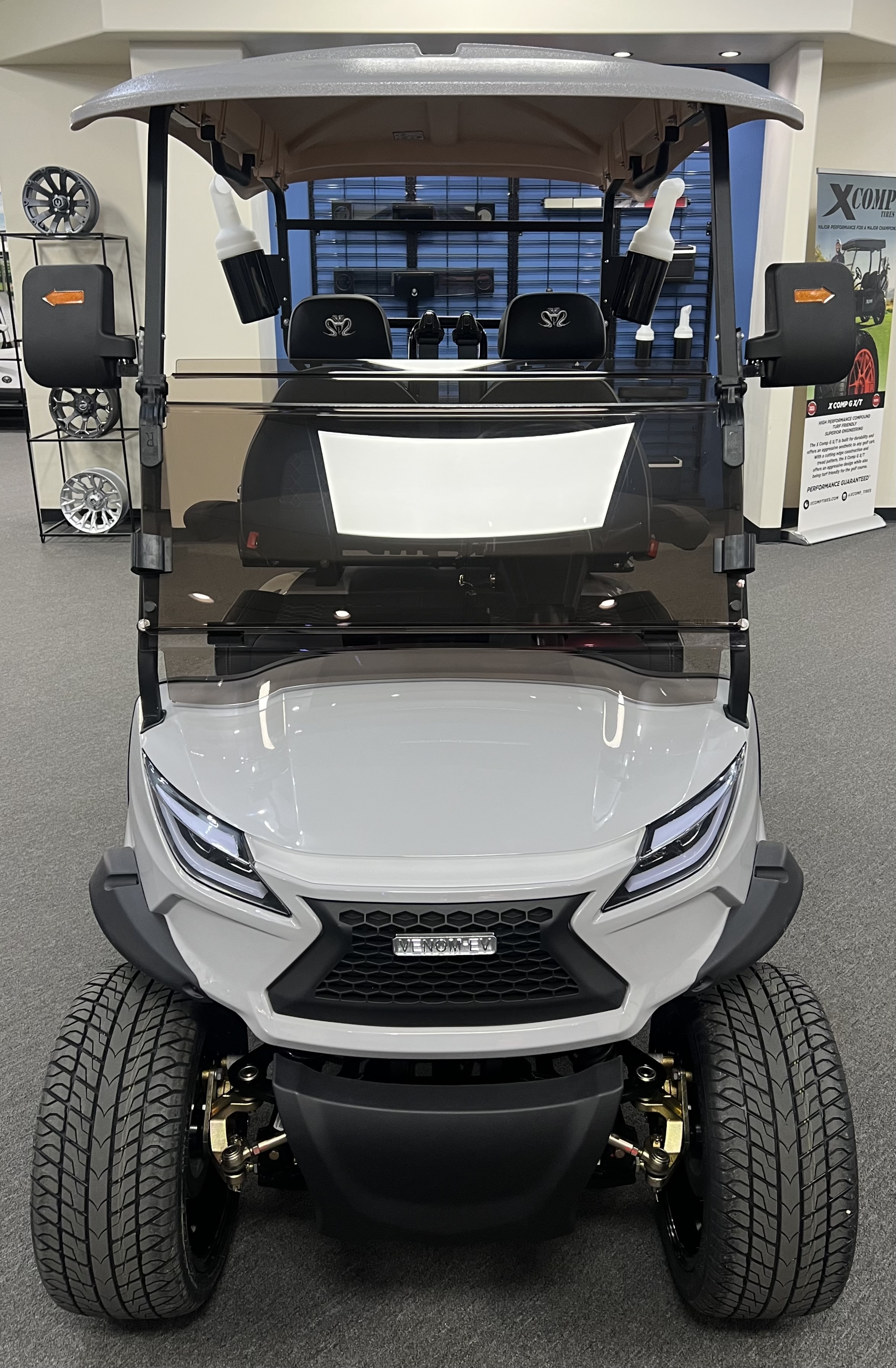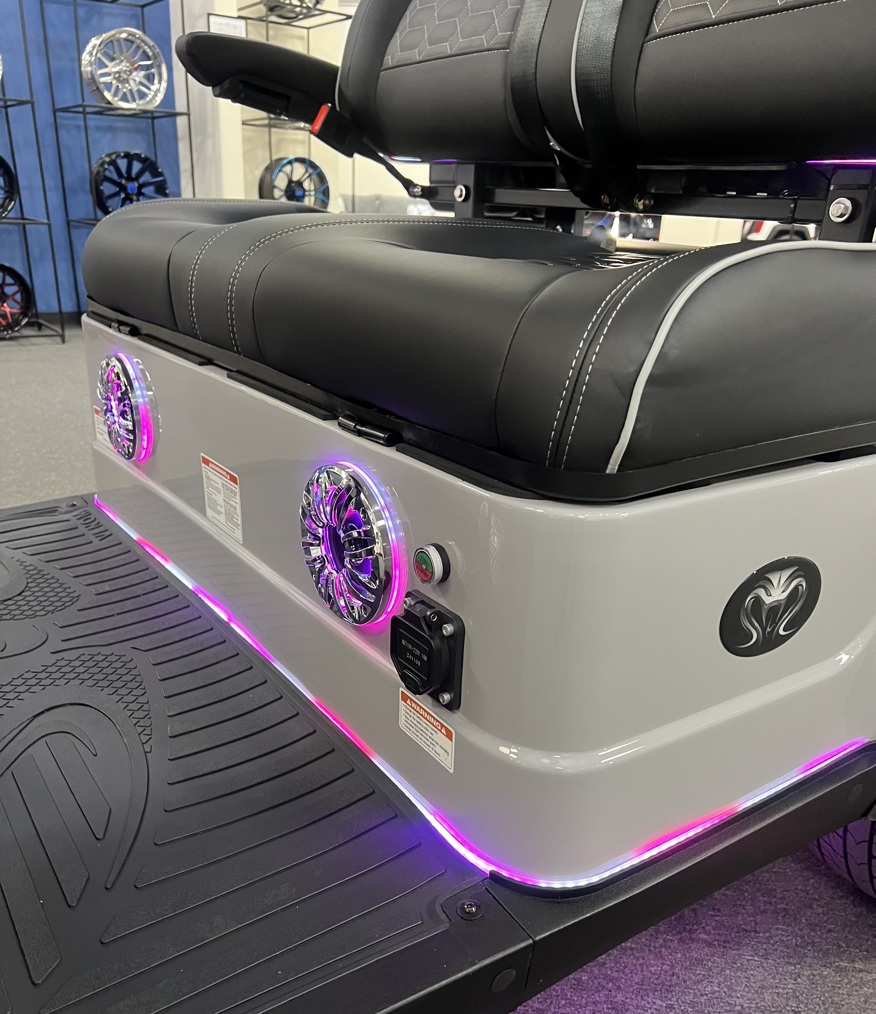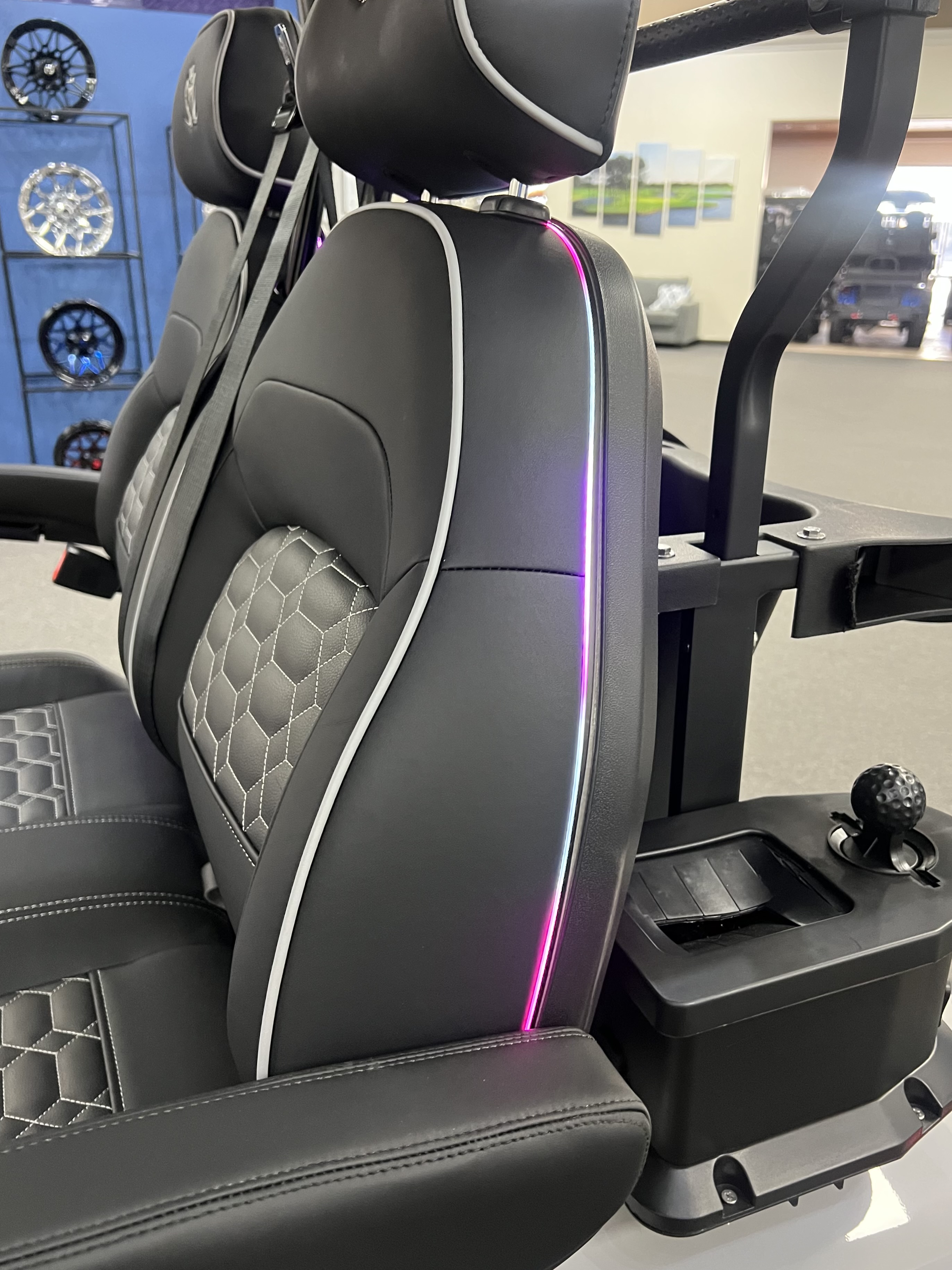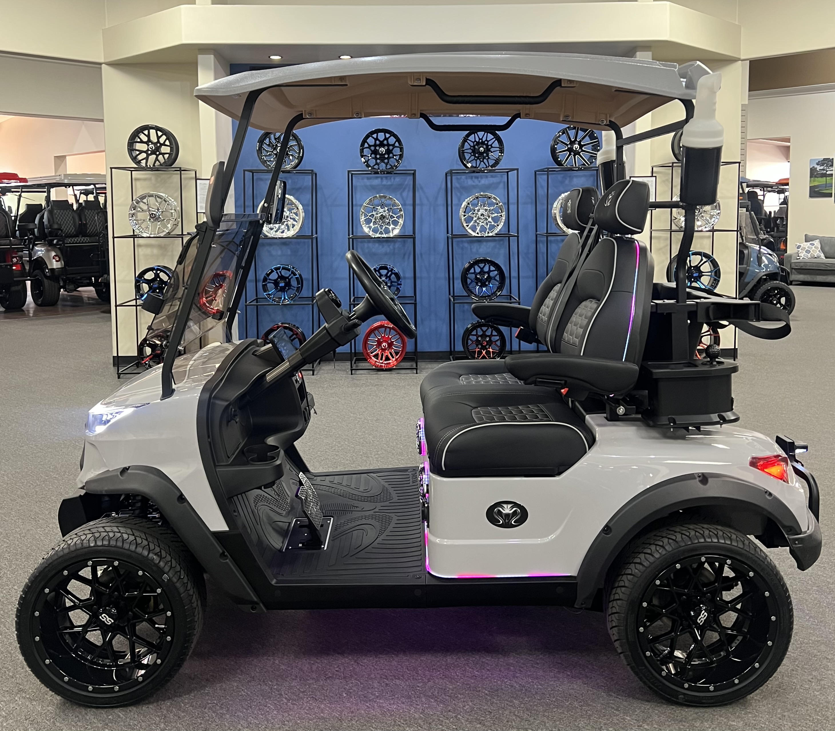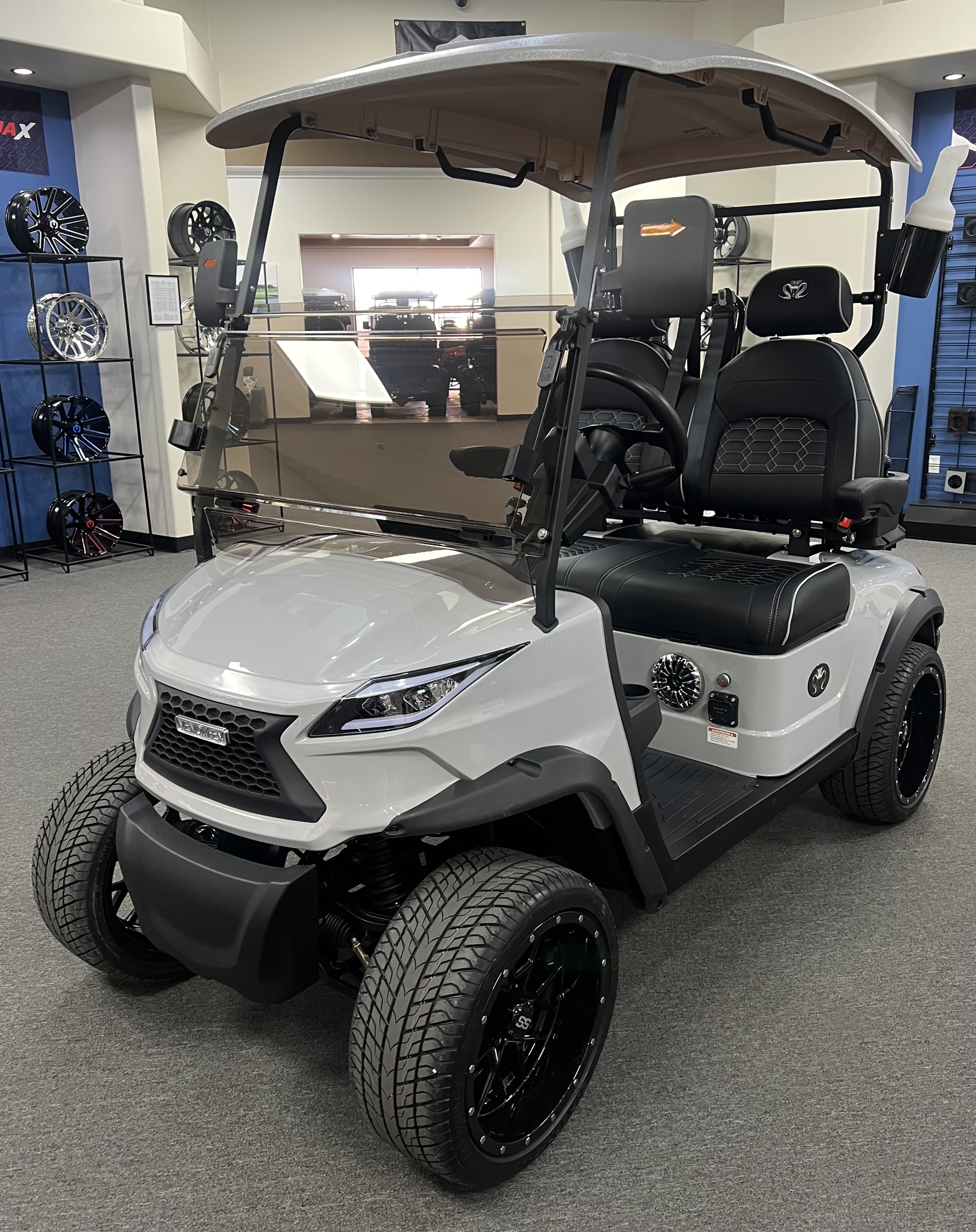 2025 Venom Strike 2 Seater Golf Cart, Eco Battery Lithium, 10” Touchscreen Display with Automatic Backup Camera, Apple Car Play, Bluetooth Speaker System, Premium Captain’s Chairs, LED Trim Lights with Adjustable Colors, Patterns, and Speeds, Voice Activated Commands, LED Headlights, LED Turn Signal Mirrors, Adjustable Arm Rests, Push Button Start, Golf Bag Holder, Ice Chest, Sand Bottles, Ball Washer, Rear Basket and Much More. We Also Have a Full Line of Accessory Upgrades Along with Financing Available.