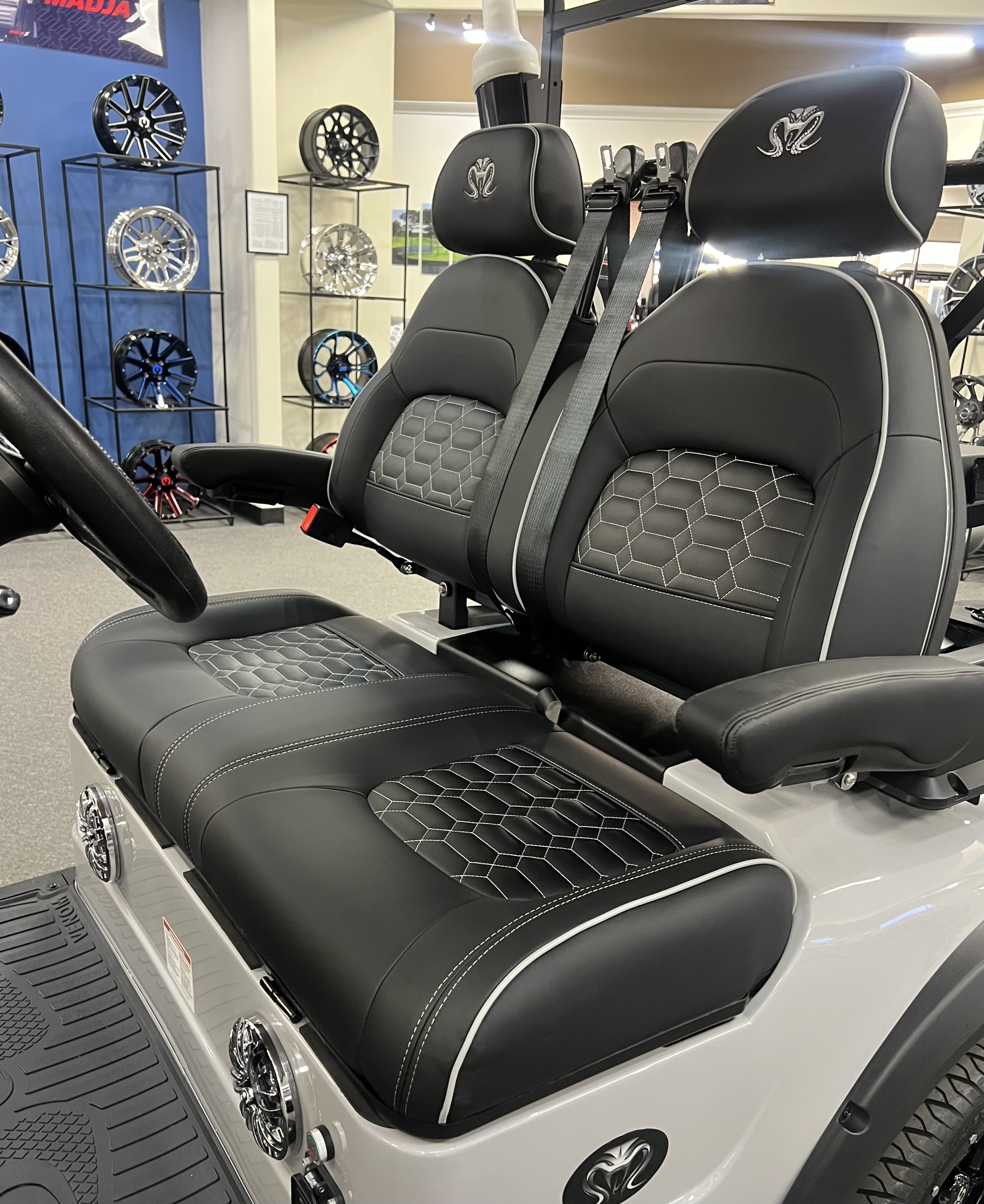 2025 Venom Strike 2 Seater Golf Cart, Eco Battery Lithium, 10” Touchscreen Display with Automatic Backup Camera, Apple Car Play, Bluetooth Speaker System, Premium Captain’s Chairs, LED Trim Lights with Adjustable Colors, Patterns, and Speeds, Voice Activated Commands, LED Headlights, LED Turn Signal Mirrors, Adjustable Arm Rests, Push Button Start, Golf Bag Holder, Ice Chest, Sand Bottles, Ball Washer, Rear Basket and Much More. We Also Have a Full Line of Accessory Upgrades Along with Financing Available.