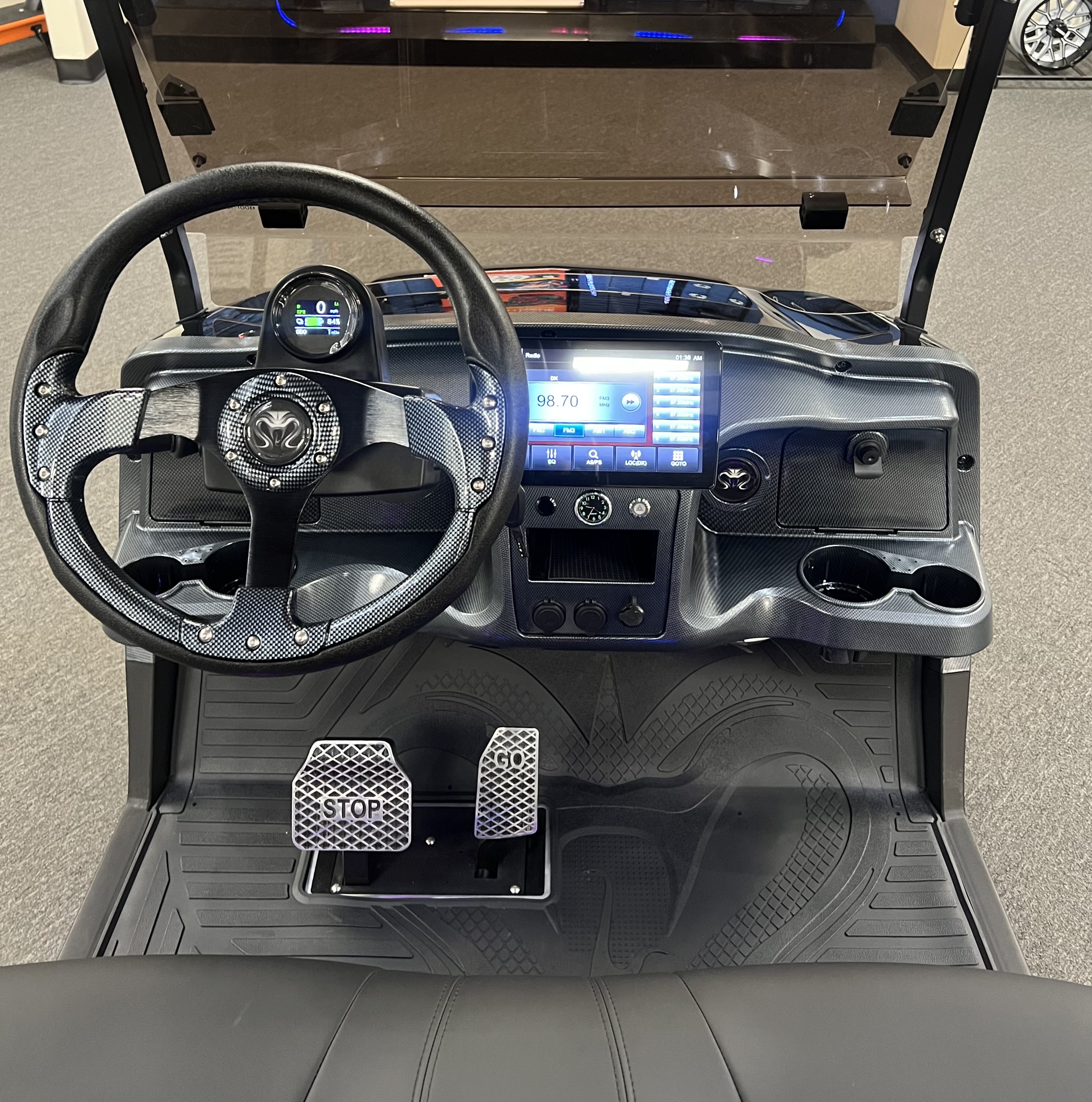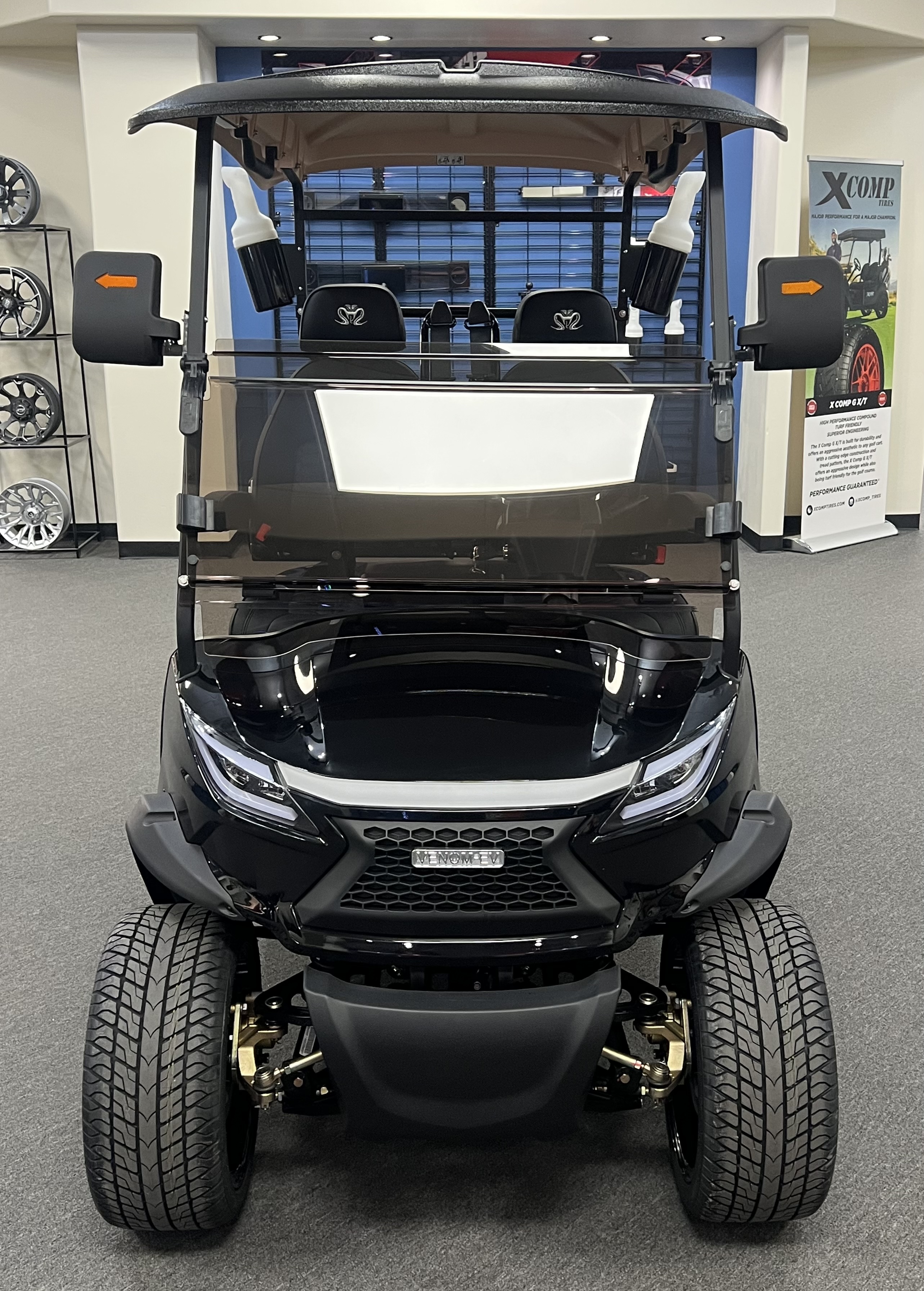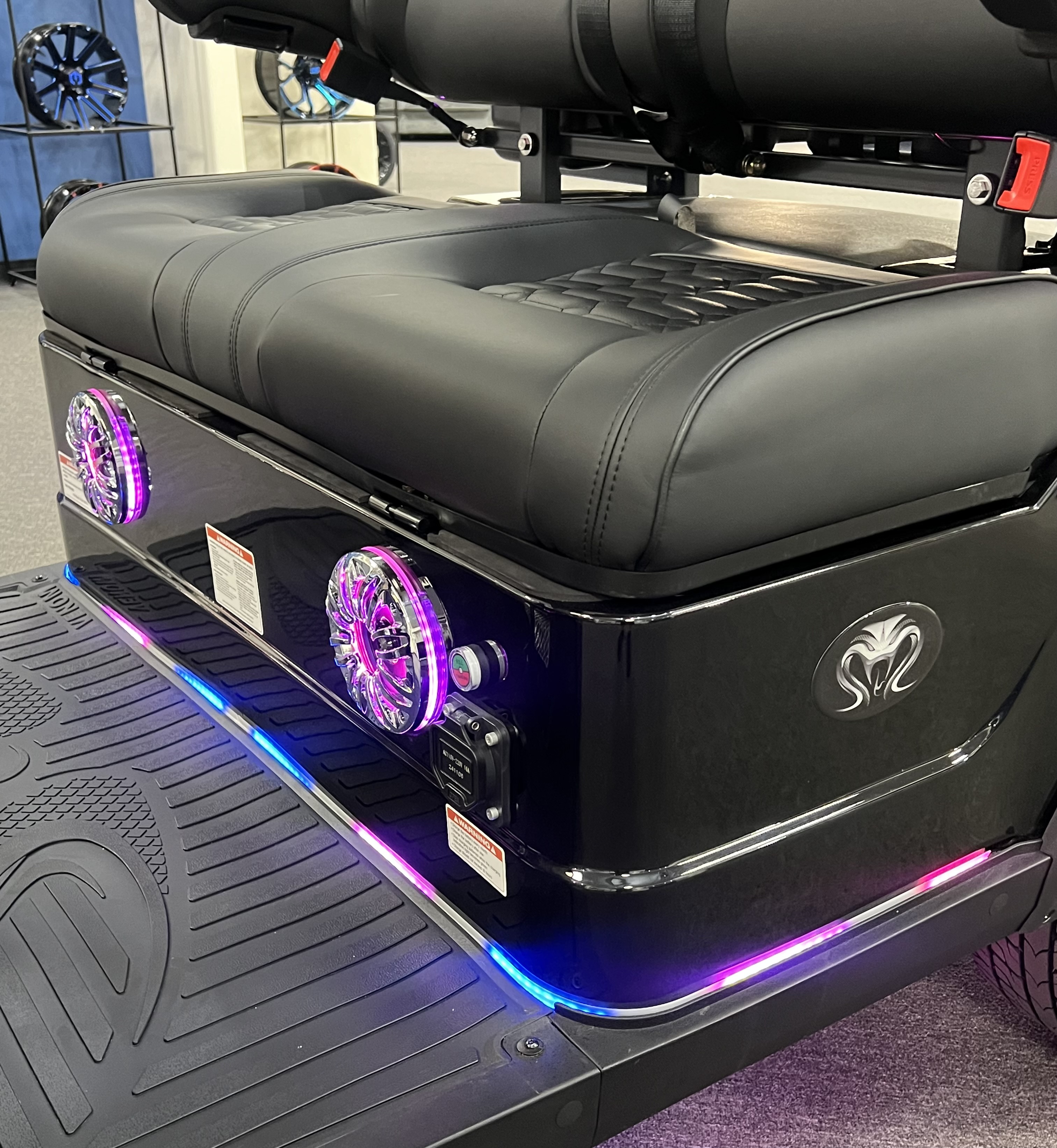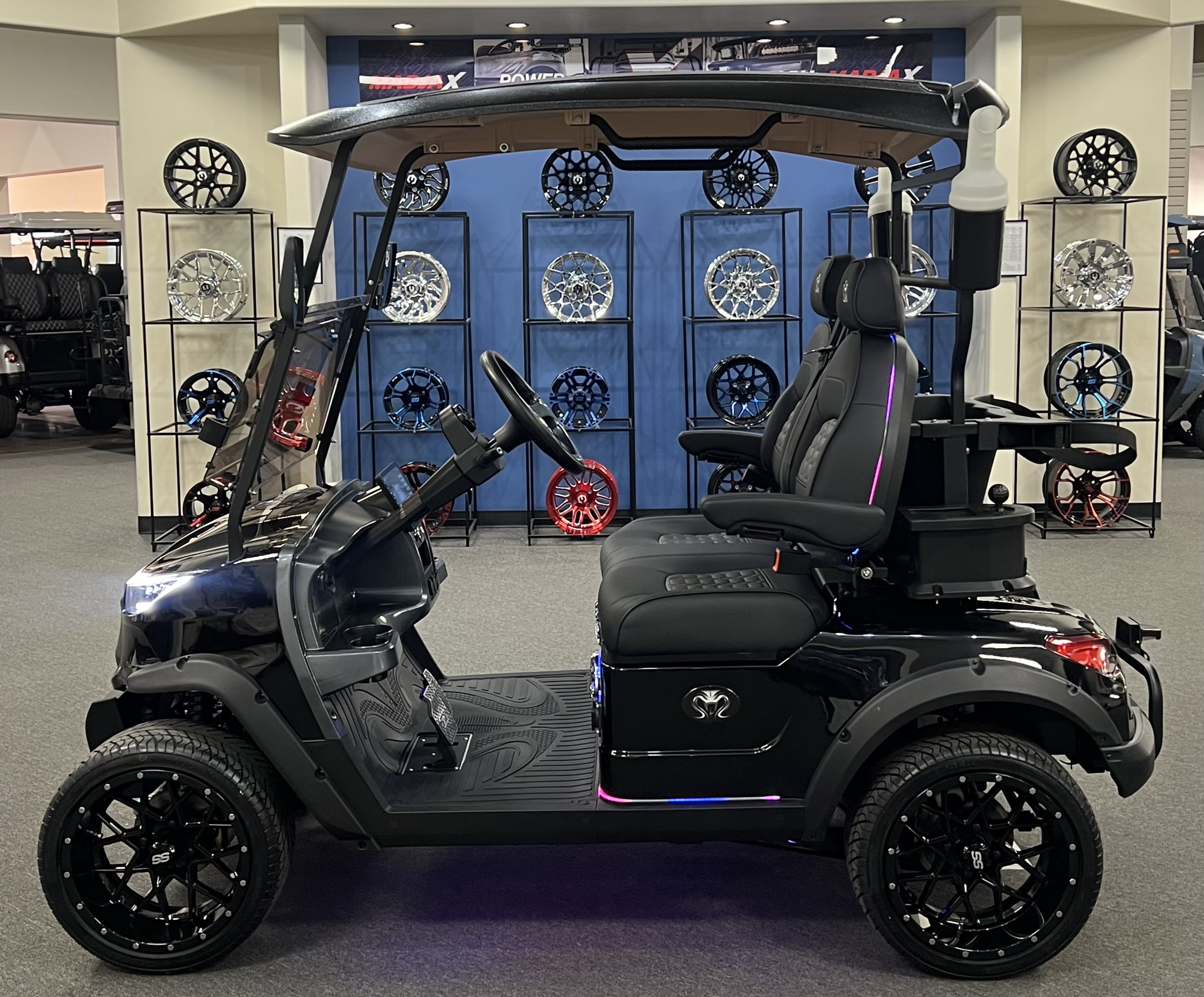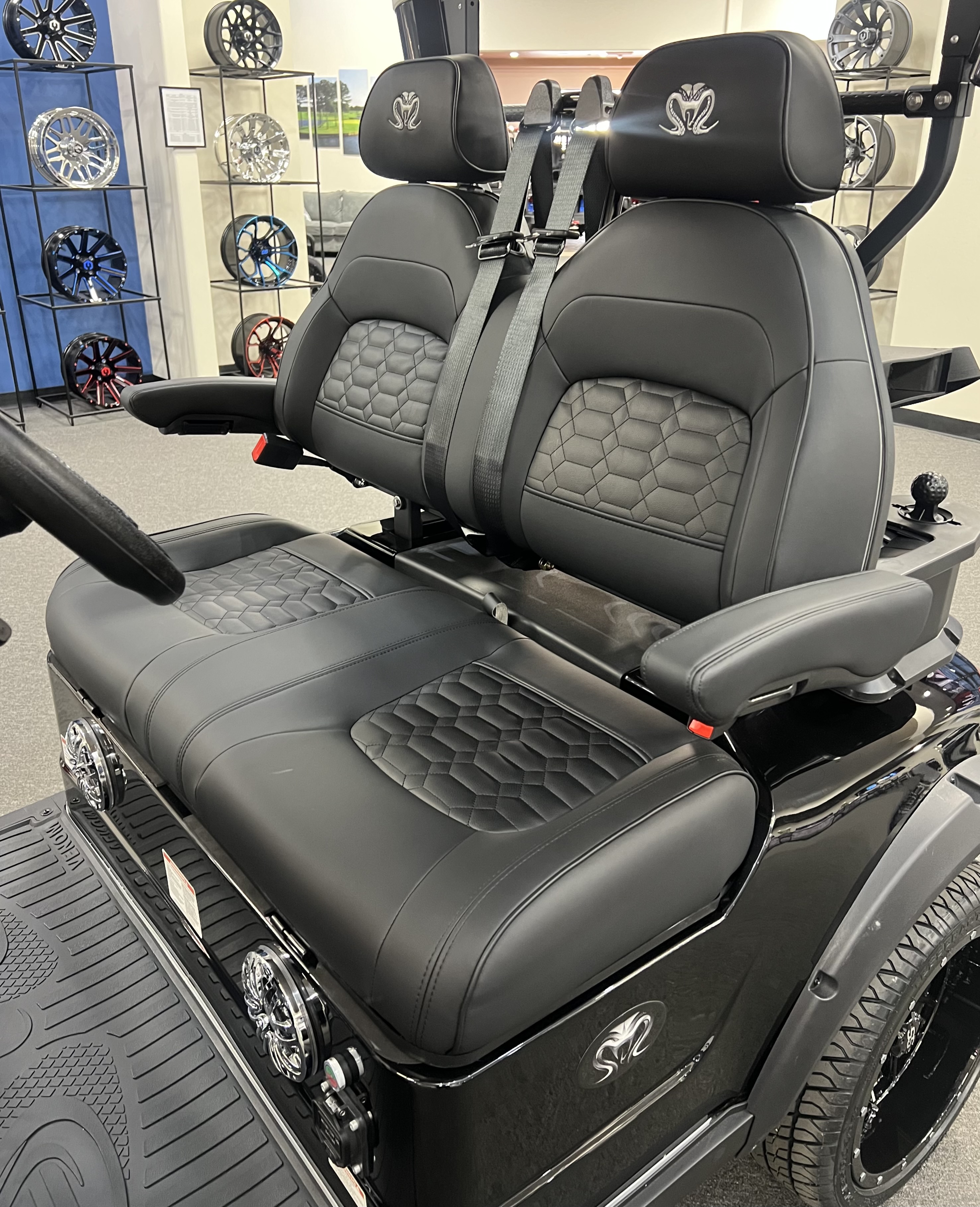 2025 Venom Strike 2 Seater Golf Cart, Eco Battery Lithium, 10” Touchscreen Display with Automatic Backup Camera, Apple Car Play, Bluetooth Speaker System, Premium Captain’s Chairs, LED Trim Lights with Adjustable Colors, Patterns, and Speeds, Voice Activated Commands, LED Headlights, LED Turn Signal Mirrors, Adjustable Arm Rests, Push Button Start, Golf Bag Holder, Ice Chest, Sand Bottles, Ball Washer, Rear Basket and Much More. We Also Have a Full Line of Accessory Upgrades Along with Financing Available.