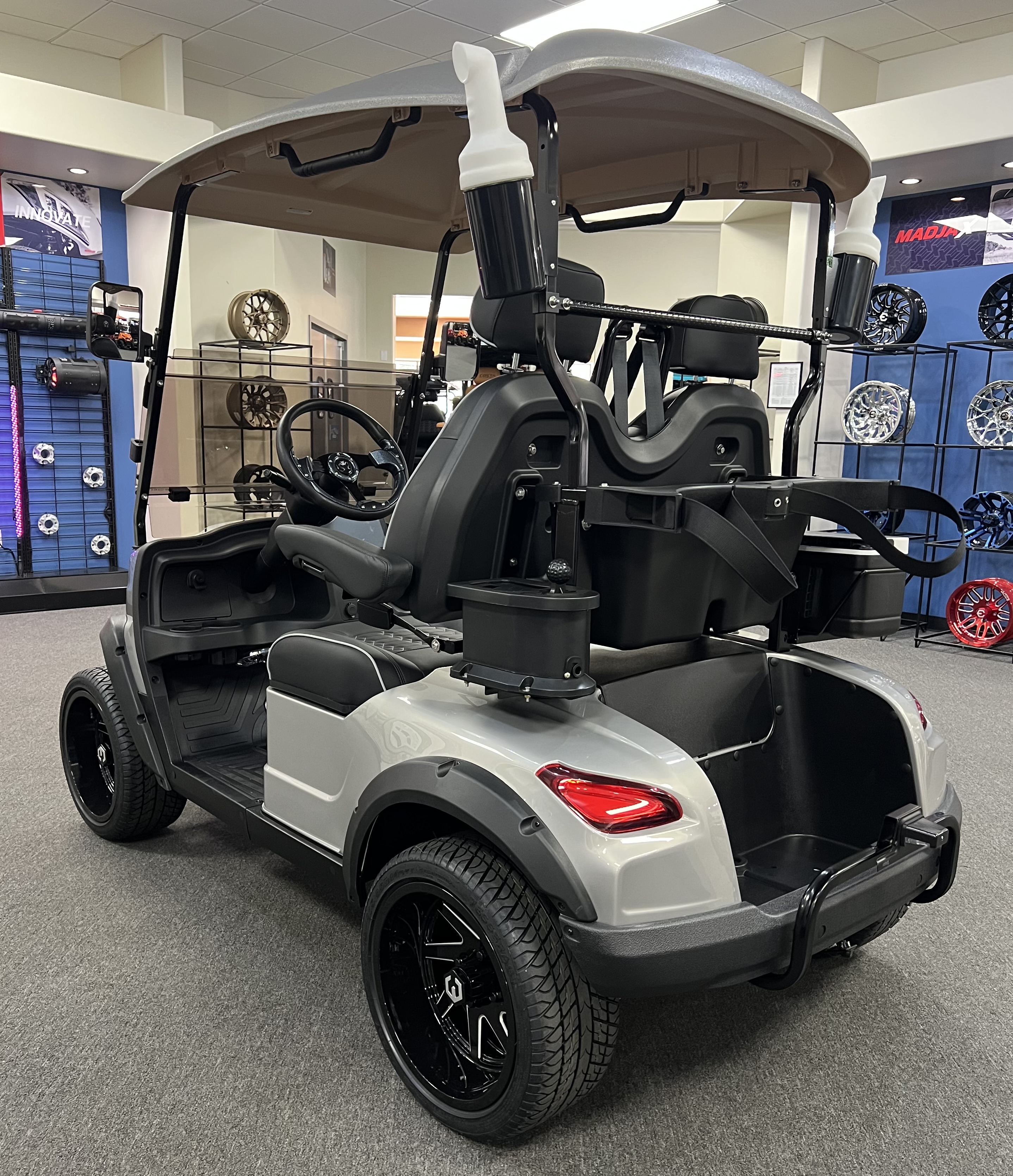 2025 Venom Strike 2 Seater Golf Cart, Eco Battery Lithium, 10” Touchscreen Display with Automatic Backup Camera, Apple Car Play, Bluetooth Speaker System, Premium Captain’s Chairs, LED Trim Lights with Adjustable Colors, Patterns, and Speeds, Voice Activated Commands, LED Headlights, LED Turn Signal Mirrors, Adjustable Arm Rests, Push Button Start, Golf Bag Holder, Ice Chest, Sand Bottles, Ball Washer, Rear Basket and Much More. We Also Have a Full Line of Accessory Upgrades Along with Financing Available.
