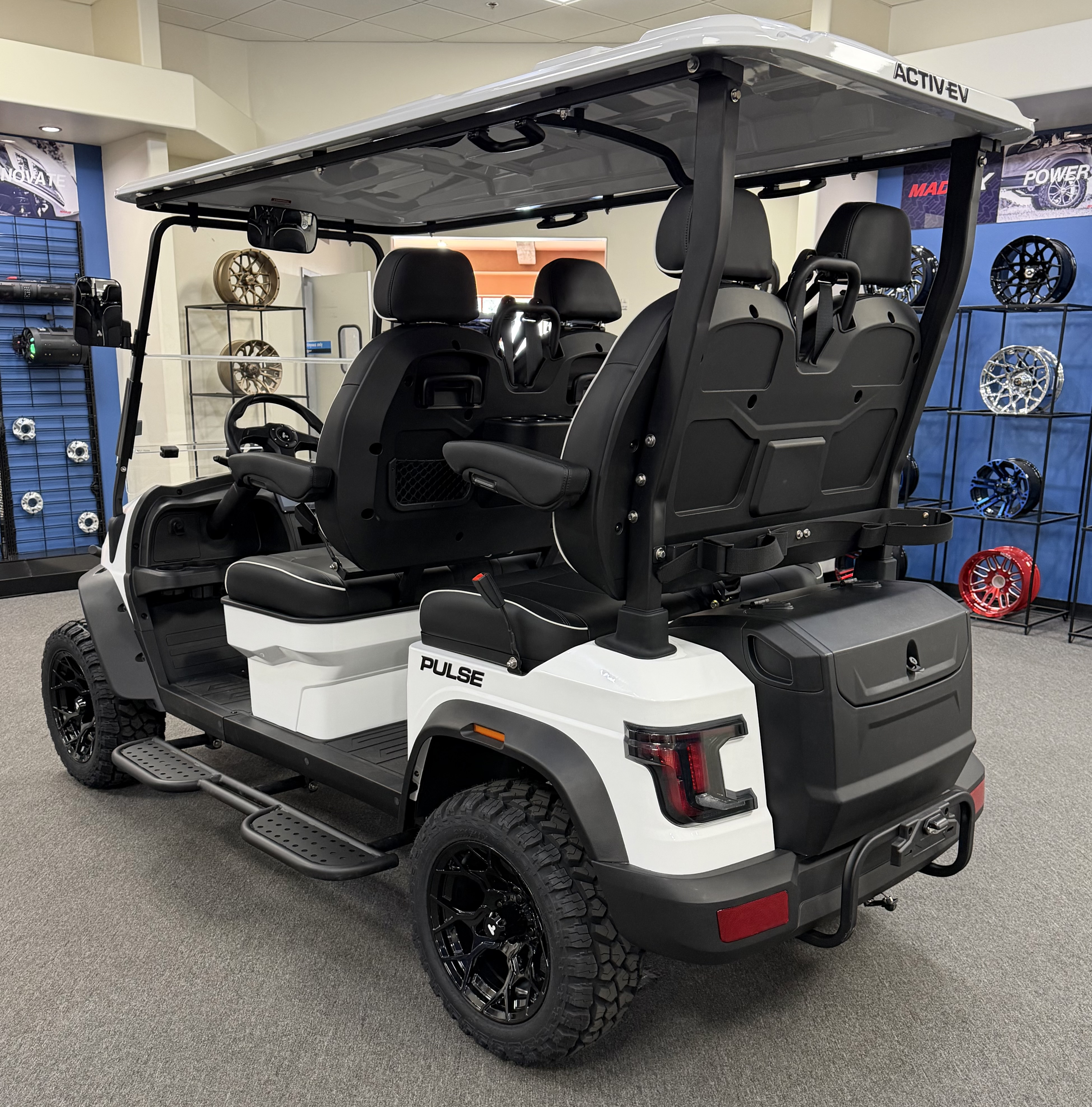 ActiveEV 4PFL 2026 ActivEV Pulse 4PFL, Lifted, Eco Battery Lithium, 10.1” LCD Touch Screen, Apple Car Play, Android Play, Back Up Camera, Wireless Phone Charger, Sound System, Premium Captain’s Chairs, LED Head Lights, LED Turn Signal Mirrors, Adjustable Arm Rest, Unique Keys, Built In Golf Bag Attachment, Rear Storage Box, Running Boards, and Much More. We Also Have a Full Line of Accessory Upgrades Along with Financing Available.