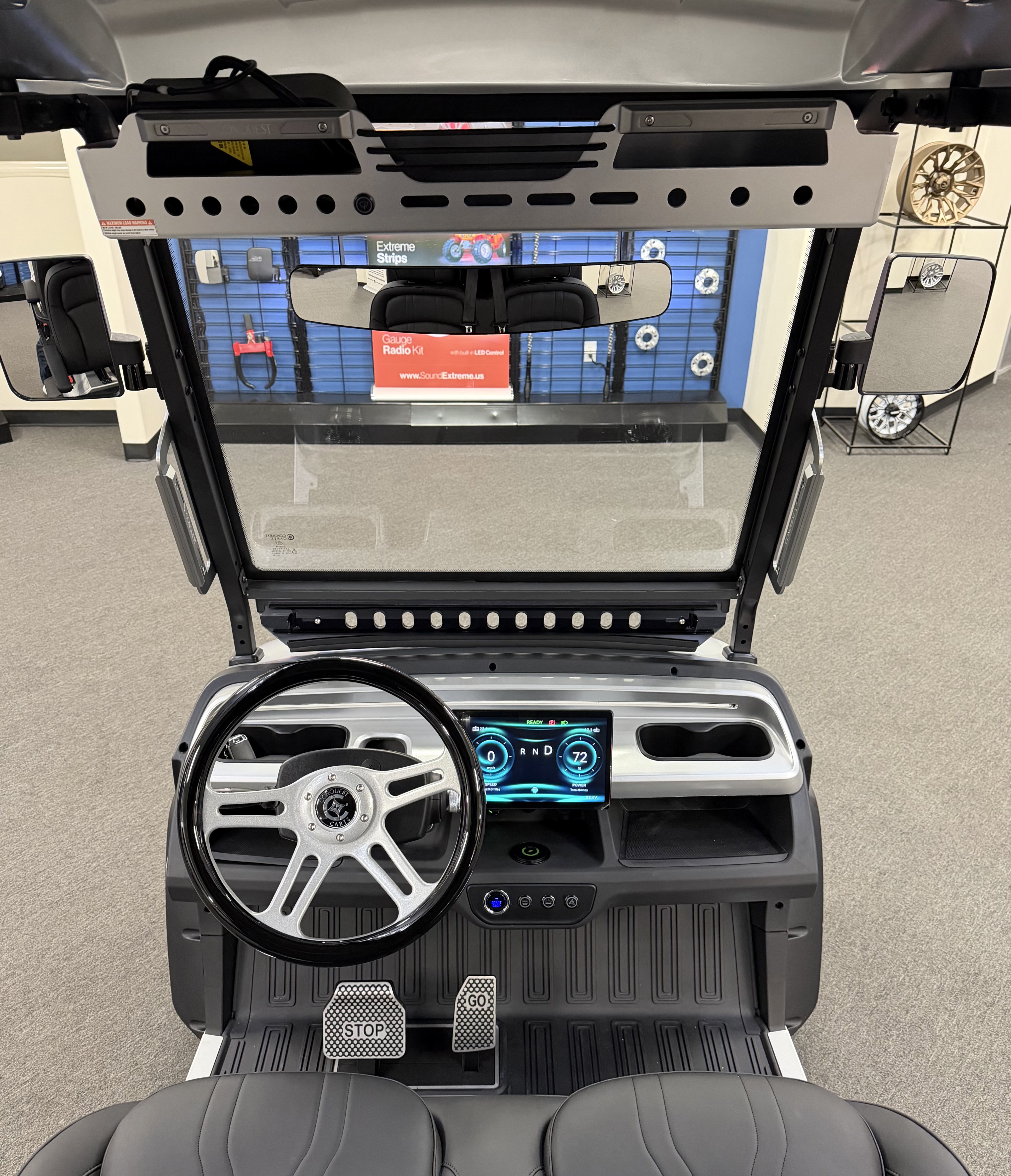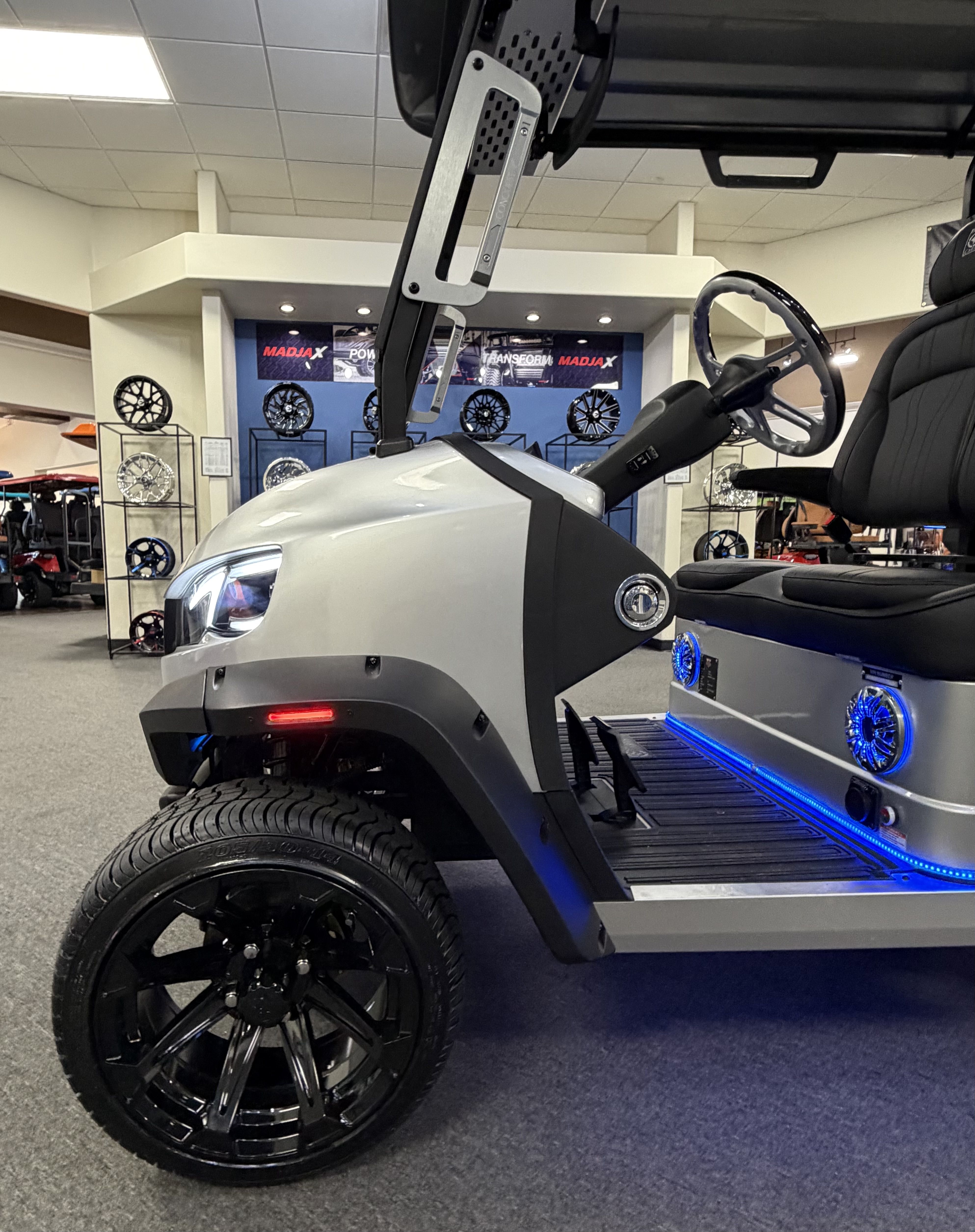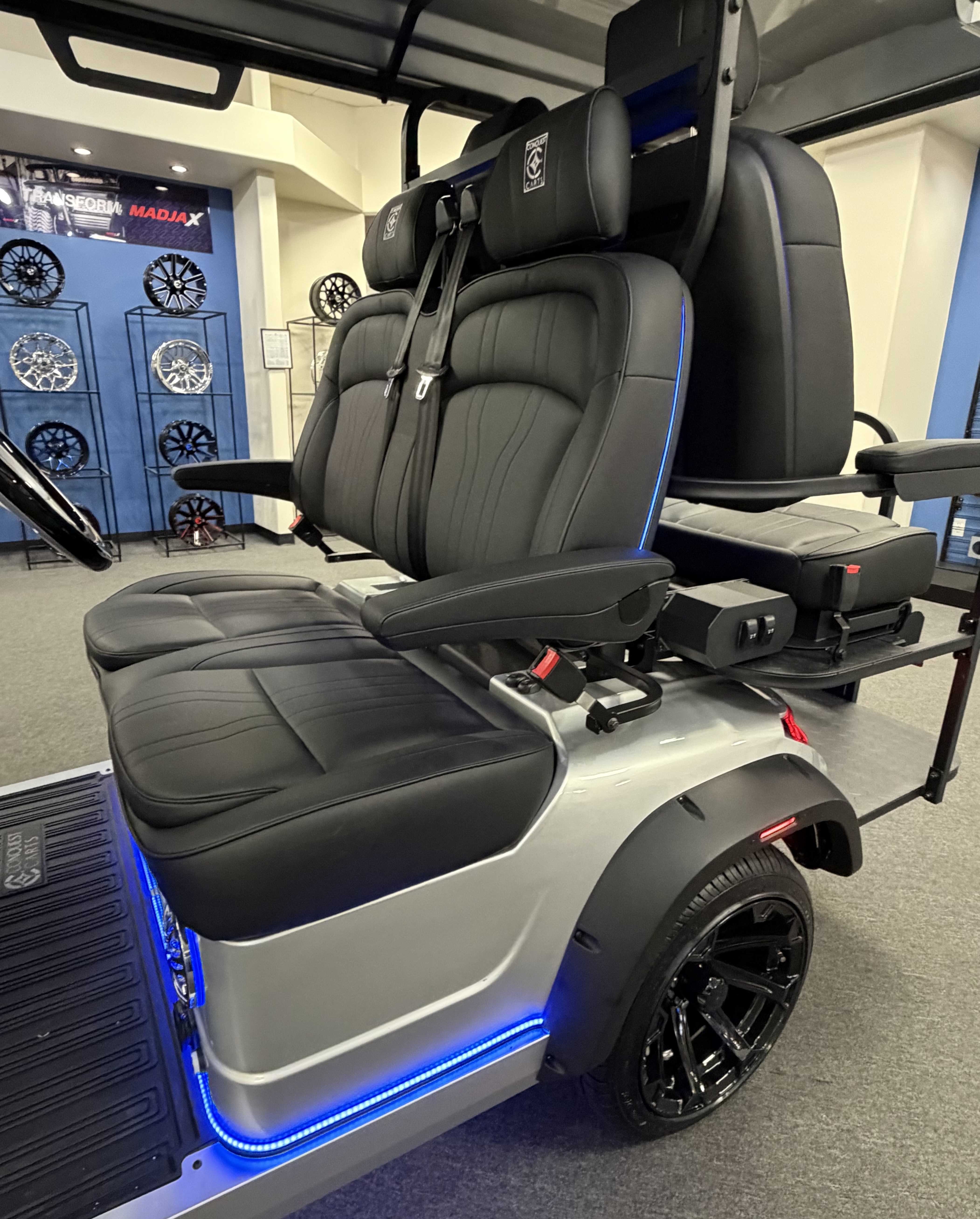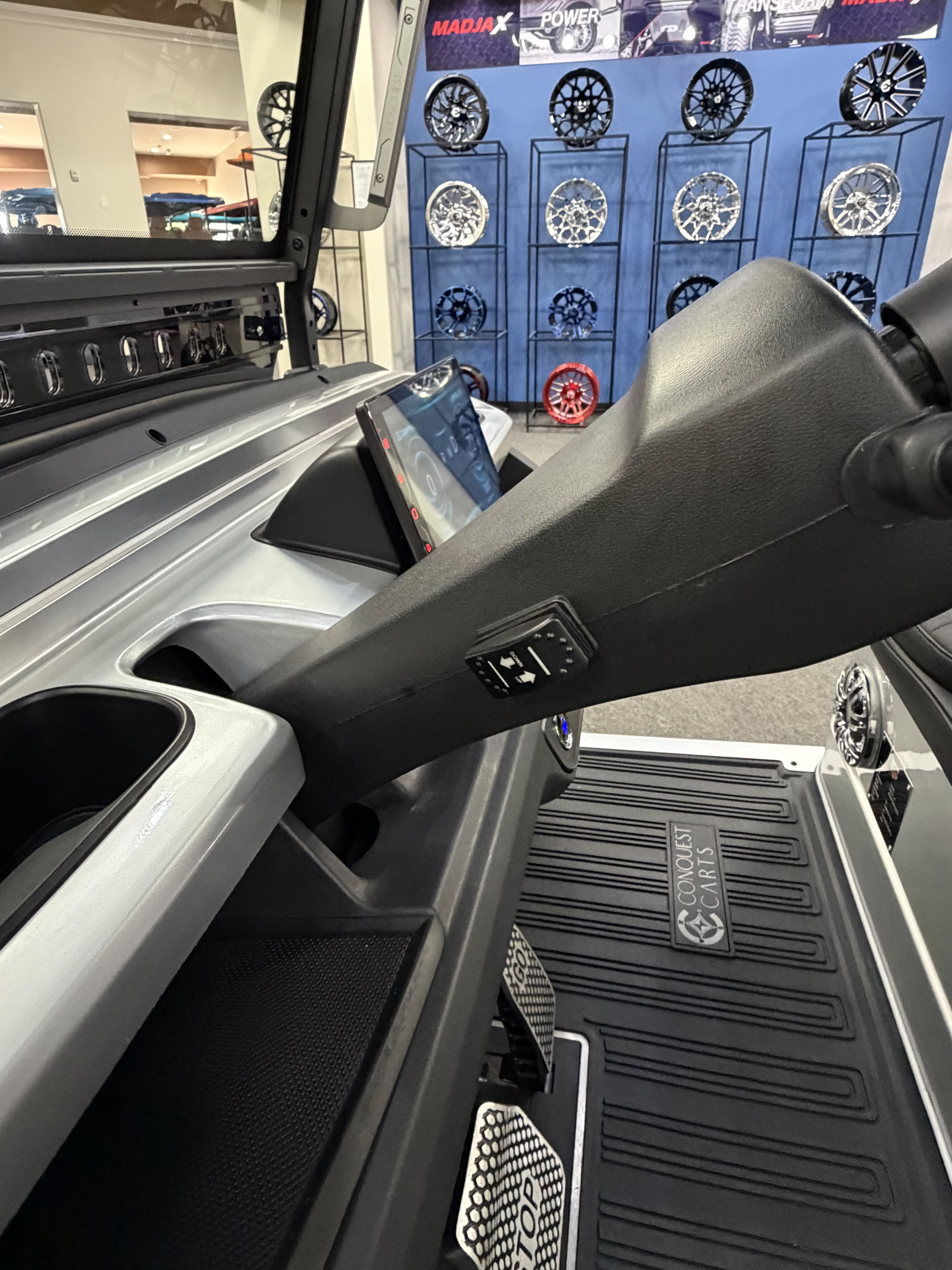 2026 Conquest S40, Lithium Battery ( 5 Year Full Replacement ), 10” Rotating Entertainment Touch Screen, Backup Camera, Apple/Android Carplay, Wireless Phone Charging, Voice Controlled Ambient Lights, Power Rear Lifting Seat With Golf Bag Package, LED Side Mirrors, 4 Mount Speakers with Subwoofer, Keyless/Push Button Start, Heated Front Seats, Power Adjustable Steering Wheel, Adjustable Arm Rest, In-dash Umbrella Holder, Custom 14” Wheels.