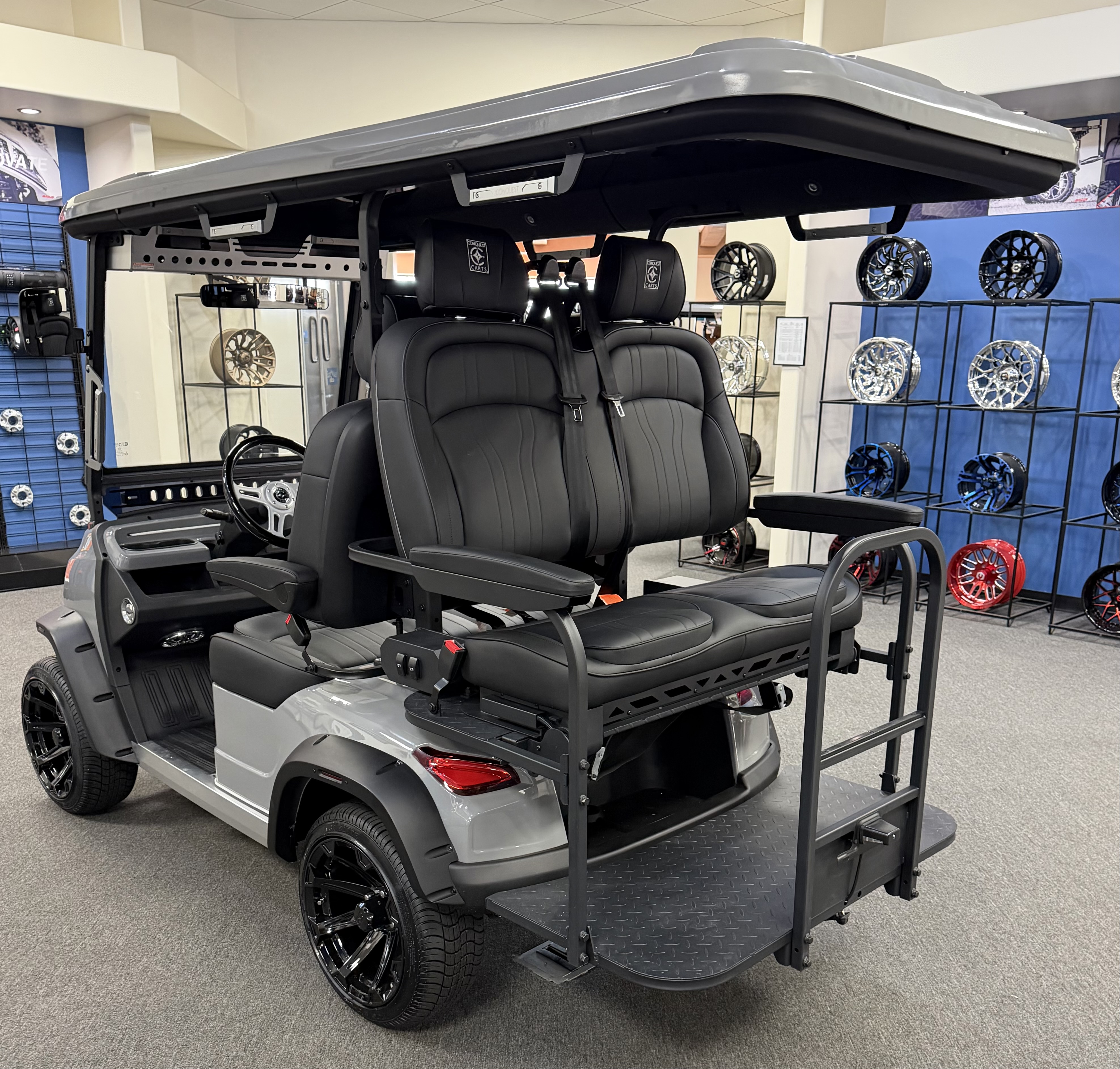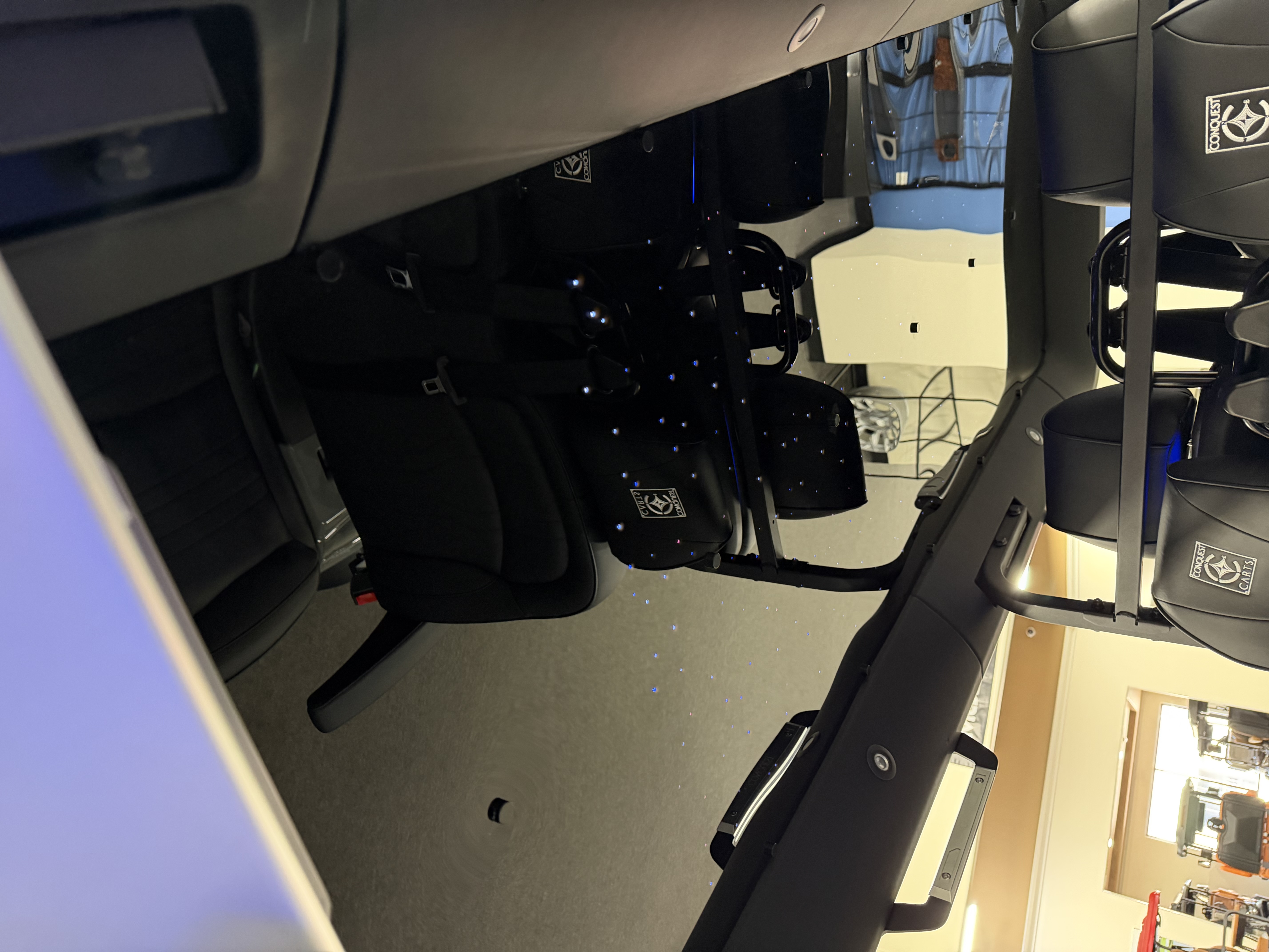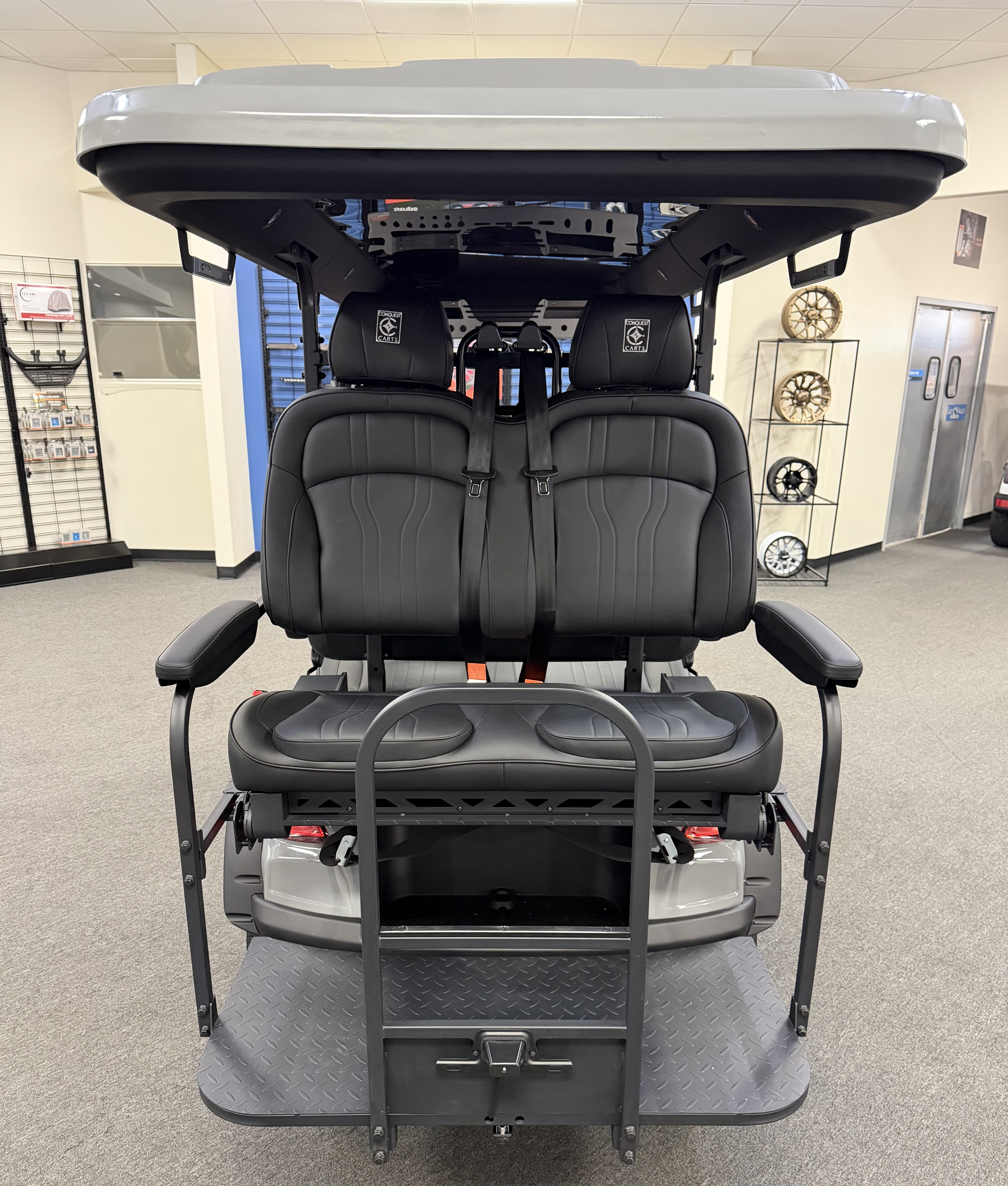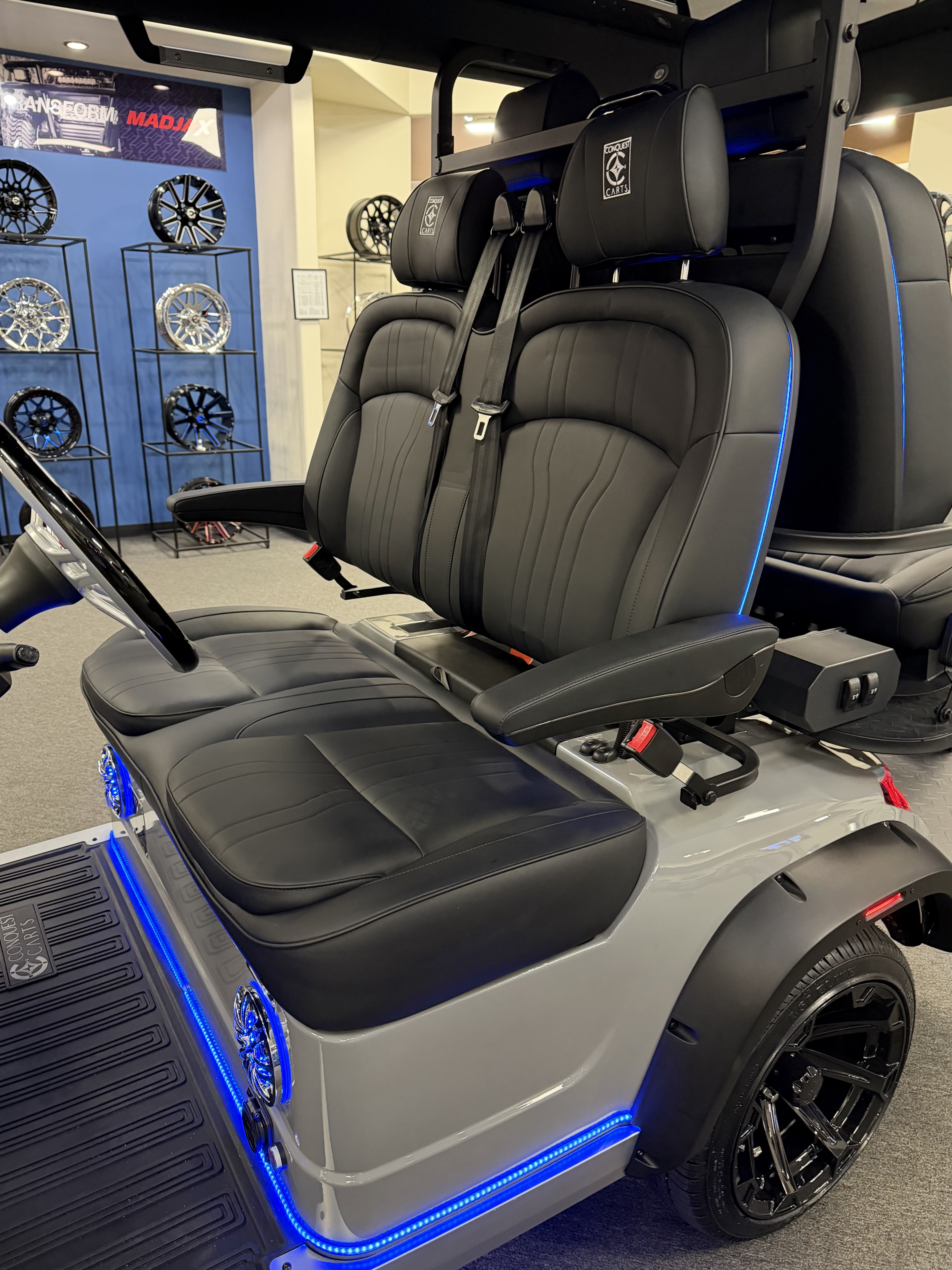 2026 Conquest S40, Lithium Battery ( 5 Year Full Replacement ), 10” Rotating Entertainment Touch Screen, Backup Camera, Apple/Android Carplay, Wireless Phone Charging, Voice Controlled Ambient Lights, Infinity Starlight Roof, Power Rear Lifting Seat With Golf Bag Package, LED Side Mirrors, 4 Mount Speakers with Subwoofer, Keyless/Push Button Start, Heated Front Seats, Power Adjustable Steering Wheel, Adjustable Arm Rest, In-dash Umbrella Holder, Custom 14” Wheels.