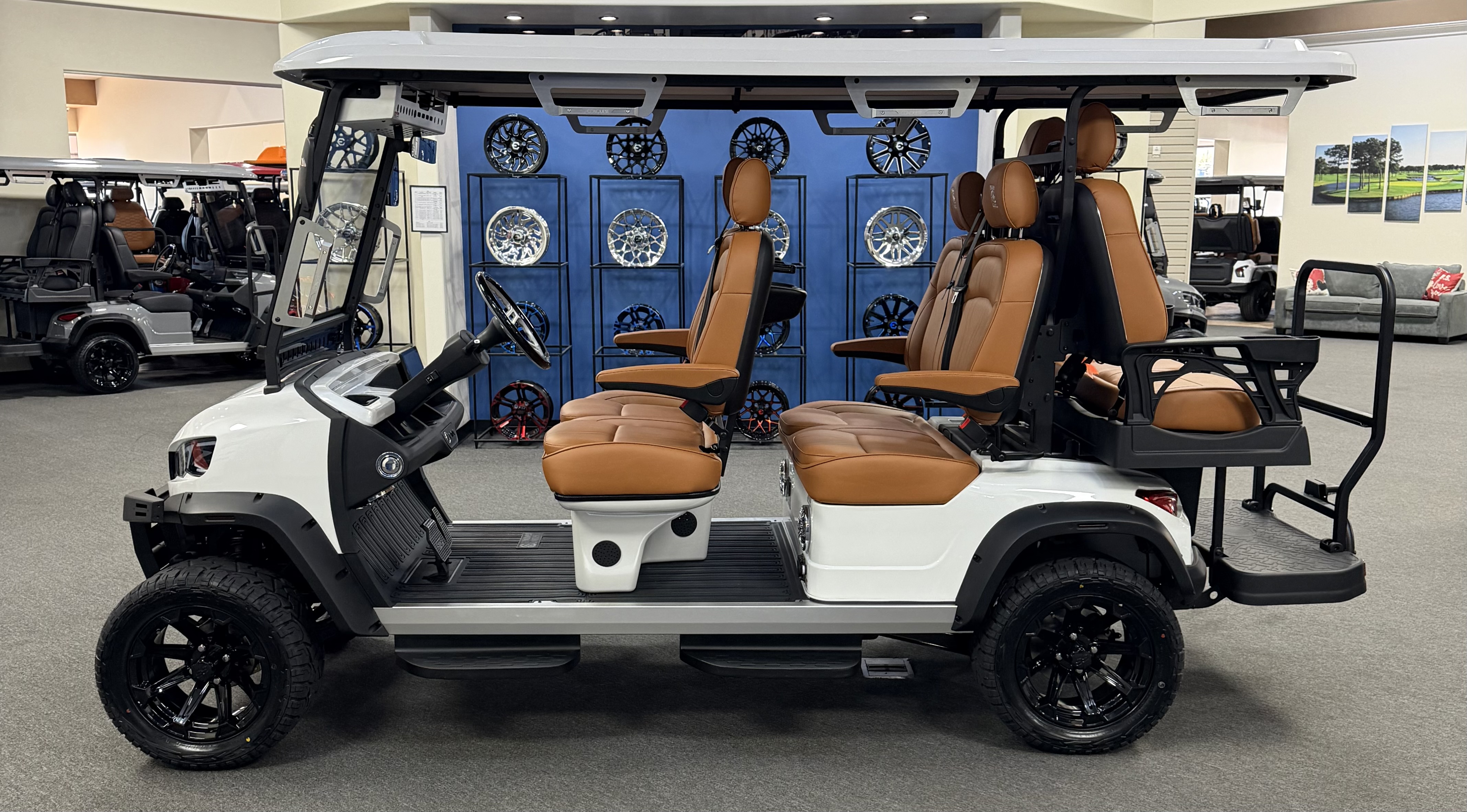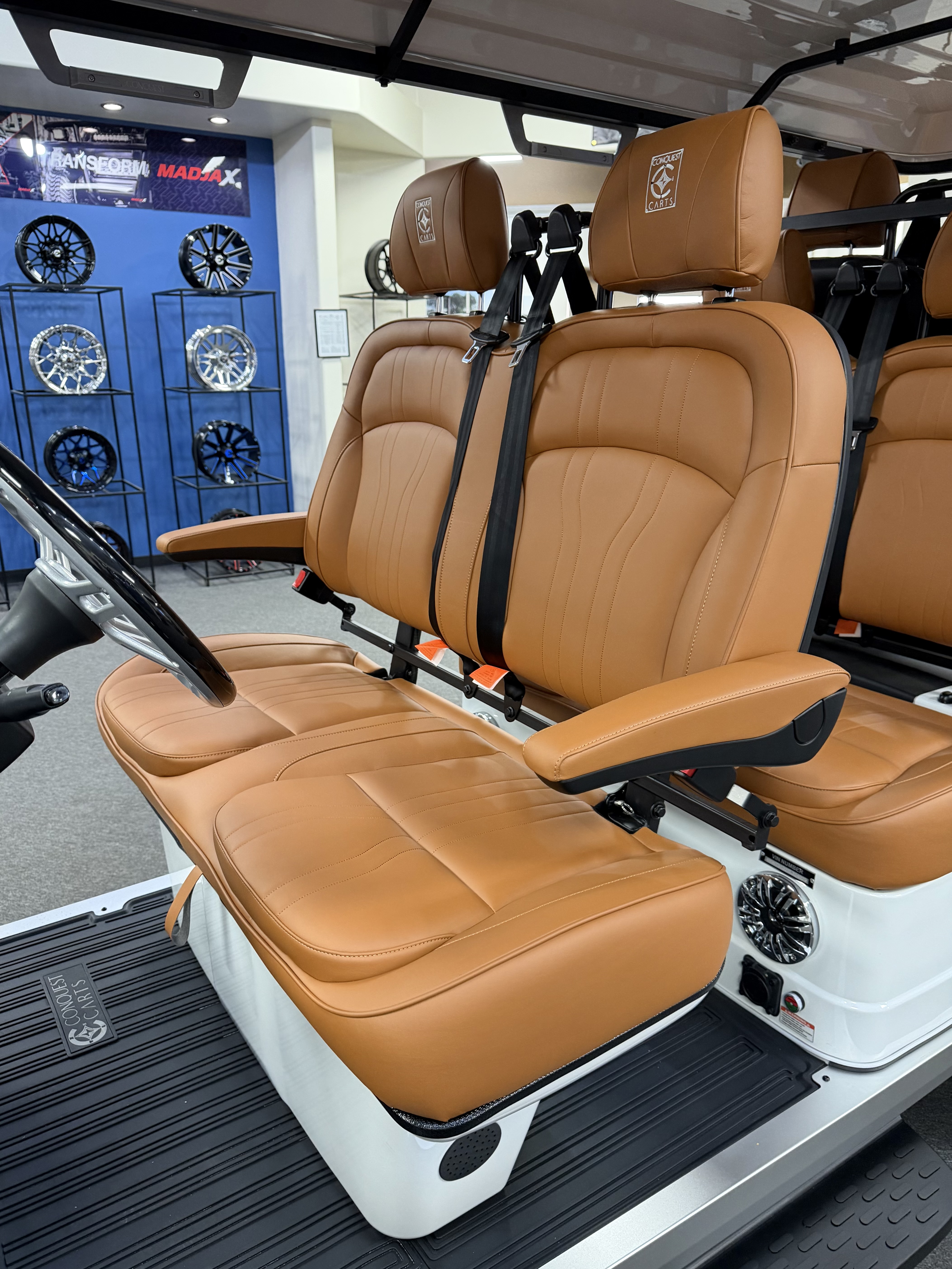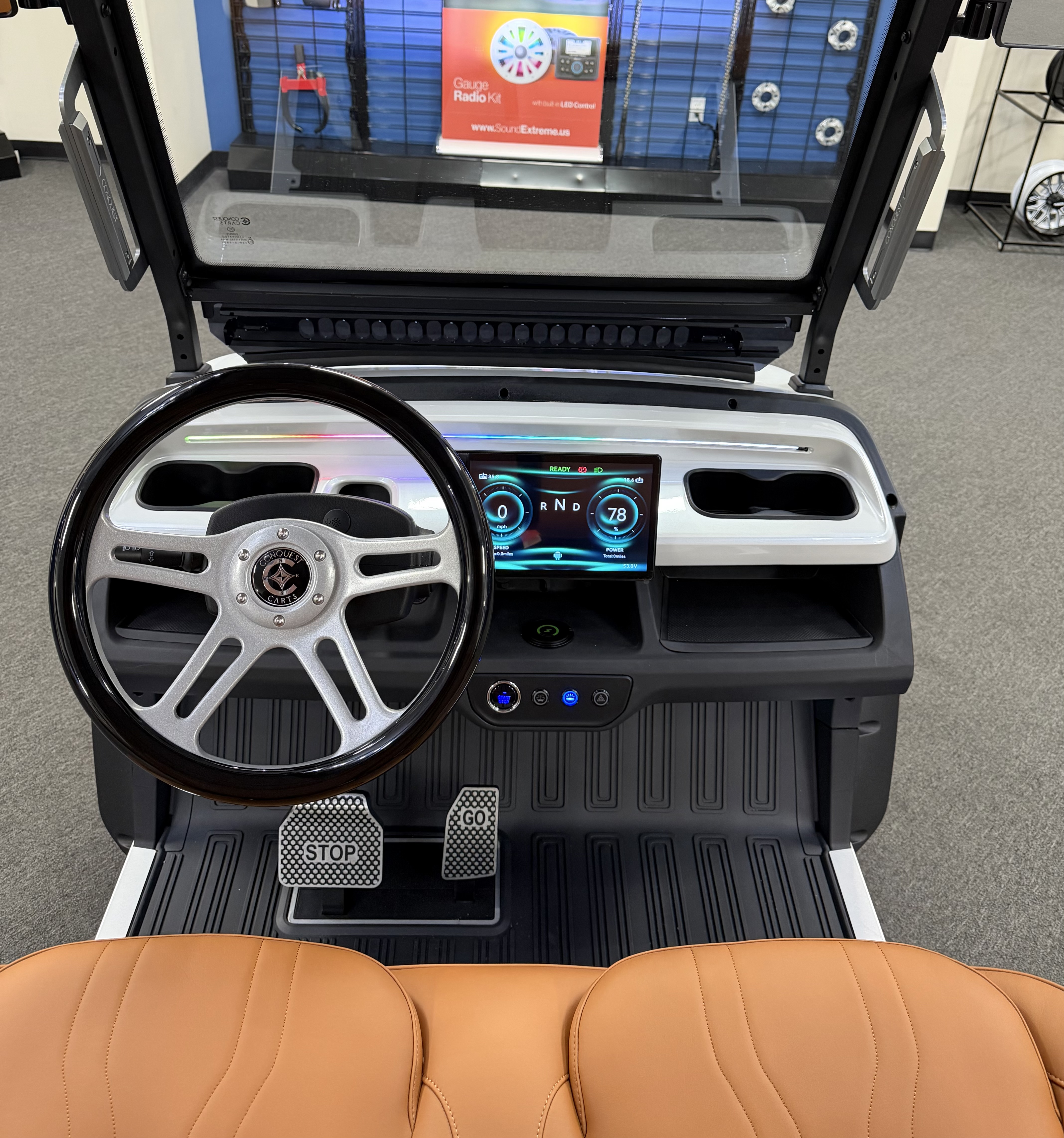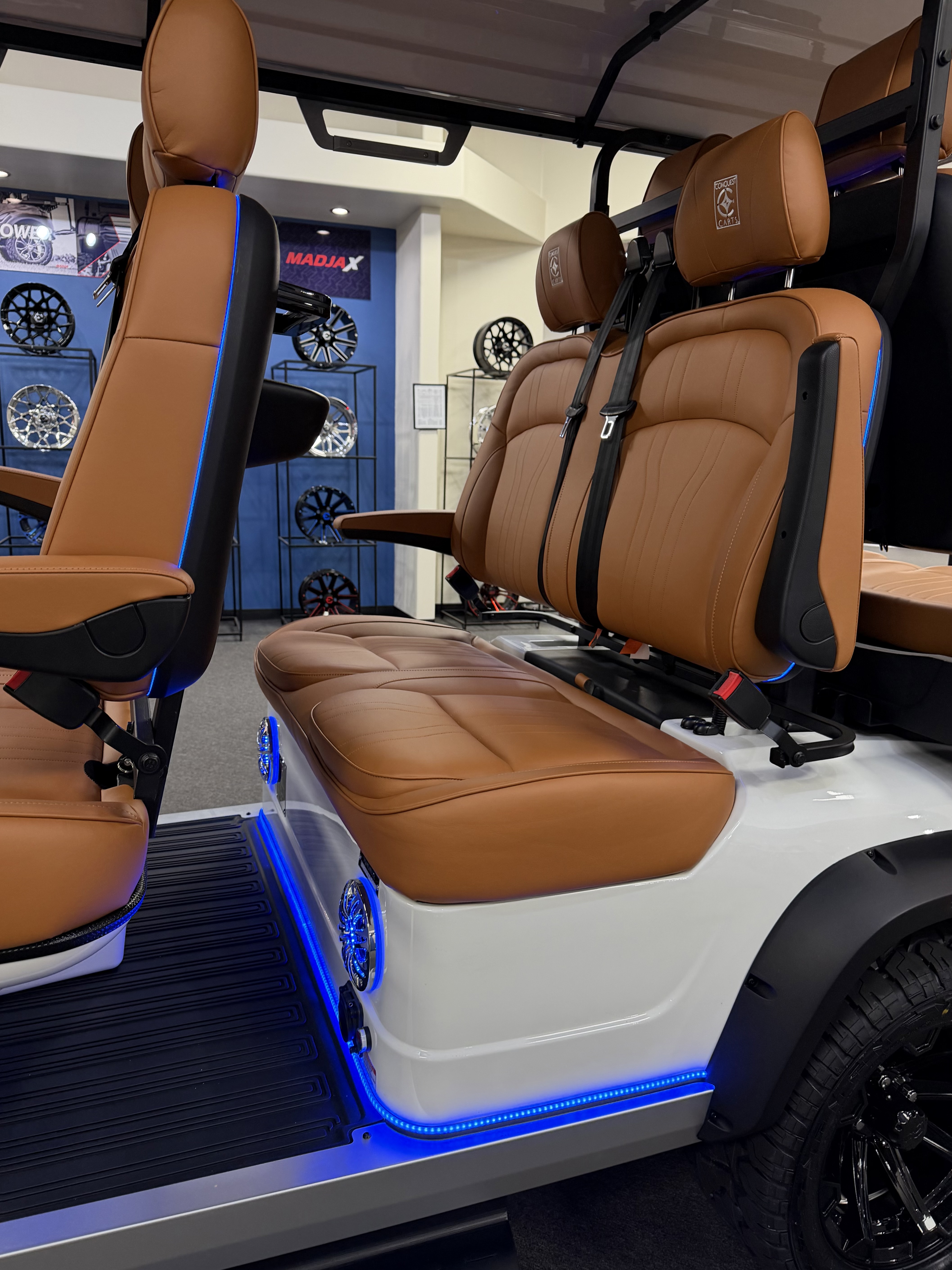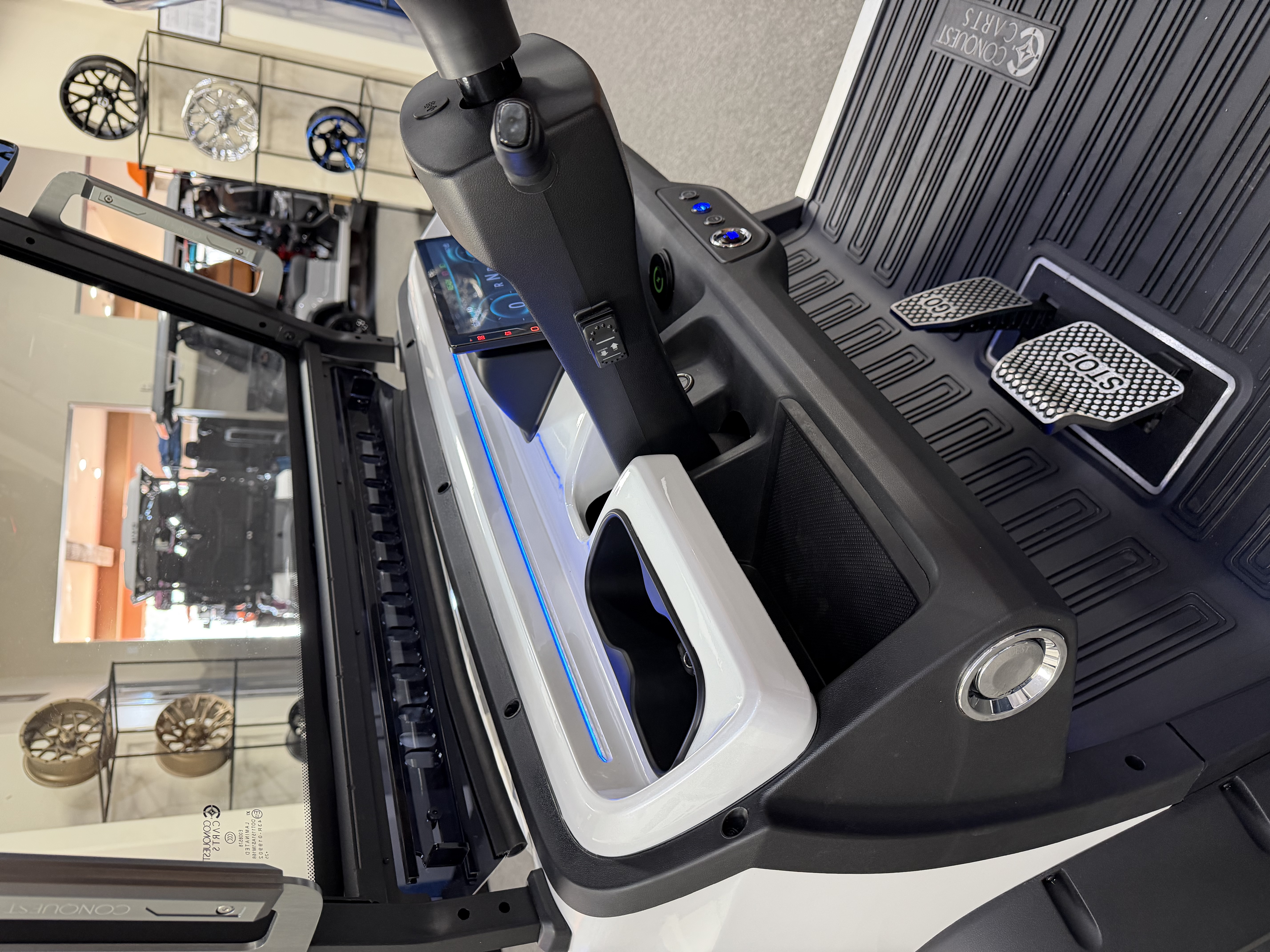 2026 Conquest S60L Lifted, Lithium Battery ( 5 Year Full Replacement ), 10” Rotating Entertainment Touch Screen, Backup Camera, Apple/Android Carplay, Voice Controlled Ambient Lights, LED Side Mirrors, 4 Mount Speakers with Subwoofer, Keyless/Push Button Start, Heated Front And Middle Row Seats, Power Adjustable Steering Wheel, Adjustable Arm Rest, In-dash Umbrella Holder, Custom 14” Wheels.