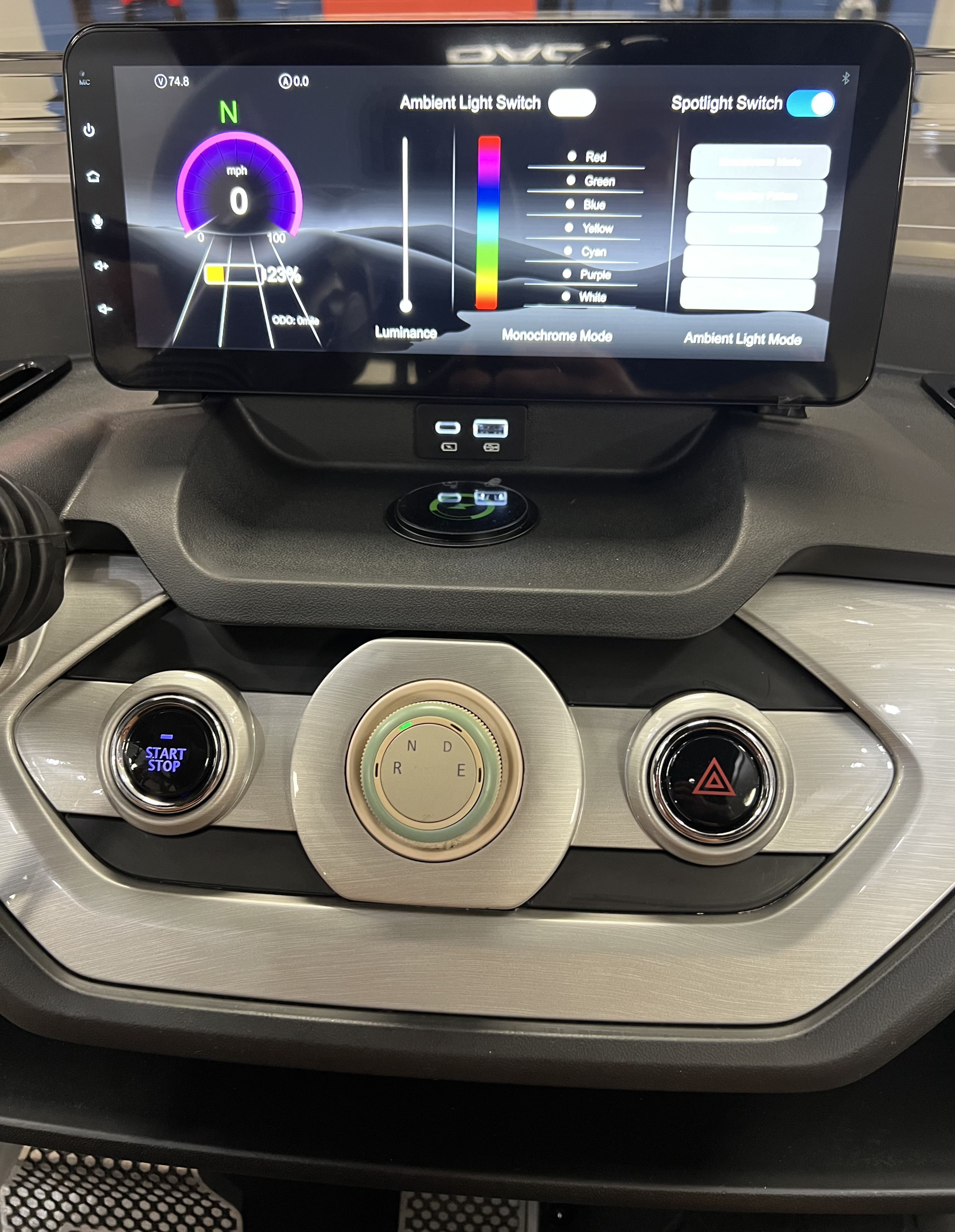 2026 Apollo 4: 4 Seat Forward Facing Golf Cart, 72V/105AH Lithium Battery, 12.3” Touch Screen, Backup camera,Apple/Andriod Carplay, Bluetooth soundbar, Roof Lining includes 2- 6 ½” speakers, Ambient lights, Roof logo light, High mounted brake lights, Cruise control ( YES Cruise control) Tilt steering, Wireless phone charging, Turn signal side mirrors, Front LED headlights, Running boards, Push Button Start, Folding armrests, Premier seats, Front push bar, Steering wheel radio controls, 4-wheel Disc brakes, and much more. We Also Have a Full Line of Accessory Upgrades Along with Financing Available.