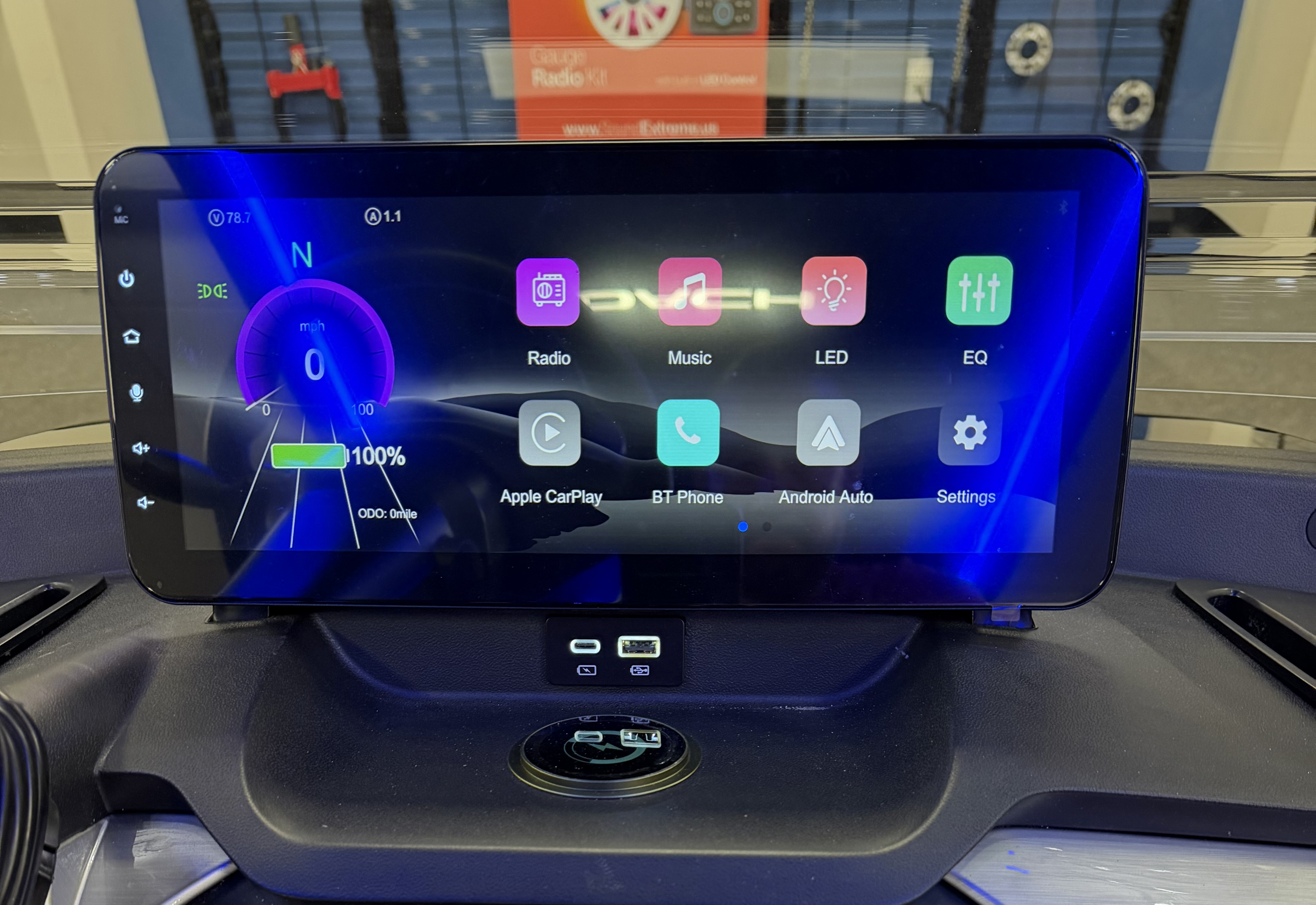 DACH 2026 Apollo 4: 4 Seat Forward Facing Golf Cart, 72V/105AH Lithium Battery, 12.3” Touch Screen, Backup camera,Apple/Andriod Carplay, Bluetooth soundbar, Roof Lining includes 2- 6 ½” speakers, Ambient lights, Roof logo light, High mounted brake lights, Cruise control ( YES Cruise control) Tilt steering, Wireless phone charging, Turn signal side mirrors, Front LED headlights, Running boards, Push Button Start, Folding armrests, Premier seats, Front push bar, Steering wheel radio controls, 4-wheel Disc brakes, and much more. We Also Have a Full Line of Accessory Upgrades Along with Financing Available.