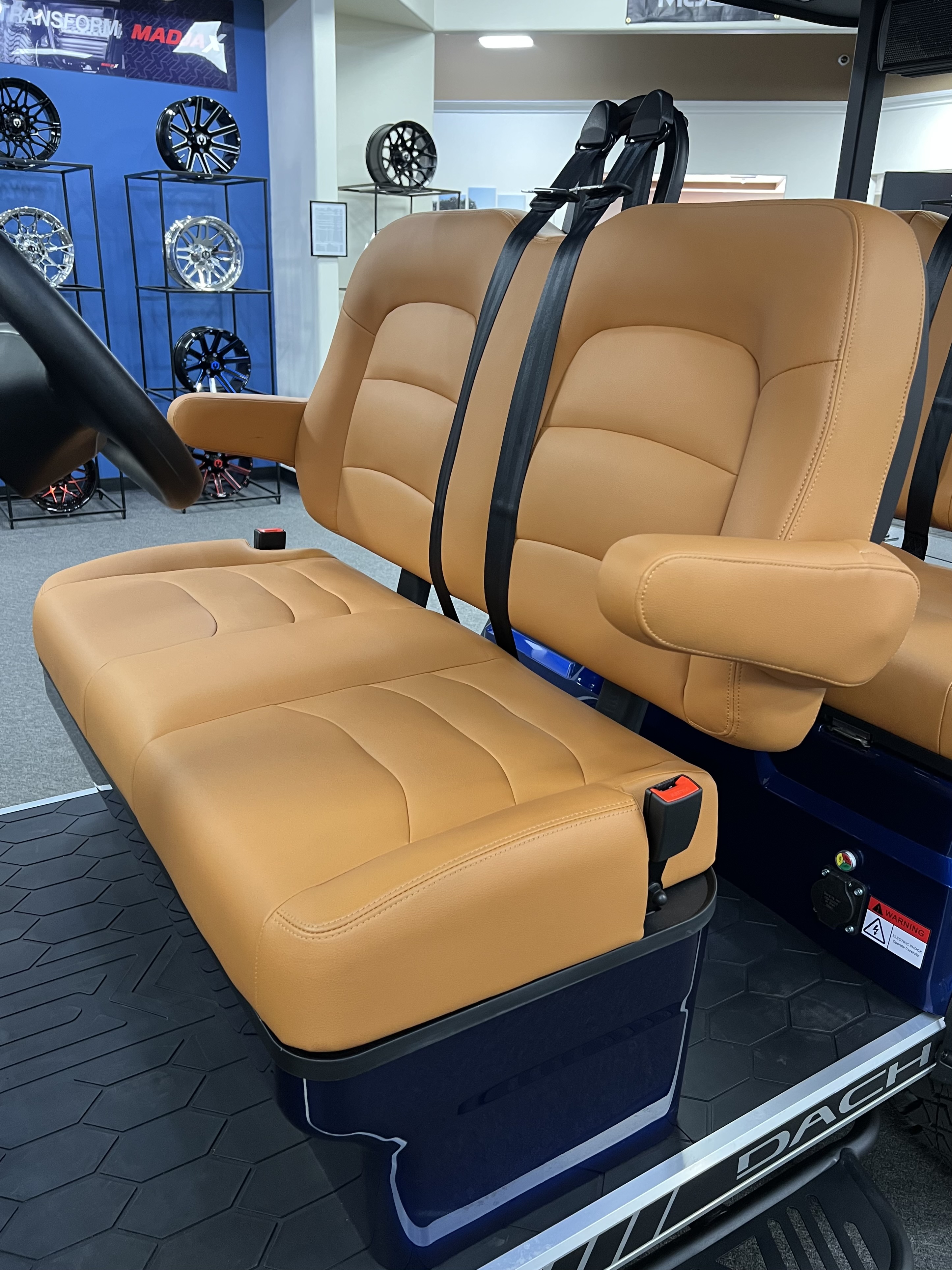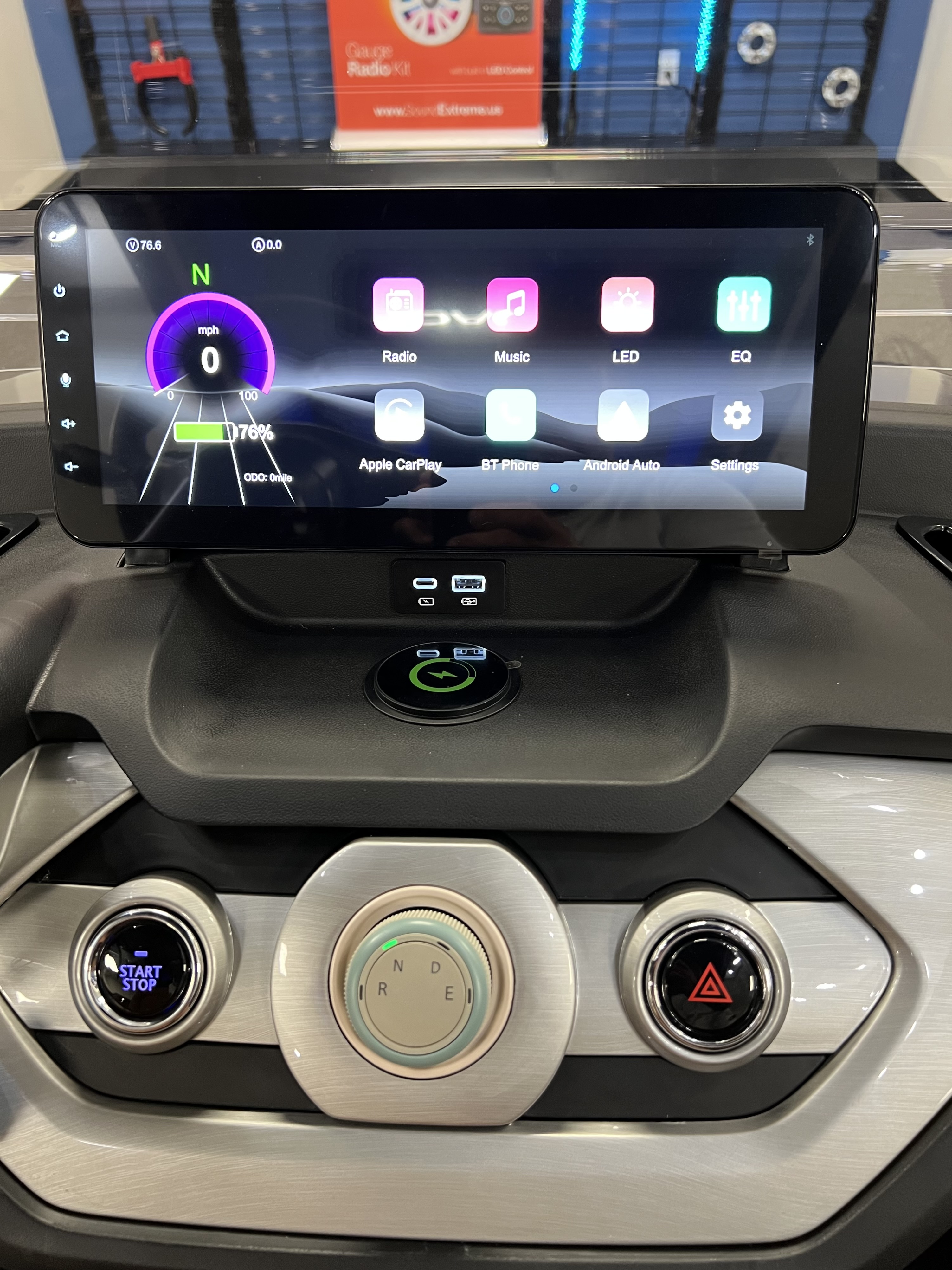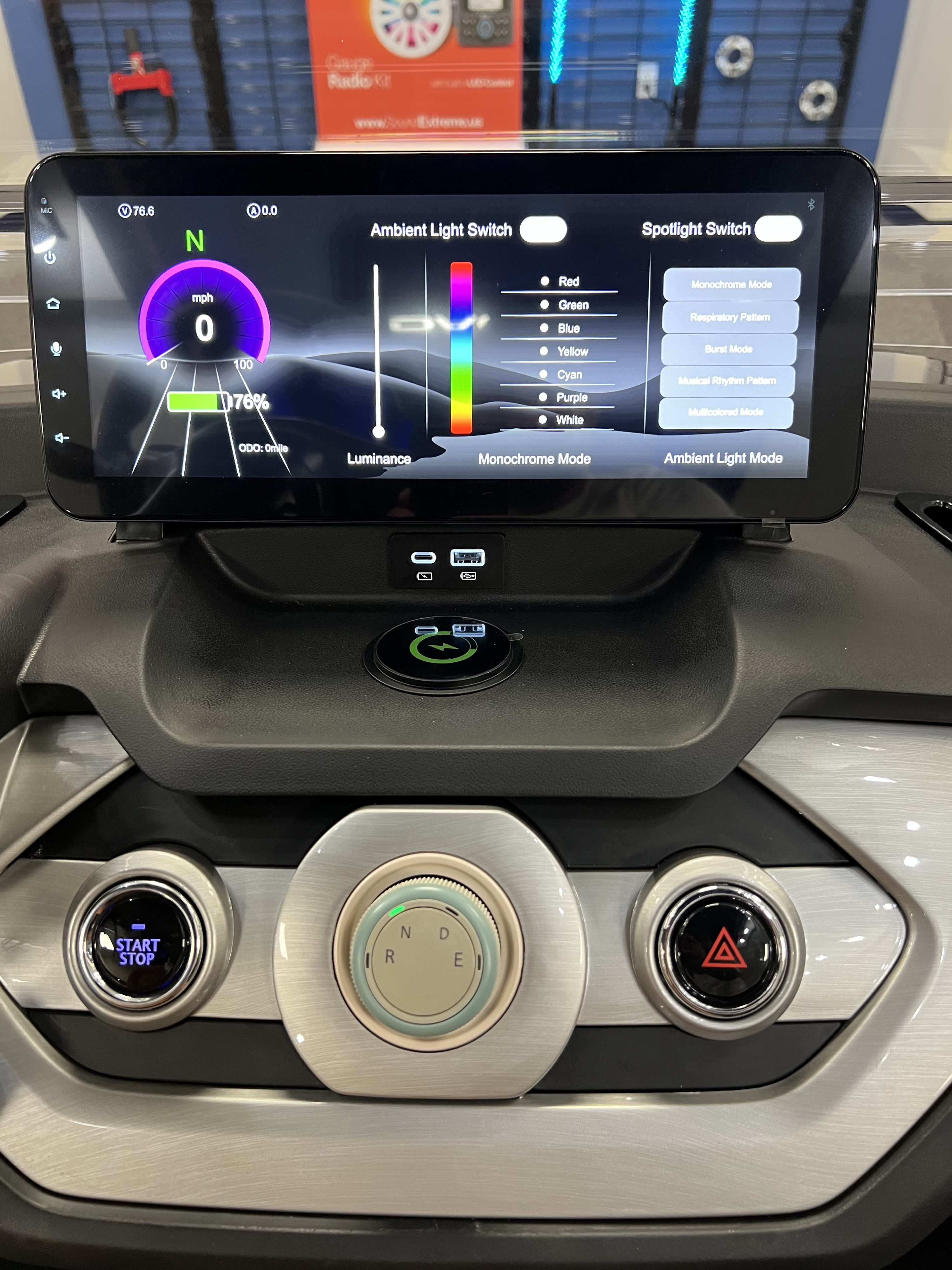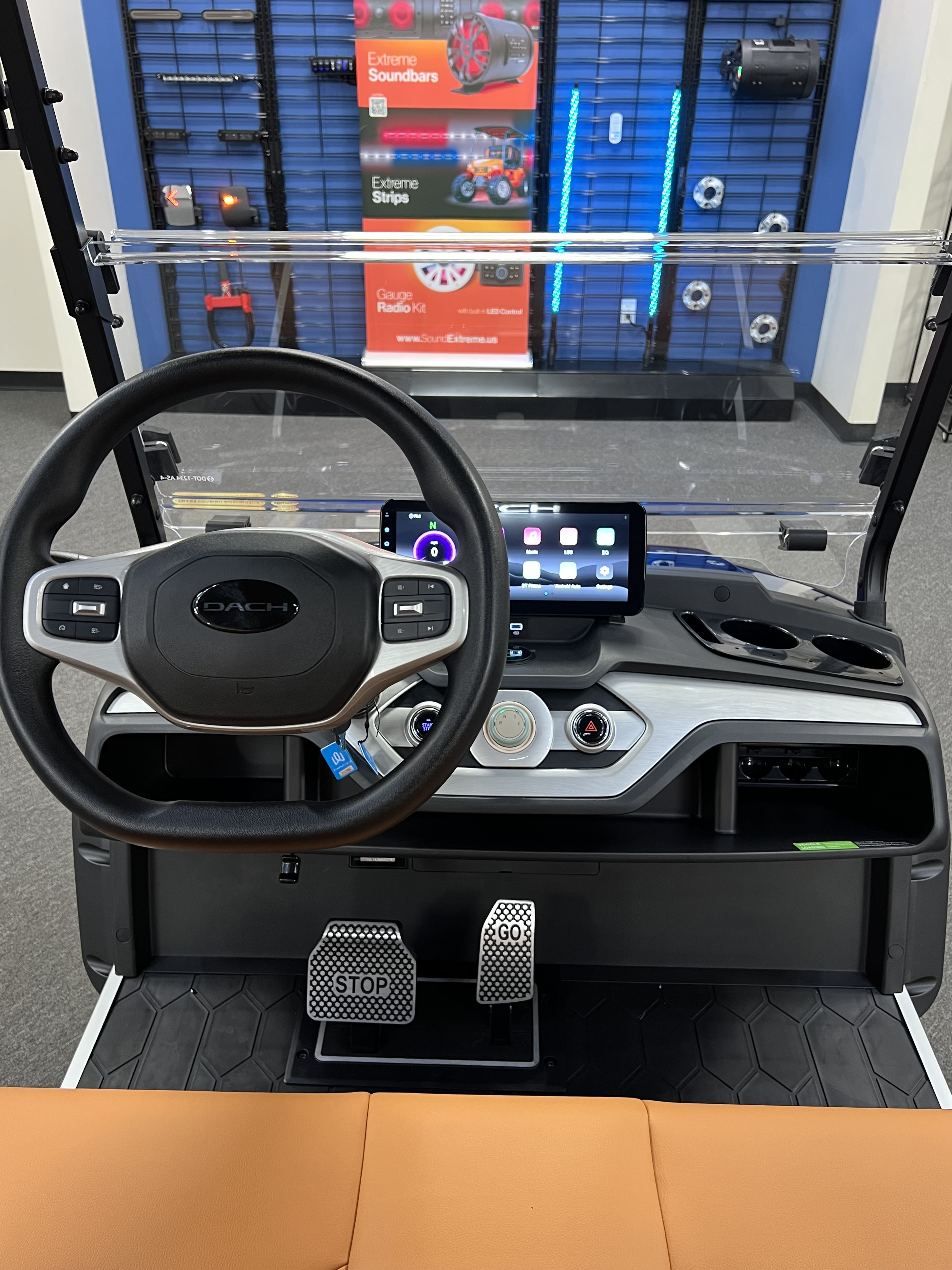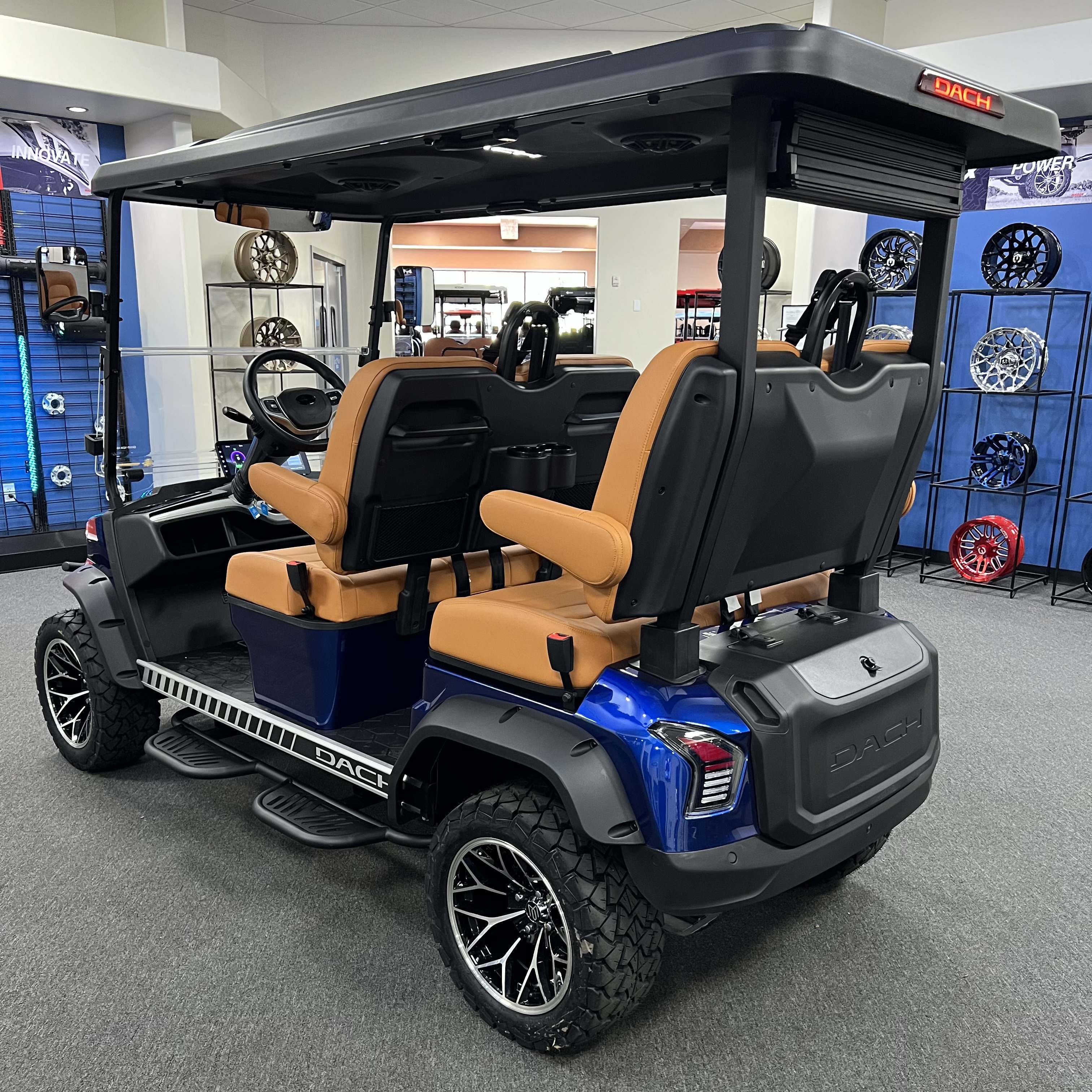DACH 2026 Apollo 4: 4 Seat Forward Facing Golf Cart, 72V/105AH Lithium Battery, 12.3” Touch Screen, Backup camera,Apple/Andriod Carplay, Bluetooth soundbar, Roof Lining includes 2- 6 ½” speakers, Ambient lights, Roof logo light, High mounted brake lights, Cruise control ( YES Cruise control) Tilt steering, Wireless phone charging, Turn signal side mirrors, Front LED headlights, Running boards, Push Button Start, Folding armrests, Premier seats, Front push bar, Steering wheel radio controls, 4-wheel Disc brakes, and much more. We Also Have a Full Line of Accessory Upgrades Along with Financing Available.