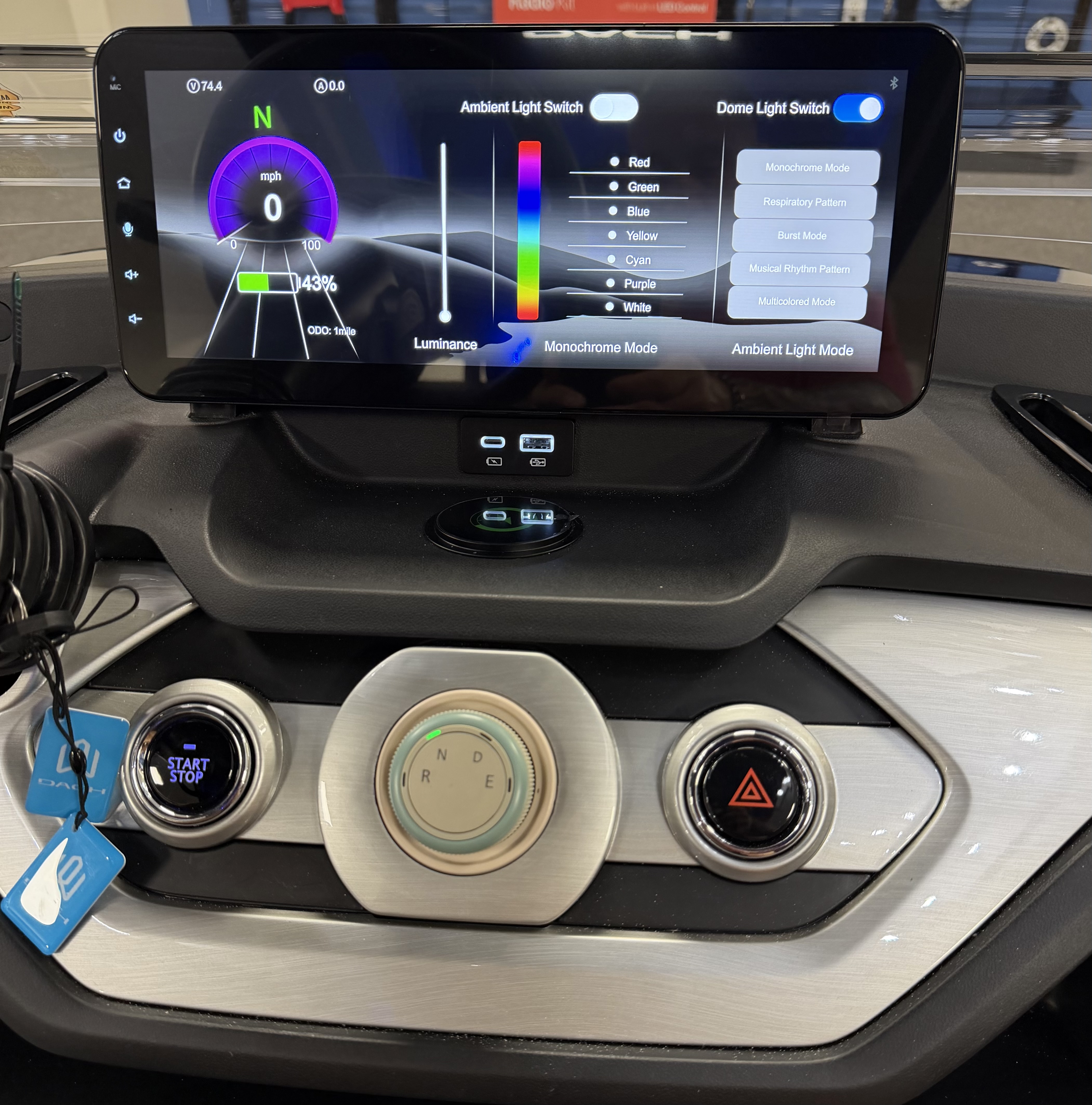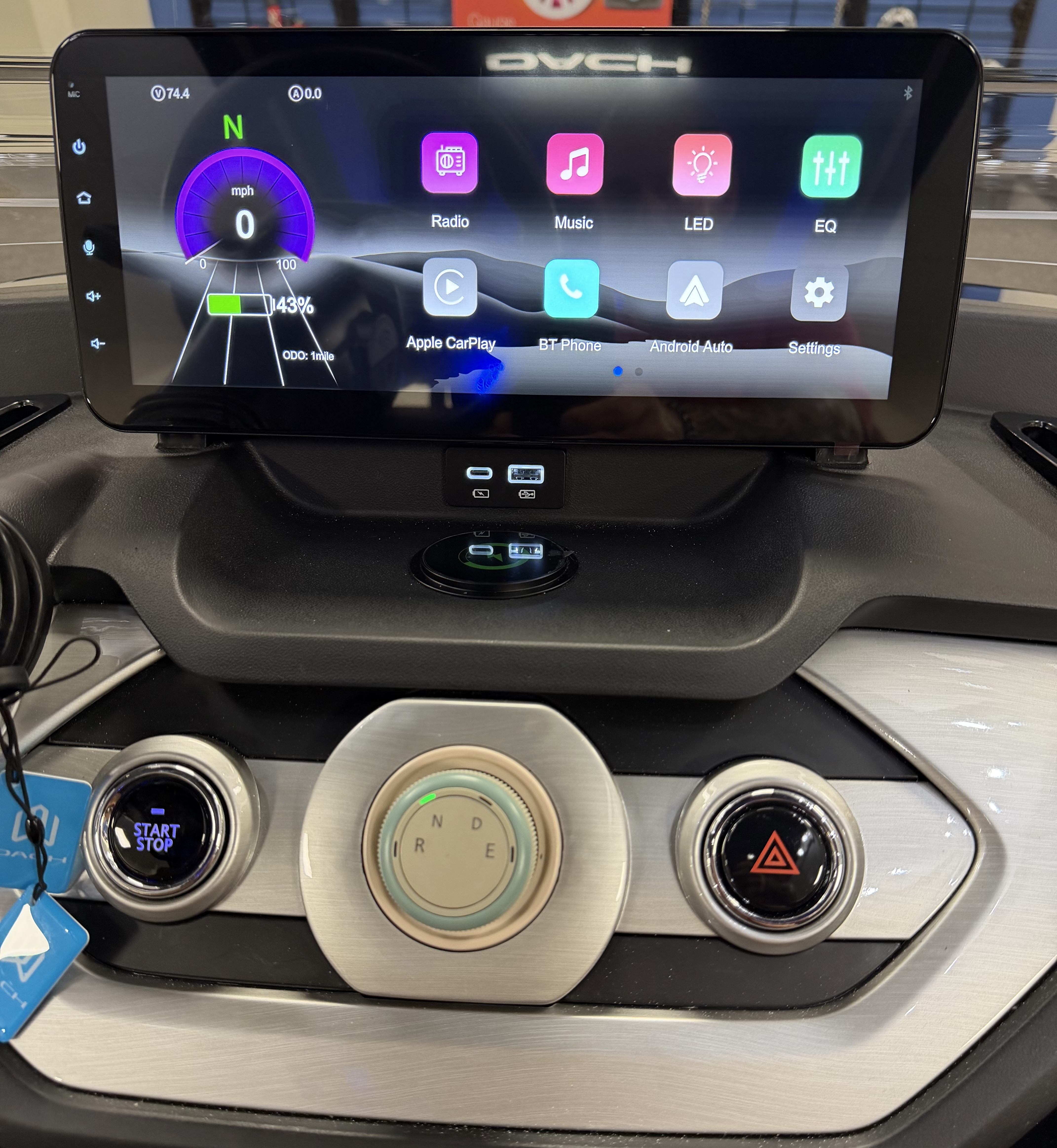 2026 Apollo 4: 4 Seat Forward Facing Golf Cart, 72V/105AH Lithium Battery, 12.3” Touch Screen, Backup camera,Apple/Andriod Carplay, Bluetooth soundbar, Roof Lining includes 2- 6 ½” speakers, Ambient lights, Roof logo light, High mounted brake lights, Cruise control ( YES Cruise control) Tilt steering, Wireless phone charging, Turn signal side mirrors, Front LED headlights, Running boards, Push Button Start, Folding armrests, Premier seats, Front push bar, Steering wheel radio controls, 4-wheel Disc brakes, and much more. We Also Have a Full Line of Accessory Upgrades Along with Financing Available.