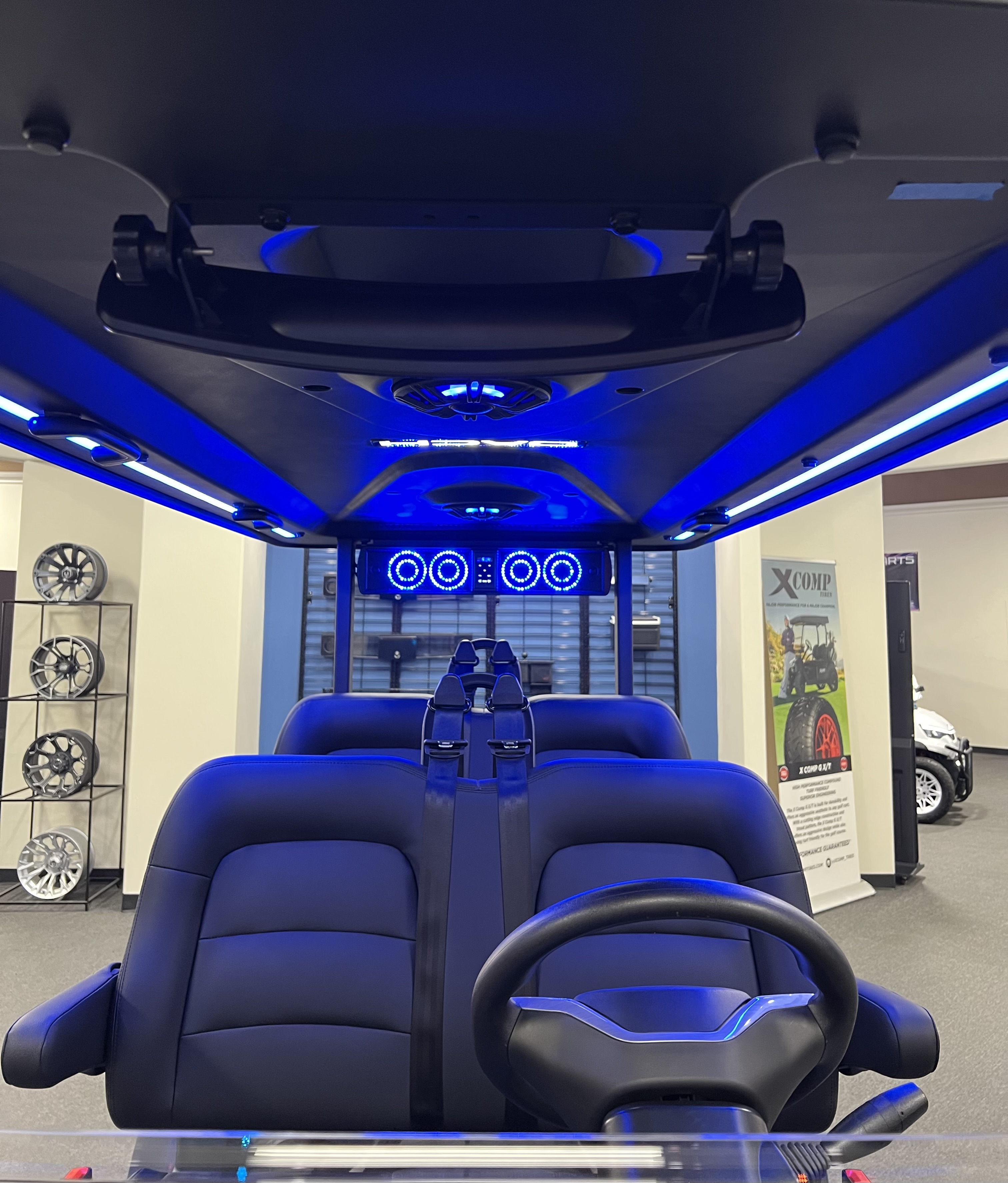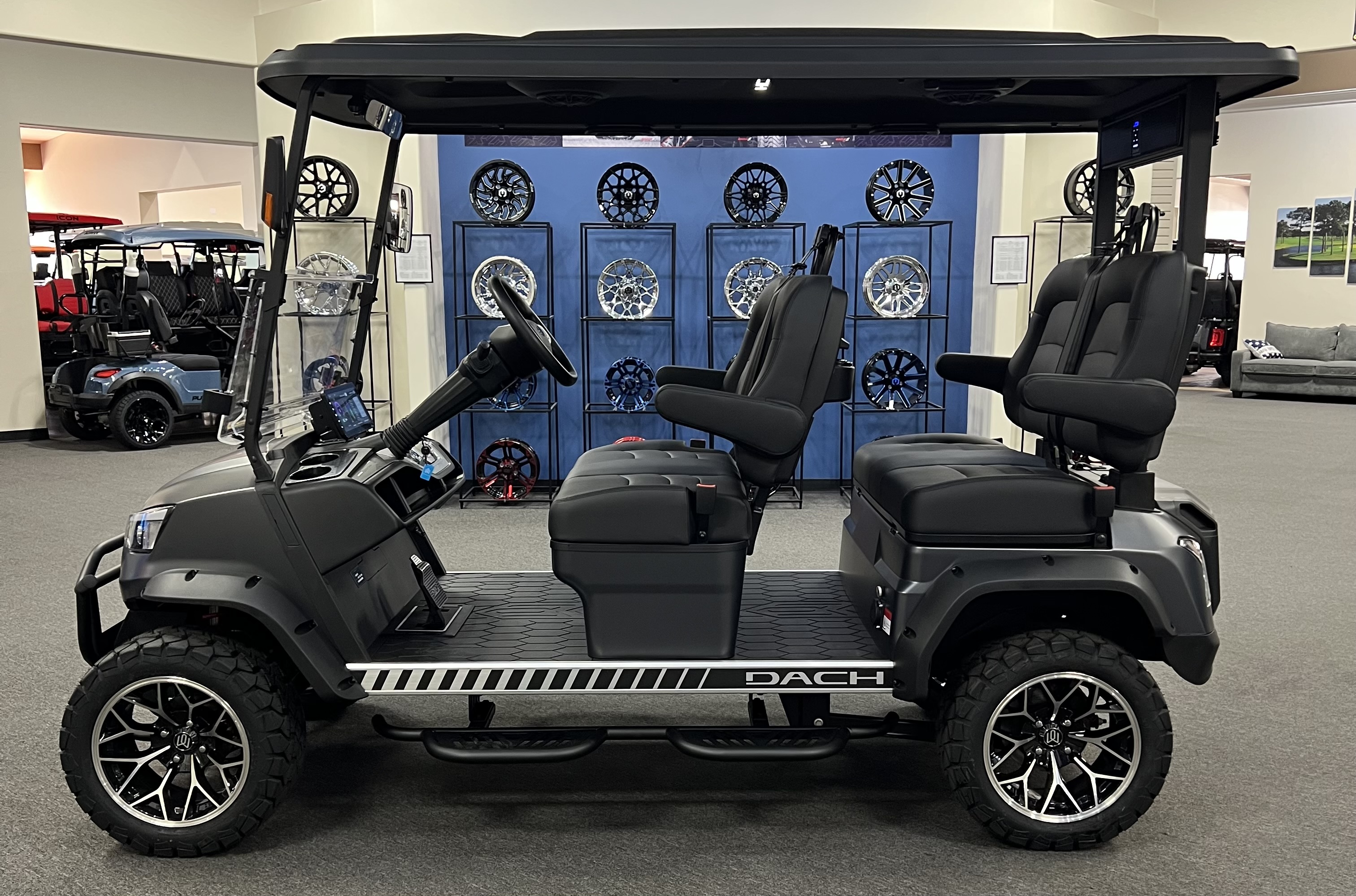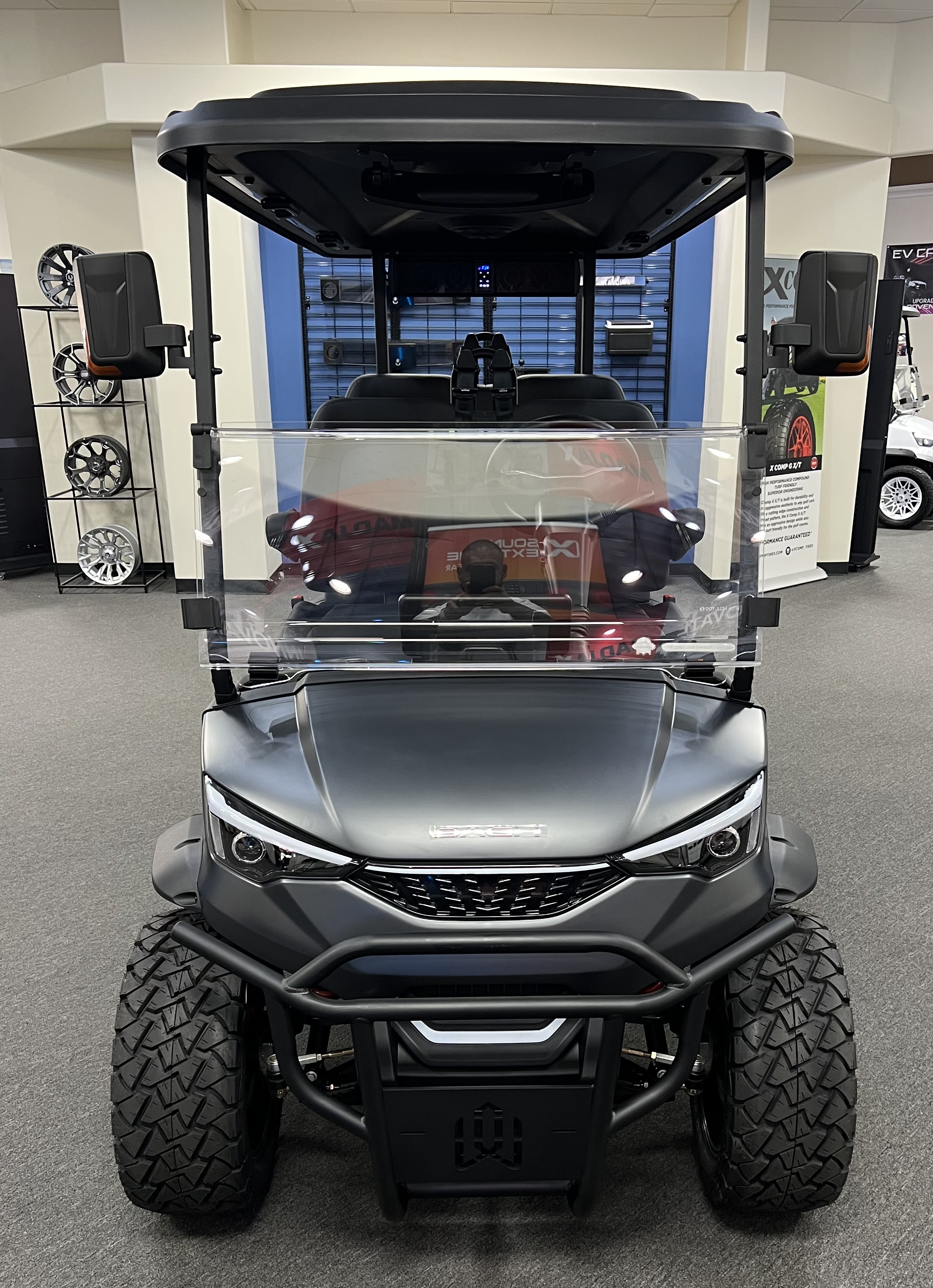 2026 Apollo 4: 4 Seat Forward Facing Golf Cart, 72V/105AH Lithium Battery, 12.3” Touch Screen, Backup camera,Apple/Andriod Carplay, Bluetooth soundbar, Roof Lining includes 2- 6 ½” speakers, Ambient lights, Roof logo light, High mounted brake lights, Cruise control ( YES Cruise control) Tilt steering, Wireless phone charging, Turn signal side mirrors, Front LED headlights, Running boards, Push Button Start, Folding armrests, Premier seats, Front push bar, Steering wheel radio controls, 4-wheel Disc brakes, and much more. We Also Have a Full Line of Accessory Upgrades Along with Financing Available.