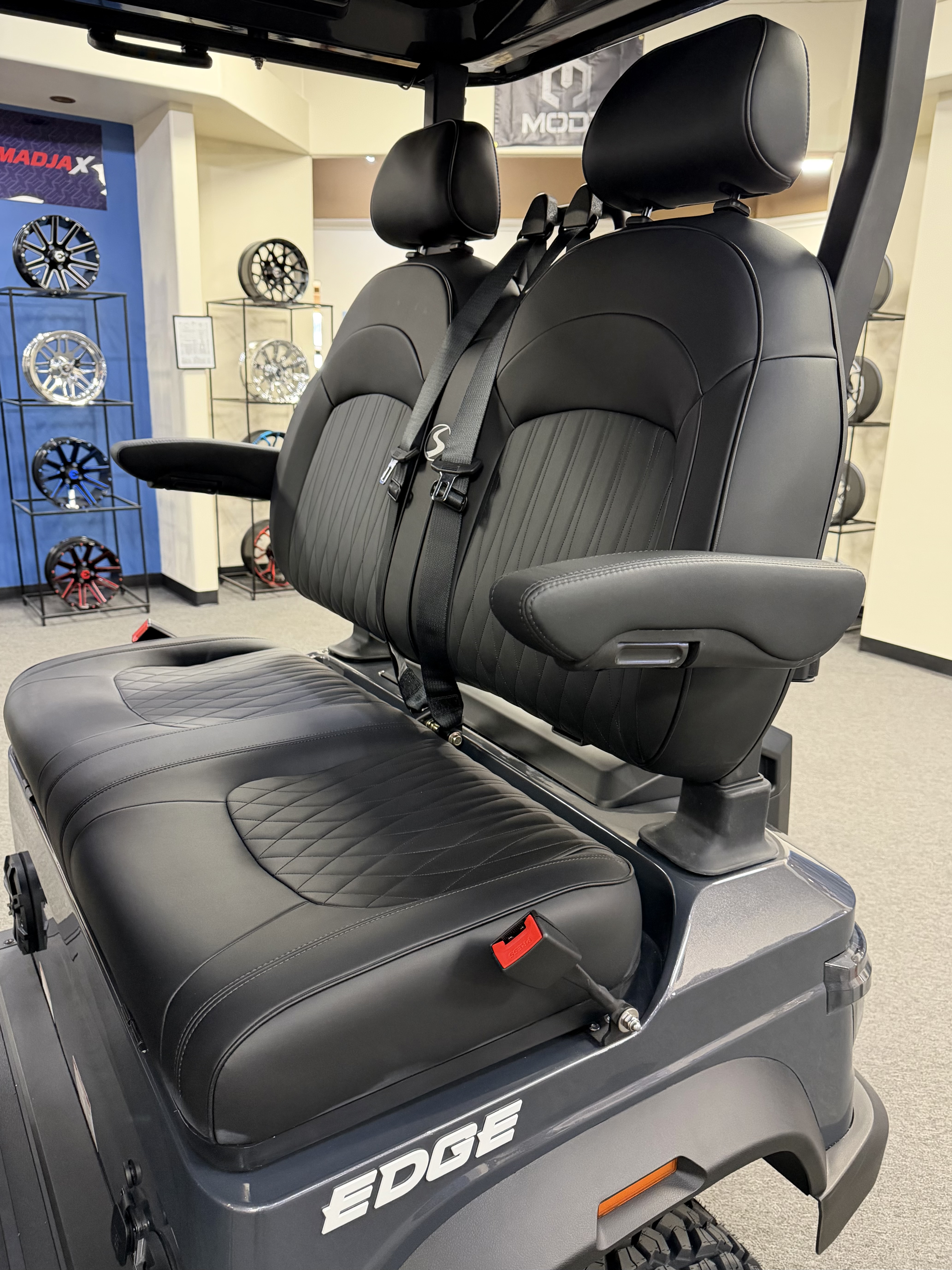 2026 EDGE 4FL, Eco Lithium Battery ( 10 Year Warranty ), 10.1” LCD Touch Screen, Apple Car Play, Android Play, Back Up Camera, LED Touch Screen, LED Roof Lights, LED Under Glow Lights, LED Speaker Lights, 3 Speed Cooling Fan System, Keyless/Push Button Start, Adjustable Steering Column, Self-Canceling Turn Signals, Front Trunk, Rear Truck/ With Built In Golf Bag Attachment, Adjustable Arm Rest, Custom 14 Inch Wheels.