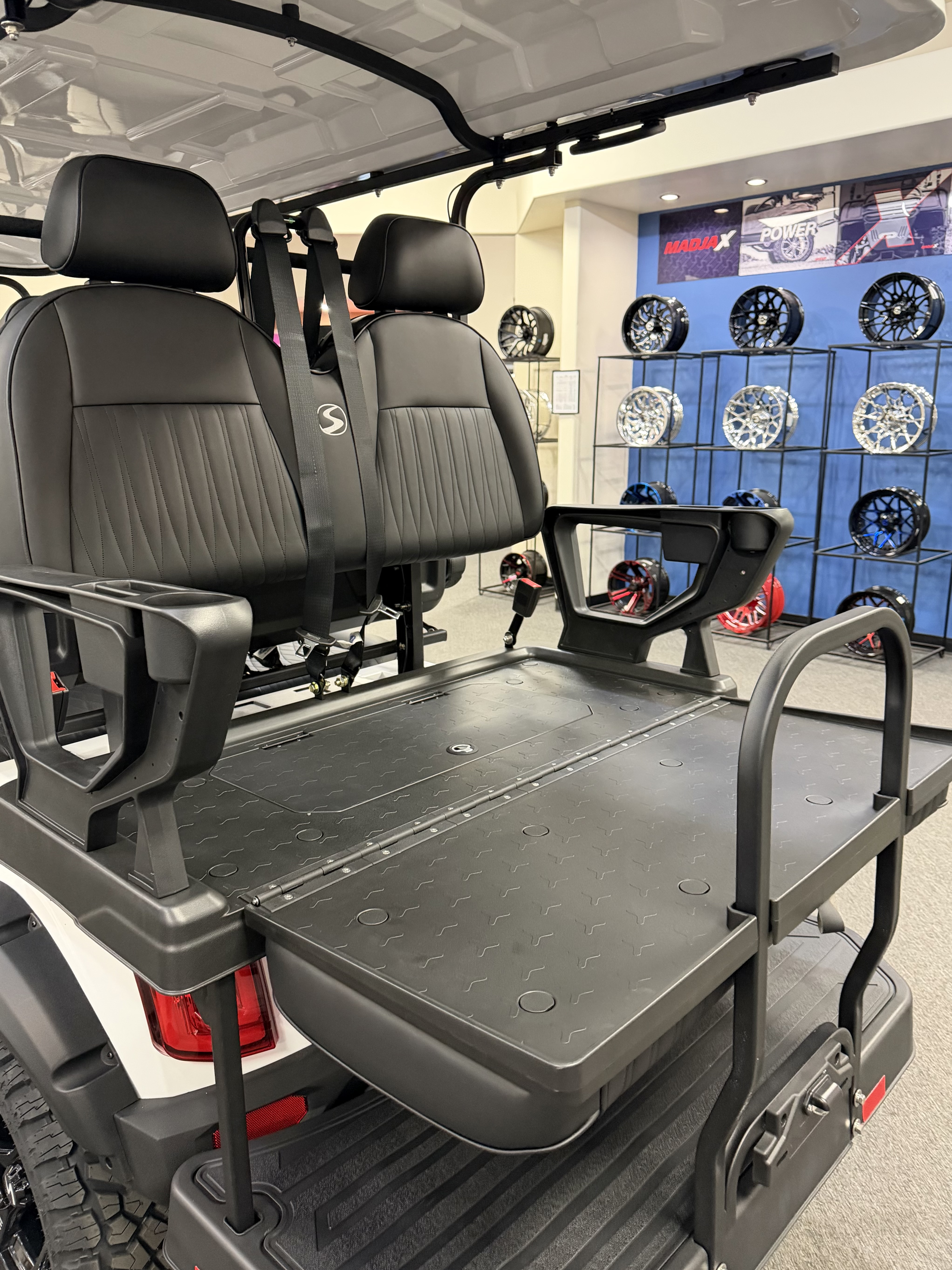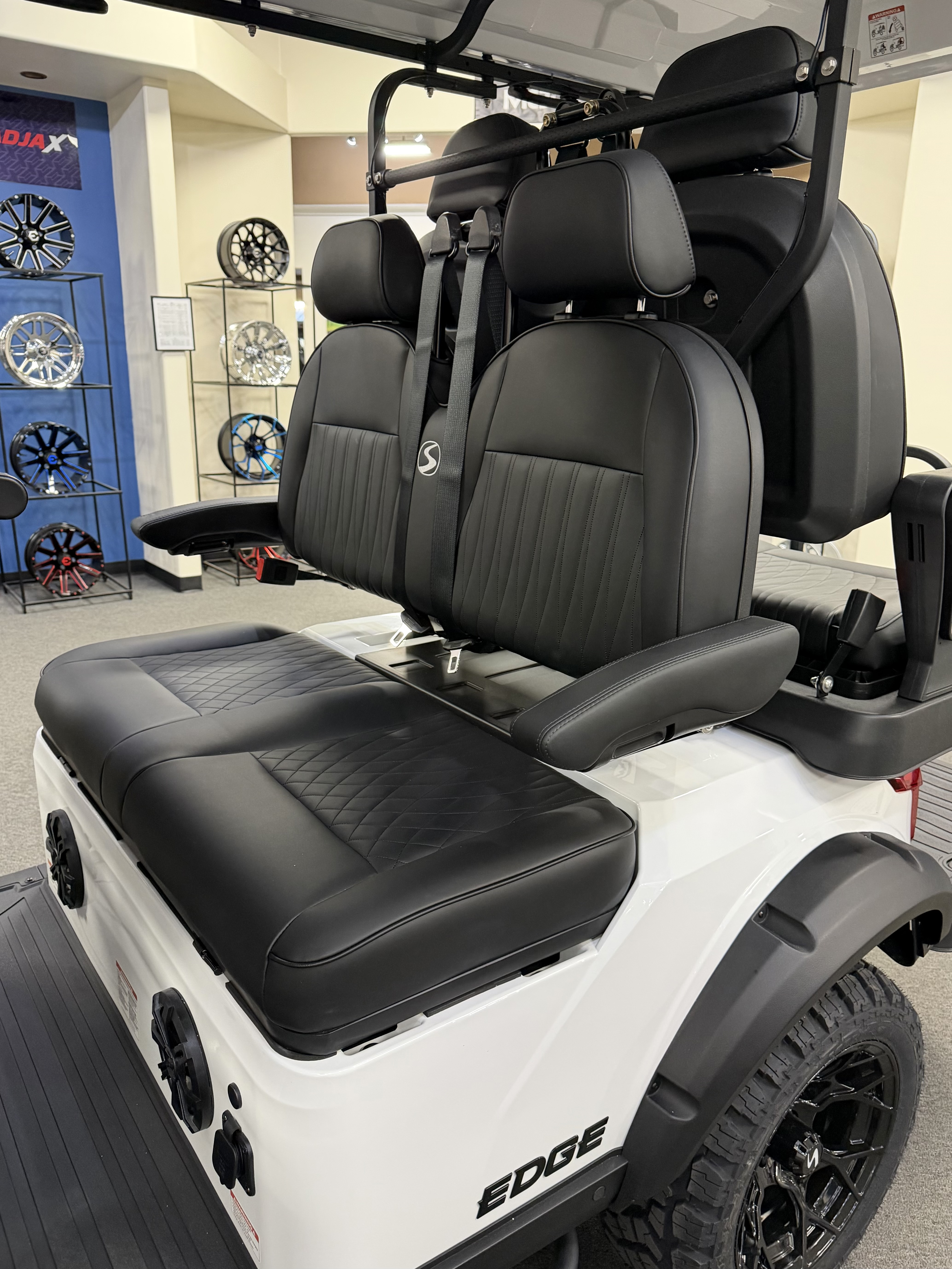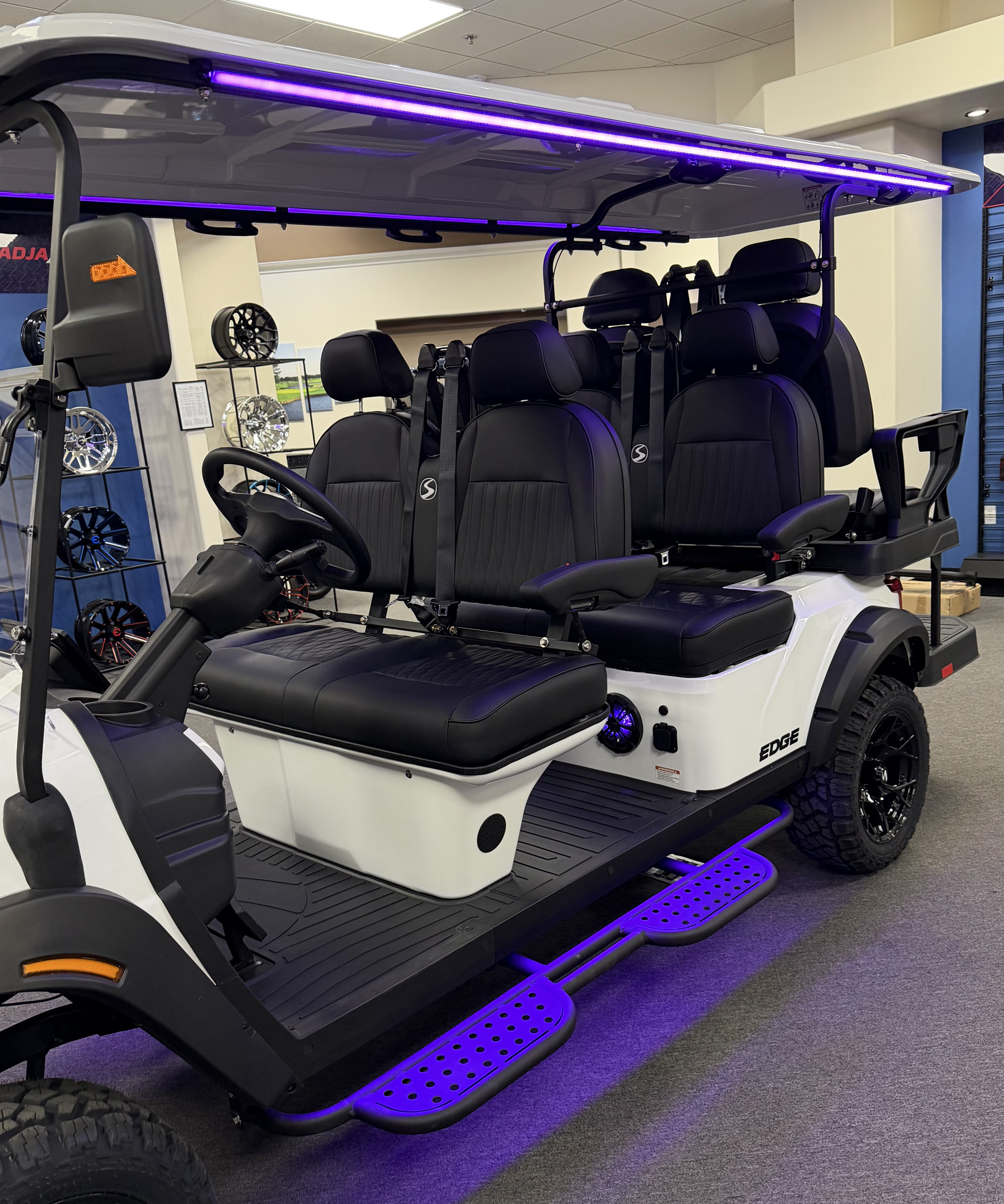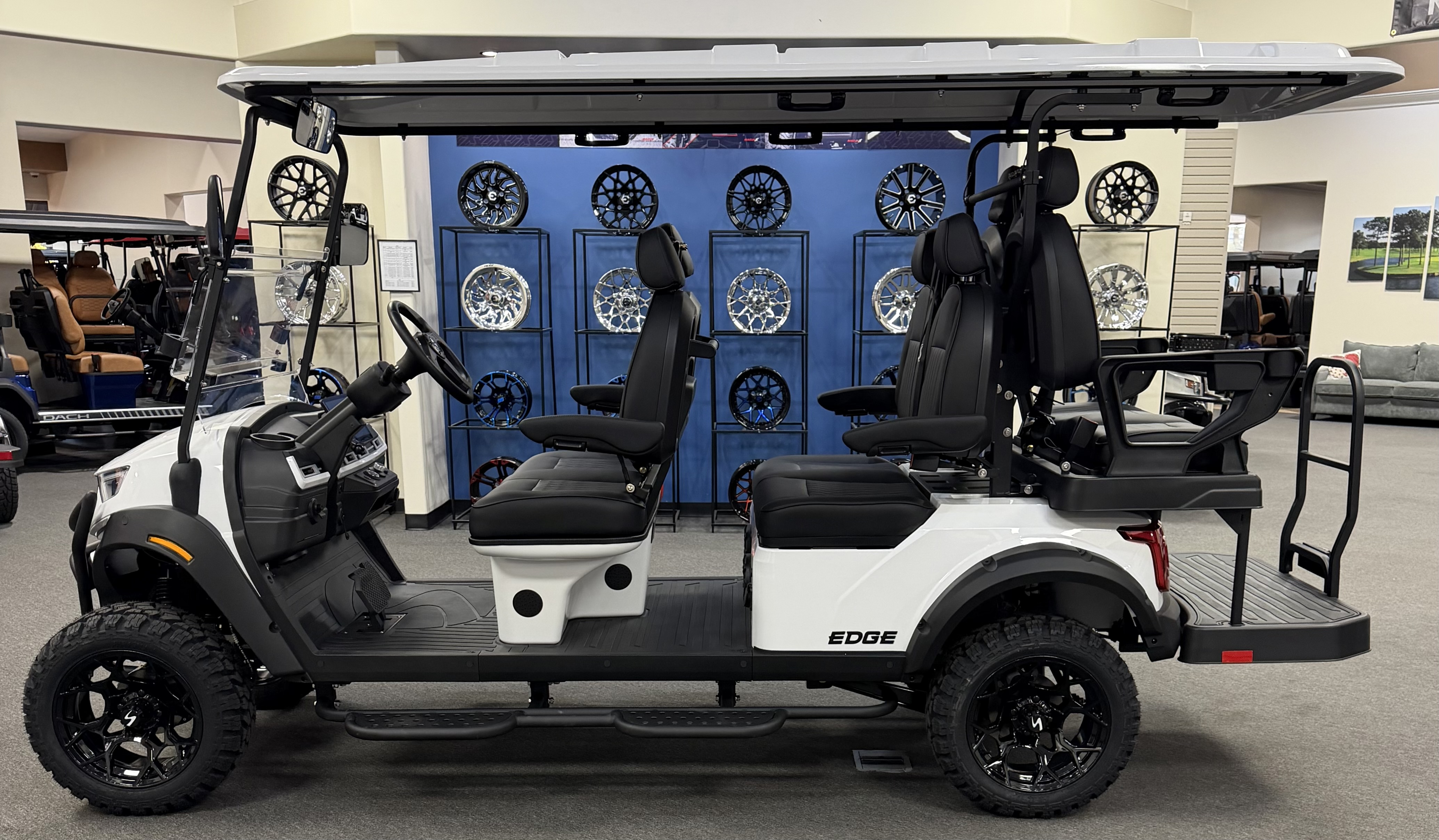 2026 EDGE 6L, Eco Lithium Battery ( 10 Year Warranty ), 10.1” LCD Touch Screen, Apple Car Play, Android Play, Back Up Camera, LED Touch Screen, LED Roof Lights, LED Under Glow Lights, LED Speaker Lights, 3 Speed Cooling Fan System, Keyless/Push Button Start, Adjustable Steering Column, Self-Canceling Turn Signals, Front Trunk, Flip down backseat w/built in cooler, Adjustable Arm Rest, Custom 14 Inch Wheels.