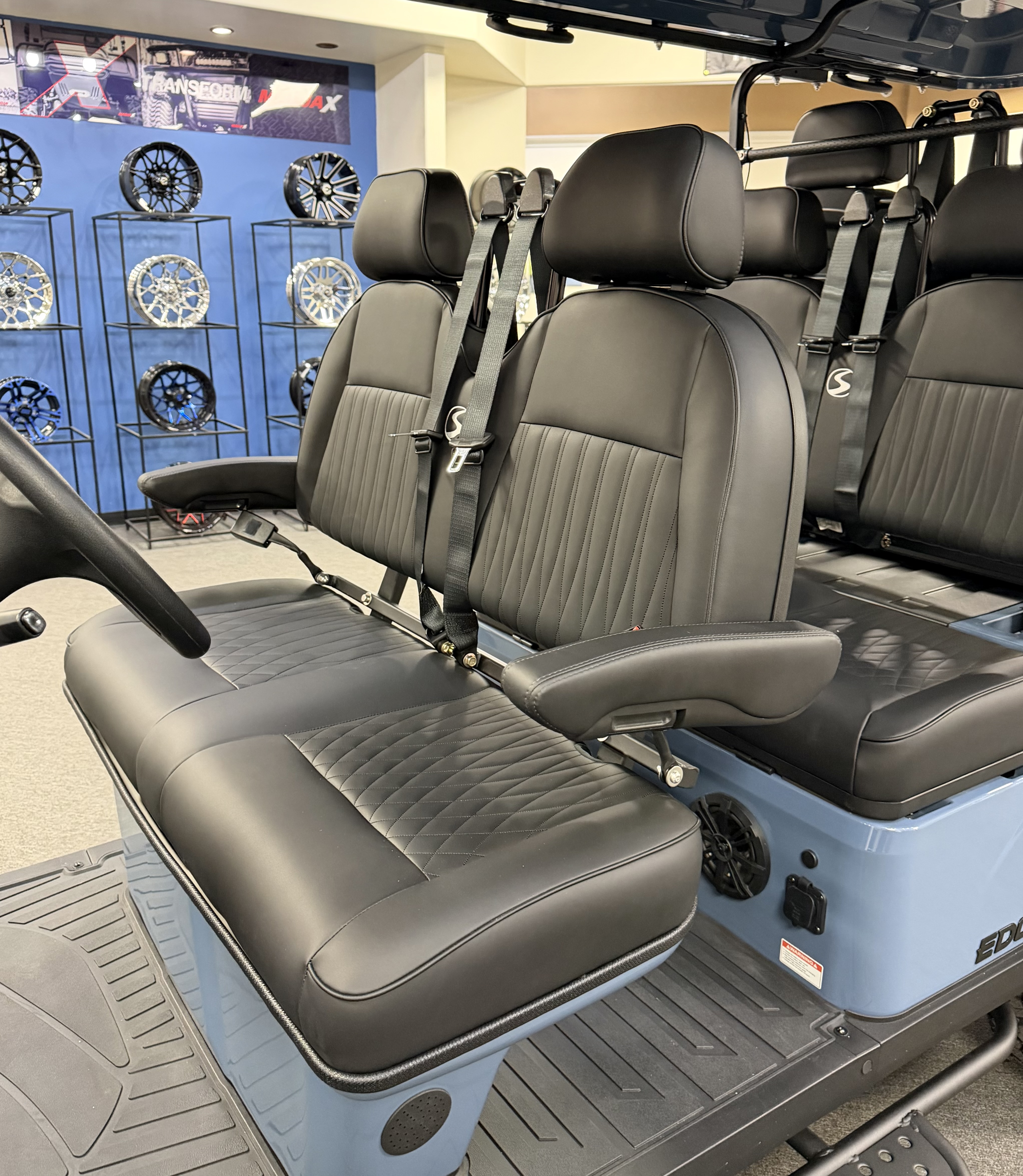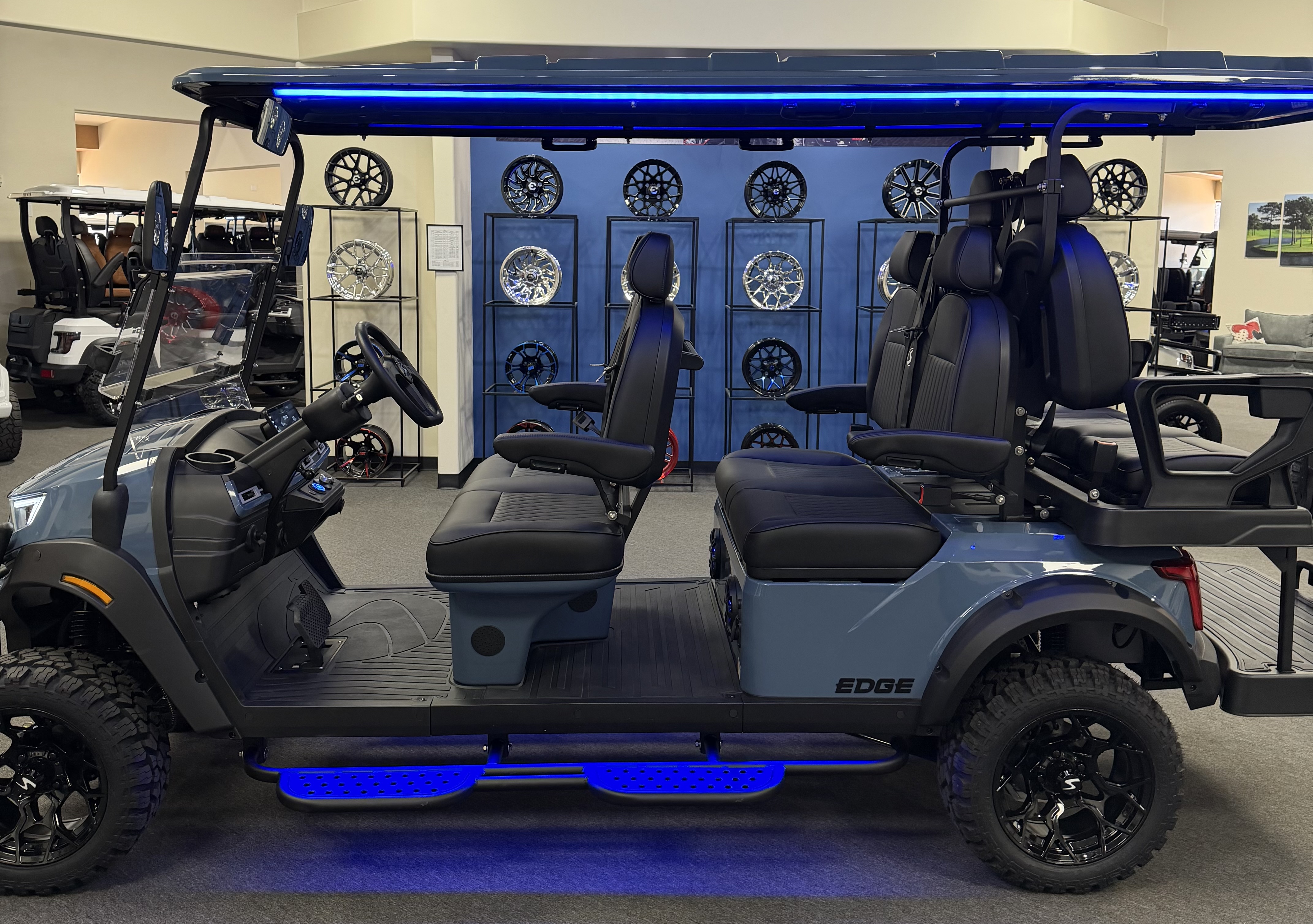 2026 EDGE 6L, Eco Lithium Battery ( 10 Year Warranty ), 10.1” LCD Touch Screen, Apple Car Play, Android Play, Back Up Camera, LED Touch Screen, LED Roof Lights, LED Under Glow Lights, LED Speaker Lights, 3 Speed Cooling Fan System, Keyless/Push Button Start, Adjustable Steering Column, Self-Canceling Turn Signals, Front Trunk, Flip down backseat w/built in cooler, Adjustable Arm Rest, Custom 14 Inch Wheels.