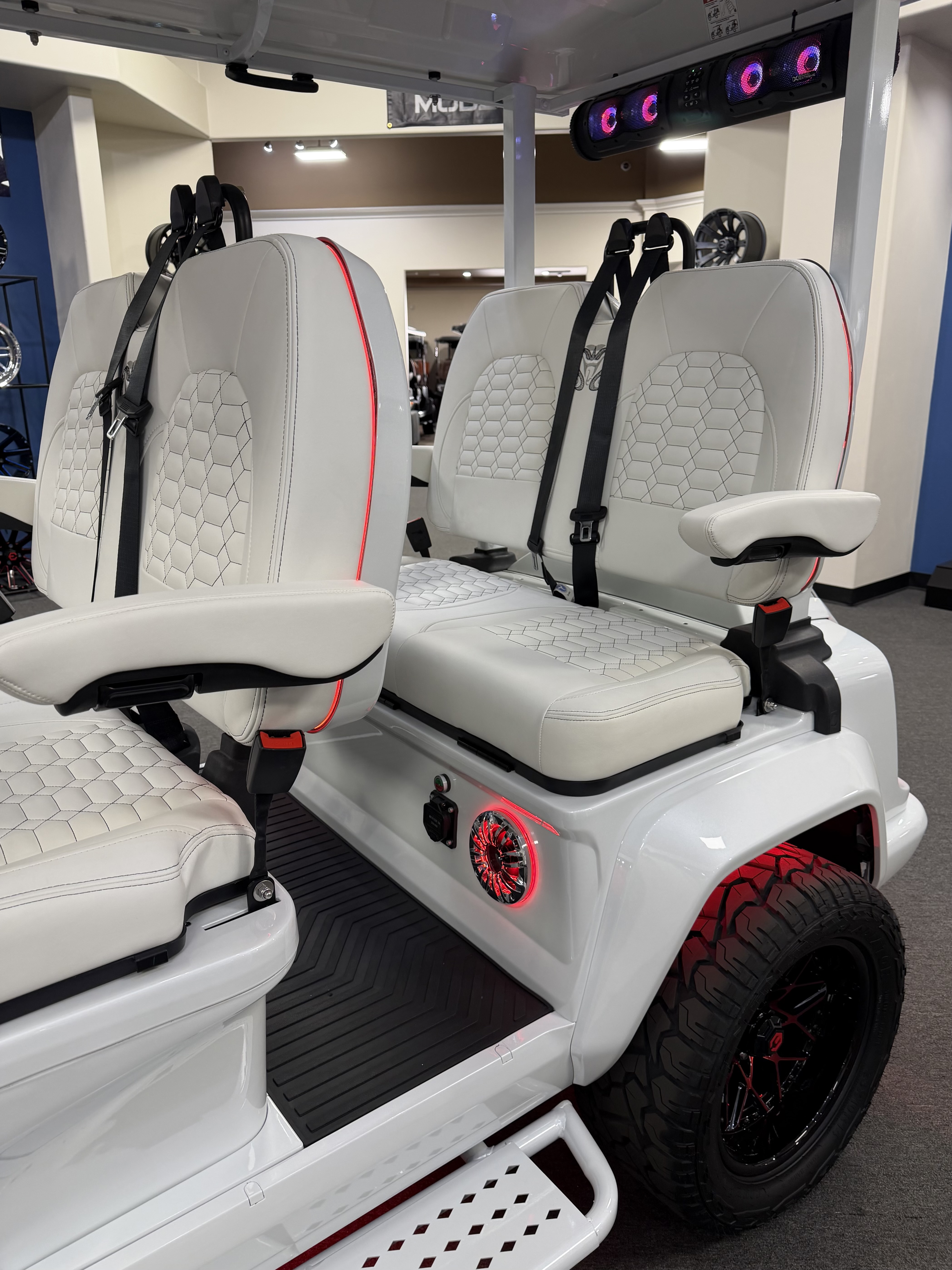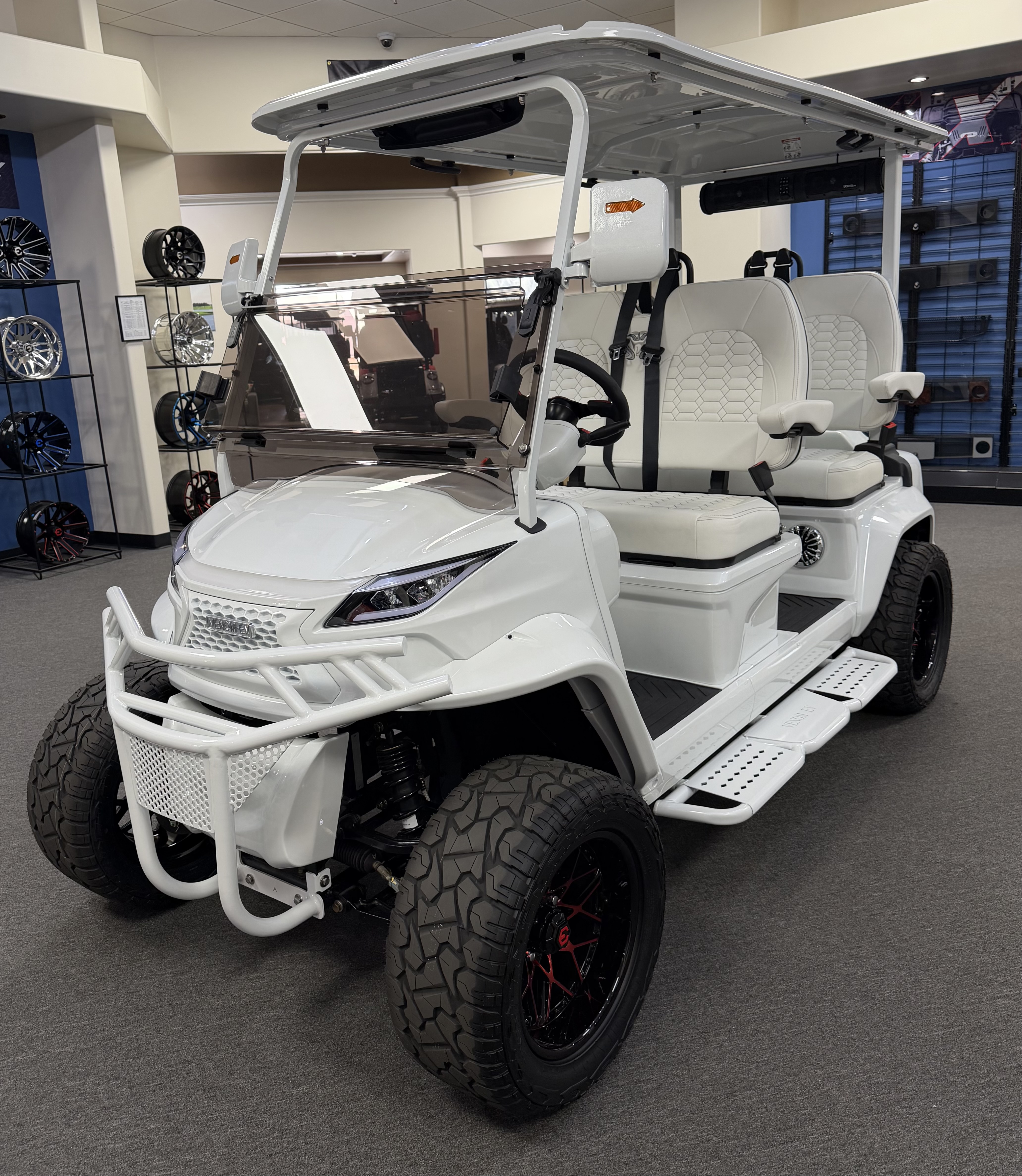 2026 Forward Facing 4 Seater Stealth Lifted, FULL CUSTOM PAINT JOB, Eco 51.2V /105Ah ECO Lithium Battery, 10.1” Digital Display w/Backup Camera, Apple CarPlay, Android, Bluetooth, Wireless Phone Charging, LED Seats and Underglow Lights, Push Button Start, Adjustable Tilt Sterring Wheel, Self Canceling Turn Signals, Locking  Cargo Compartment, USB Charger, Horn, Digital Gauges,, Built-in ECOXGear Marine Grade Sound System With Sound Bar, Upgraded 14" Wheels With Xcomp Tires.  Financing Available.