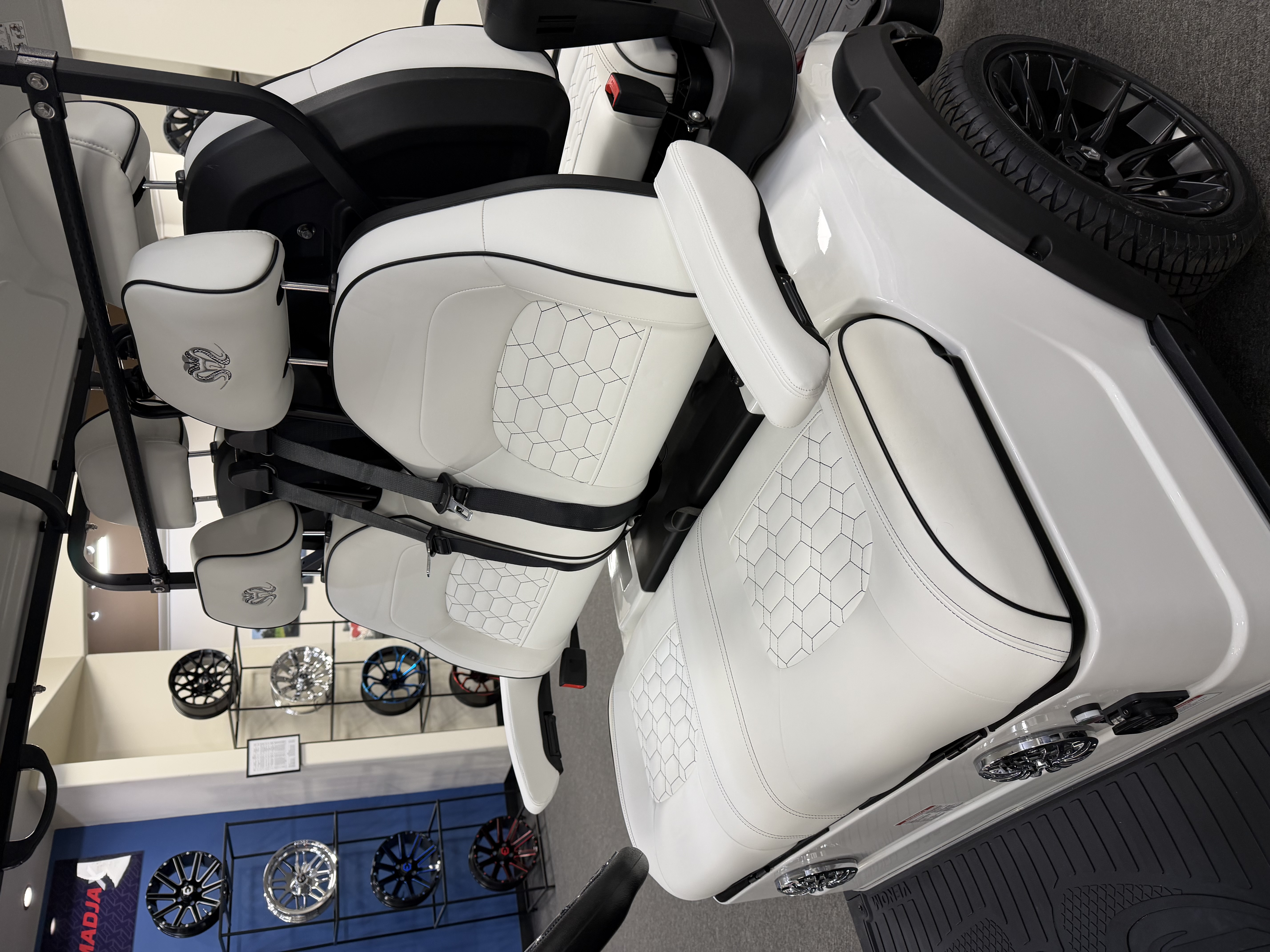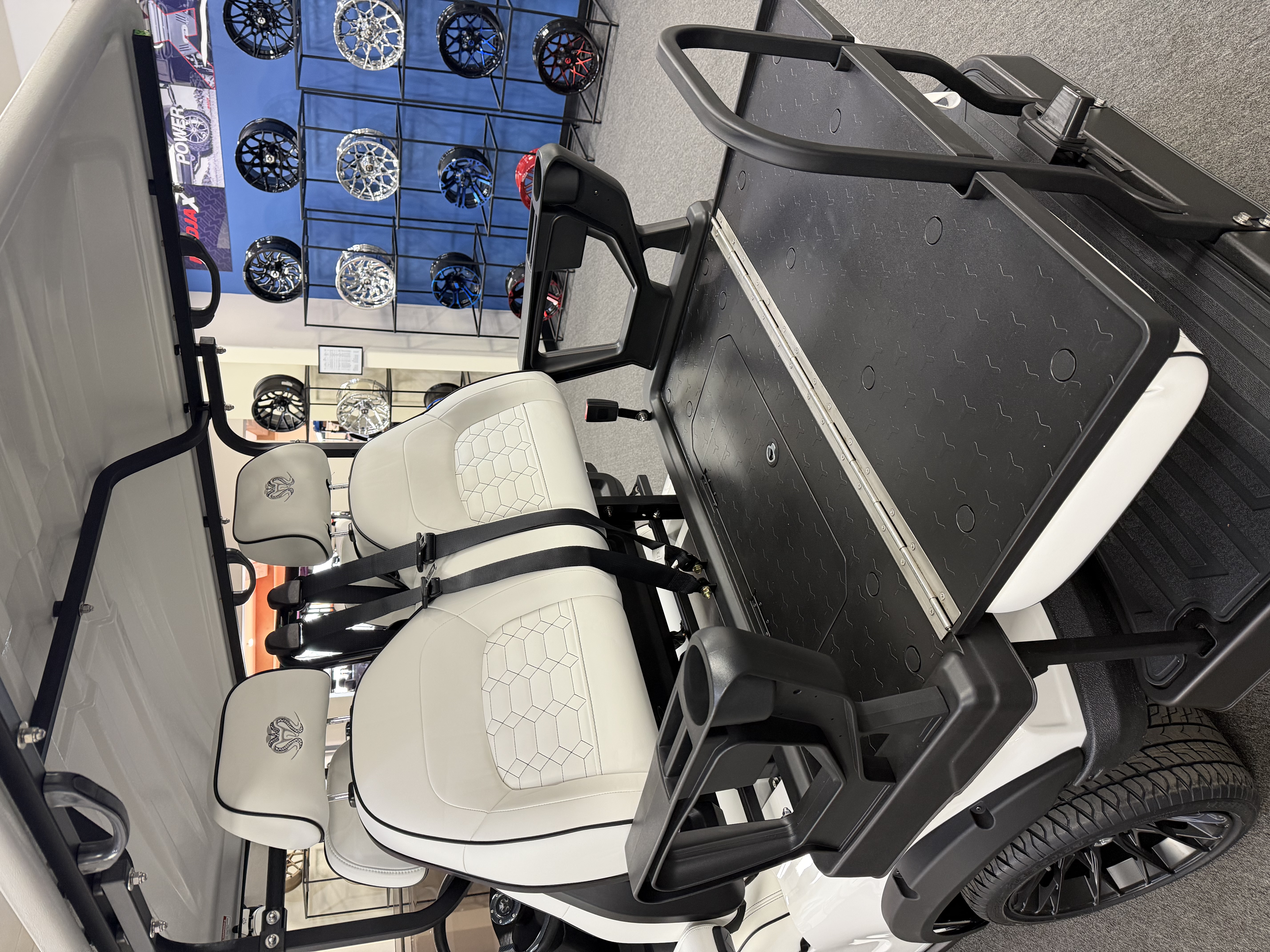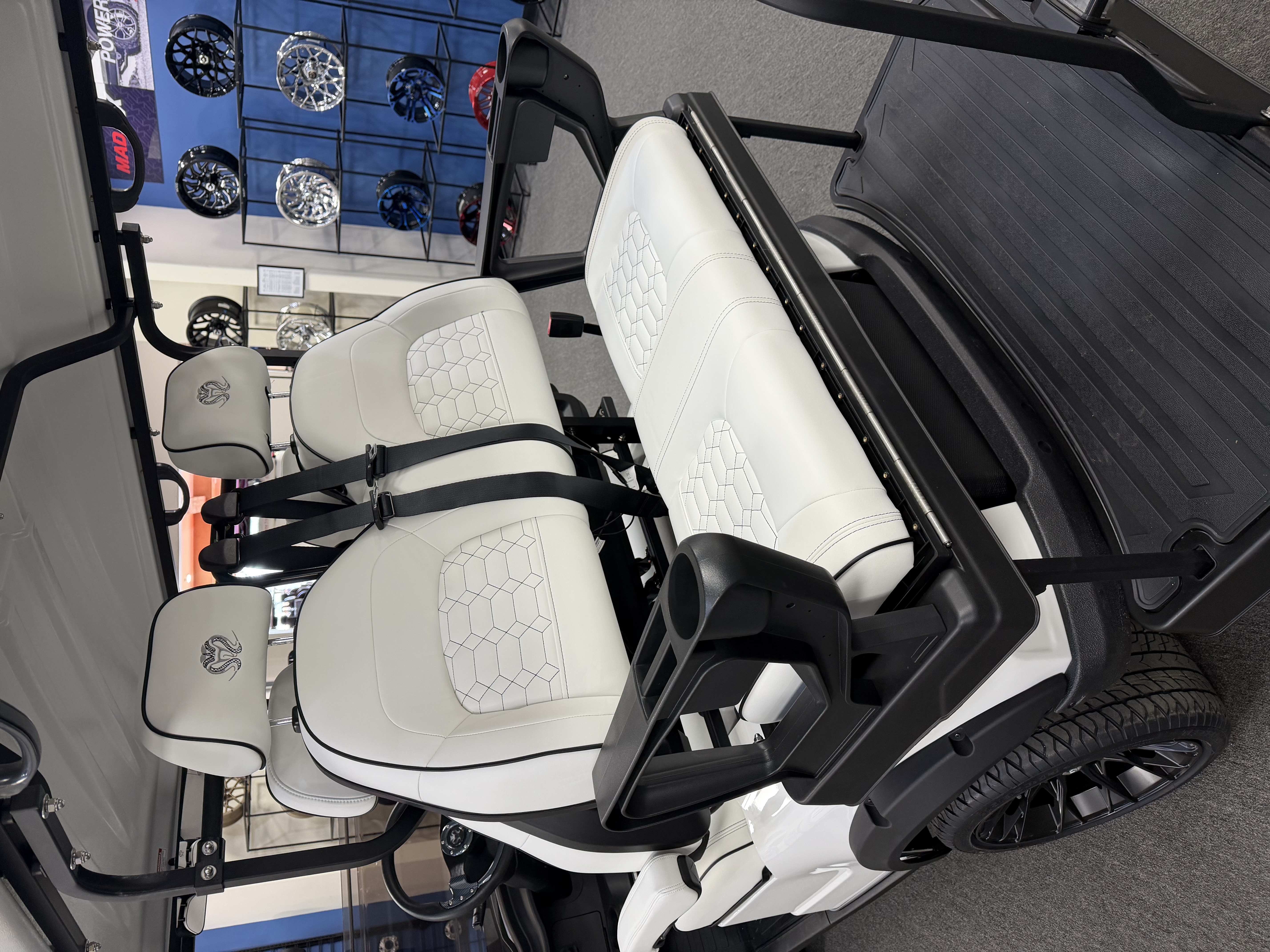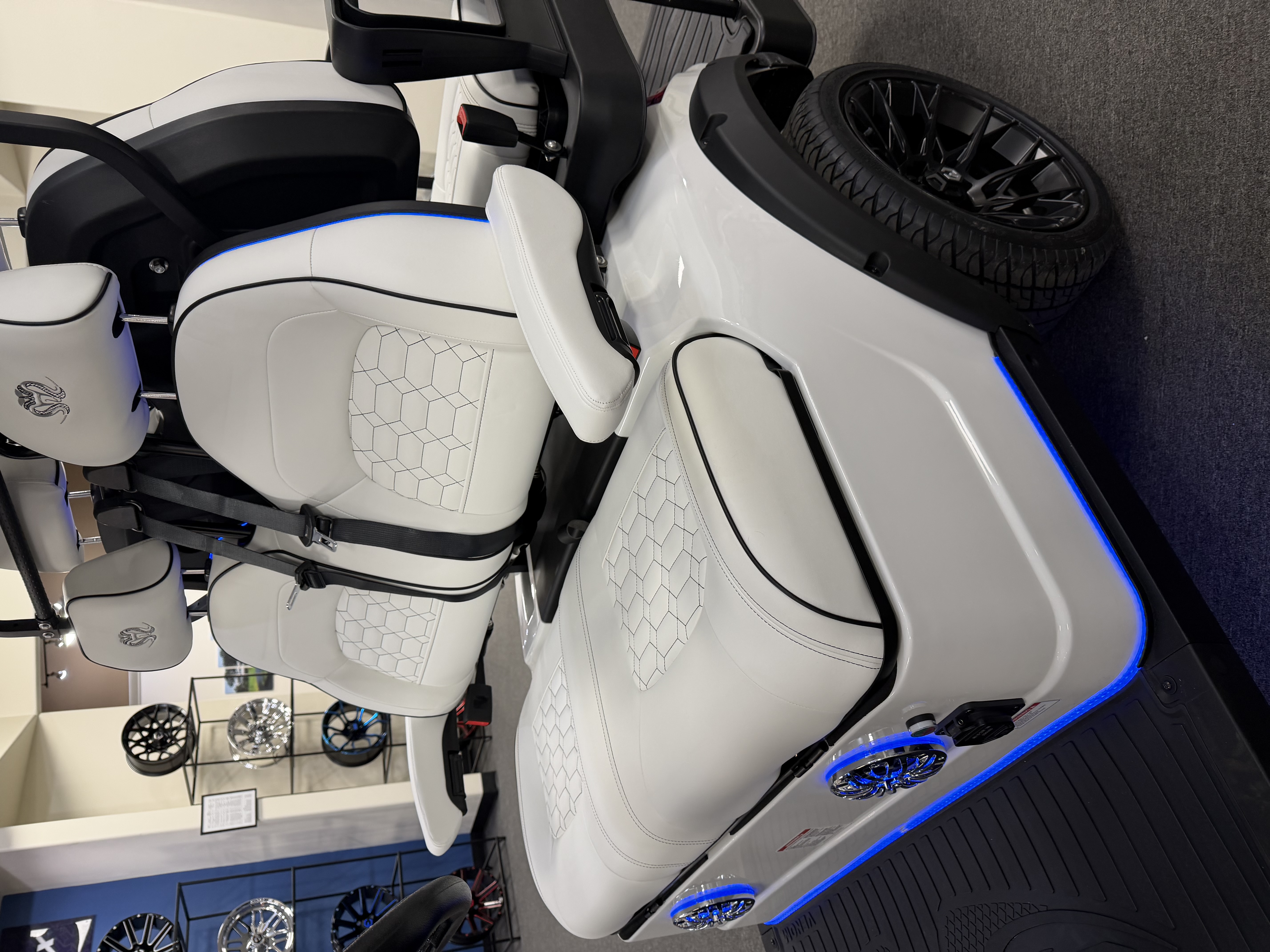 2026 Venom Strike 4, Eco Battery Lithium, Upgraded Custom White Seats, 10” Touchscreen Display with Automatic Backup Camera, Apple/Android Car Play, Wireless Phone Charger, Premium Bluetooth Speaker System, Premium Captain’s Chairs, Voice Controlled Ambient LED Lights, LED Headlights, LED Turn Signal Mirrors, Adjustable Arm Rests, Unique Keys, and Much More. We Also Have a Full Line of Accessory Upgrades Along with Financing Available.