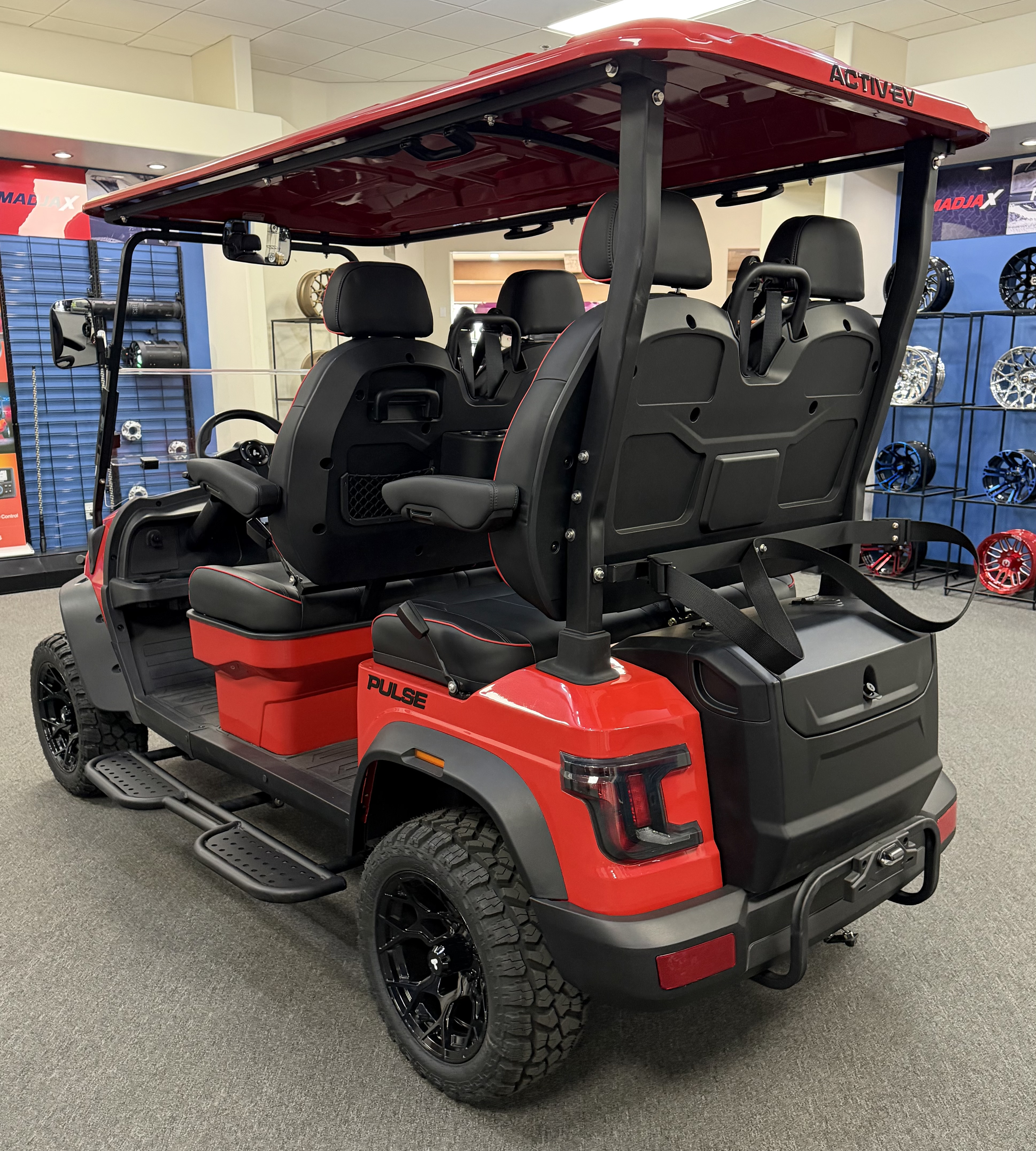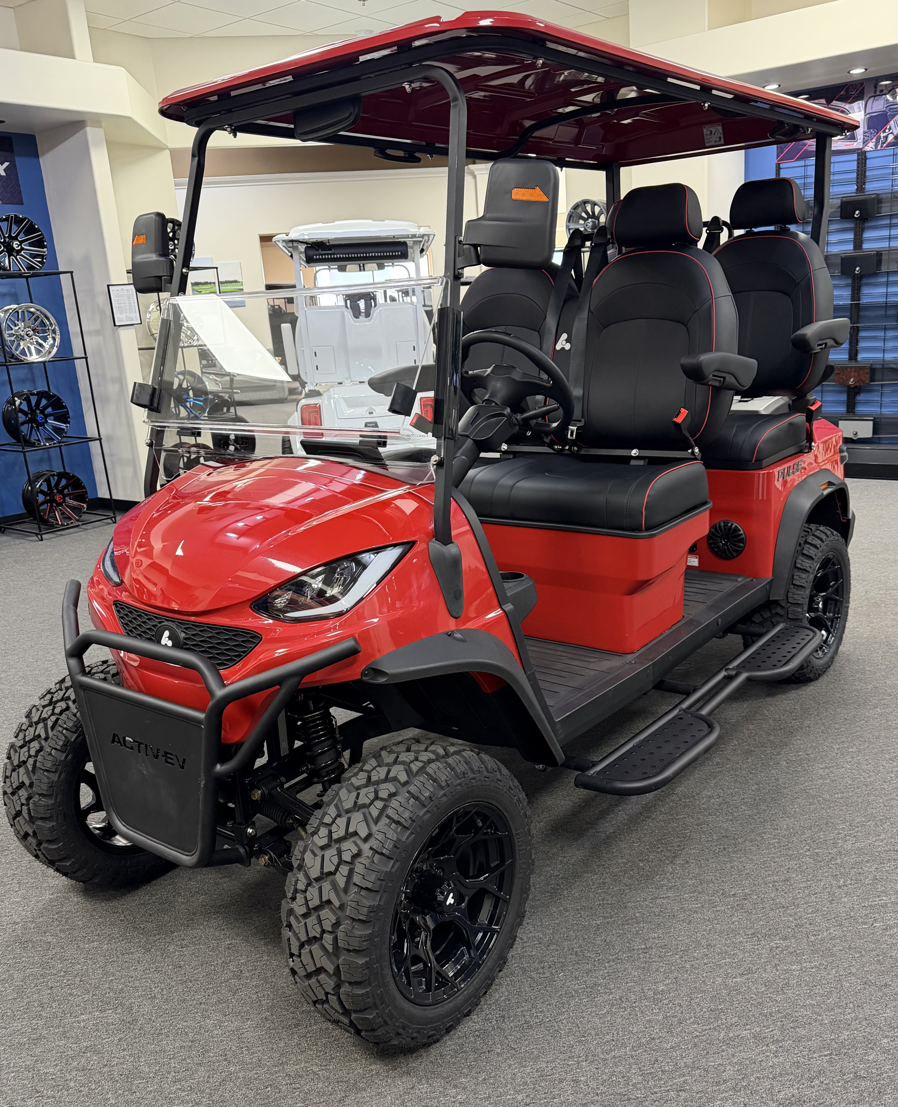ActiveEV 4PFL 2026 ActivEV Pulse 4PFL, Lifted, Eco Battery Lithium, 10.1” LCD Touch Screen, Apple Car Play, Android Play, Back Up Camera, Wireless Phone Charger, Sound System, Premium Captain’s Chairs, LED Head Lights, LED Turn Signal Mirrors, Adjustable Arm Rest, Unique Keys, Built In Golf Bag Attachment, Rear Storage Box, Running Boards, and Much More. We Also Have a Full Line of Accessory Upgrades Along with Financing Available.