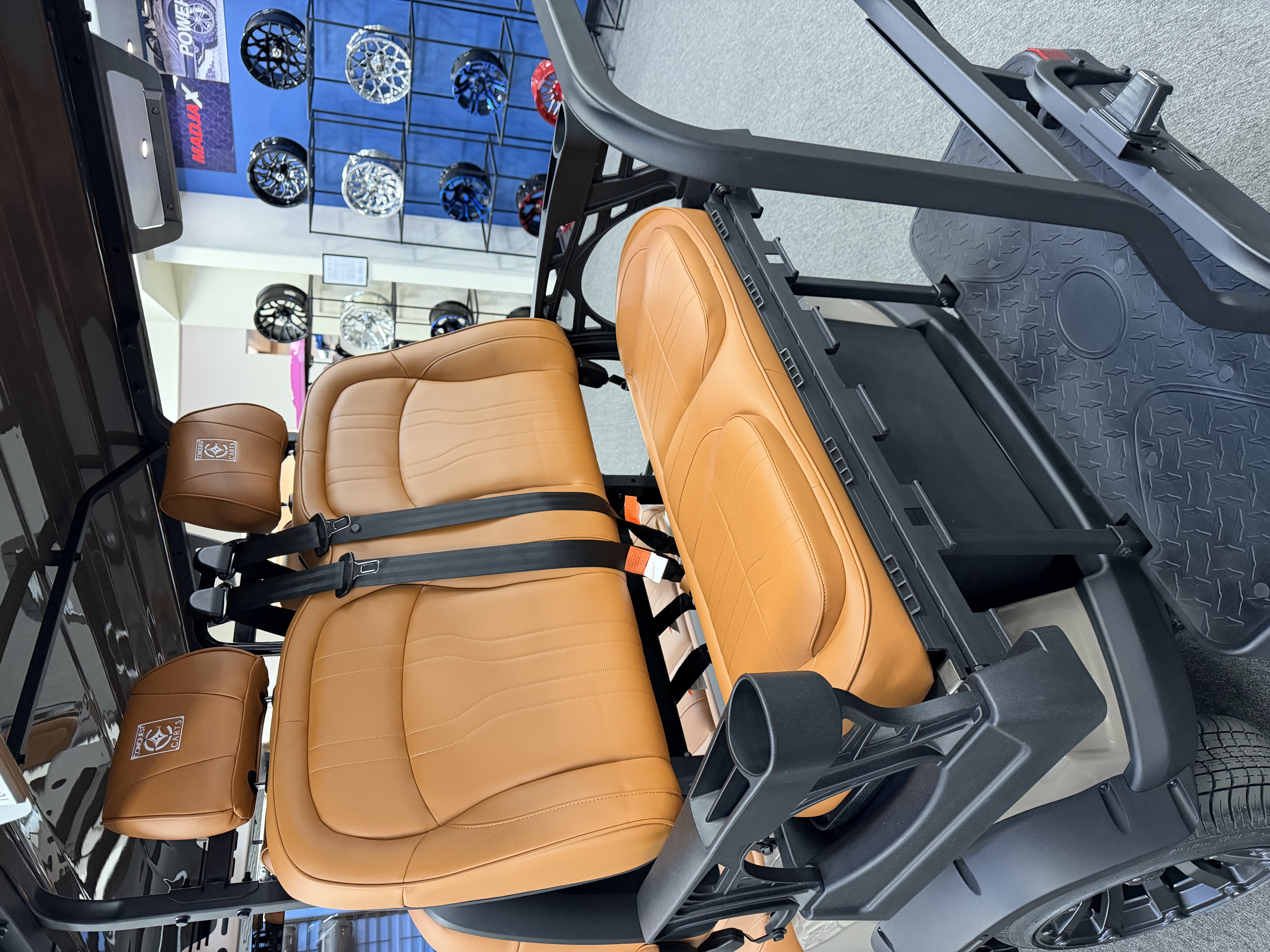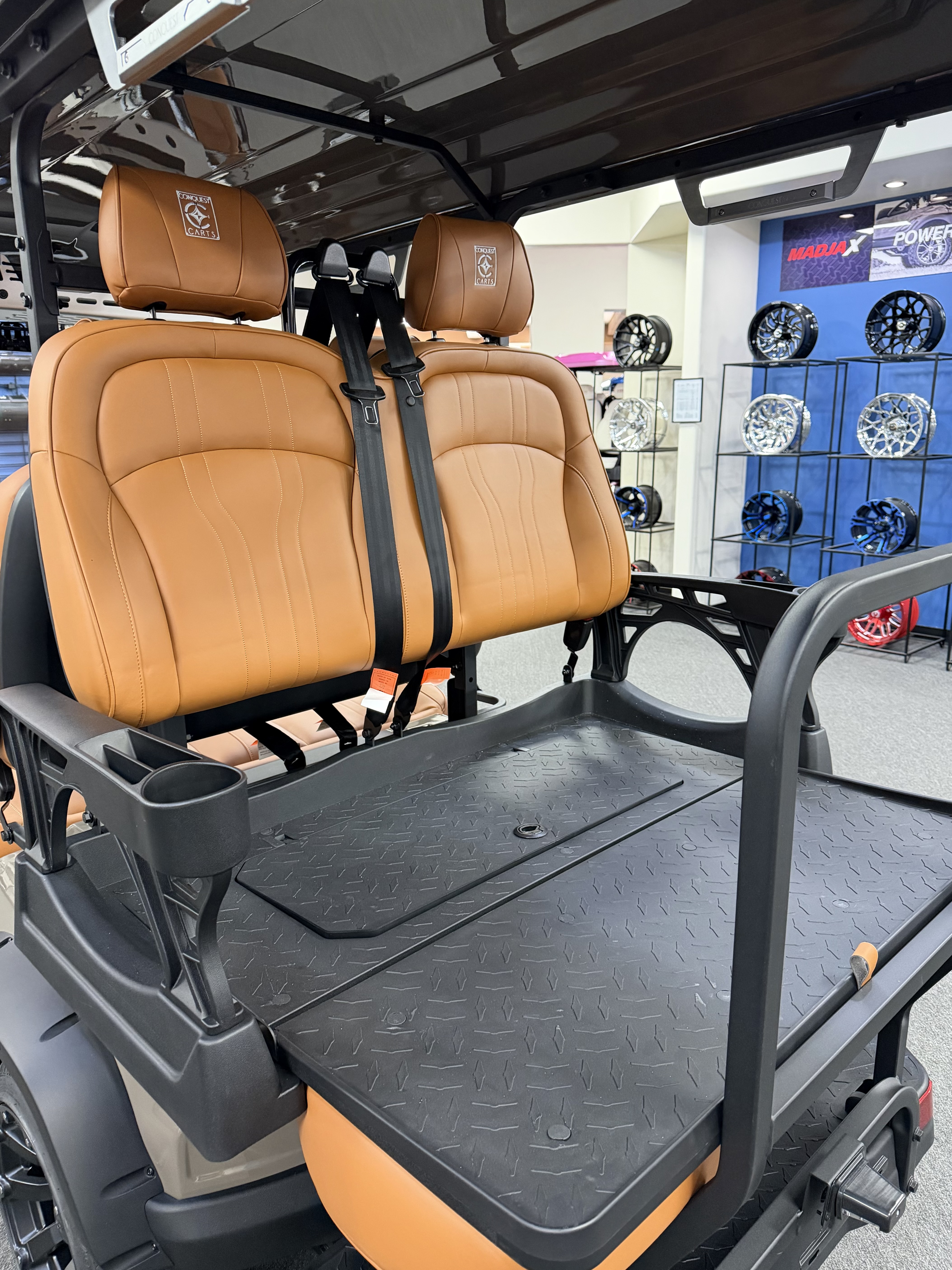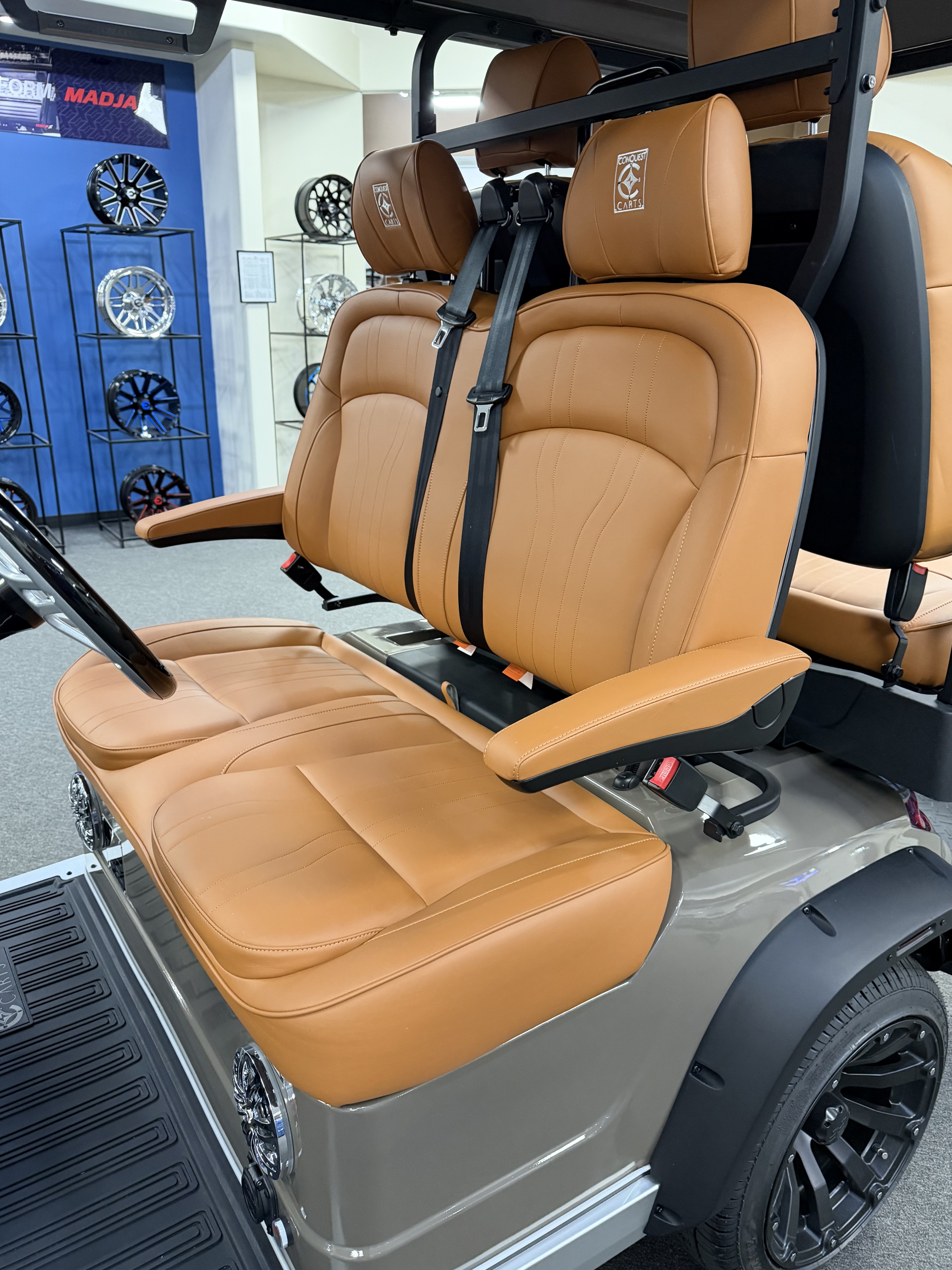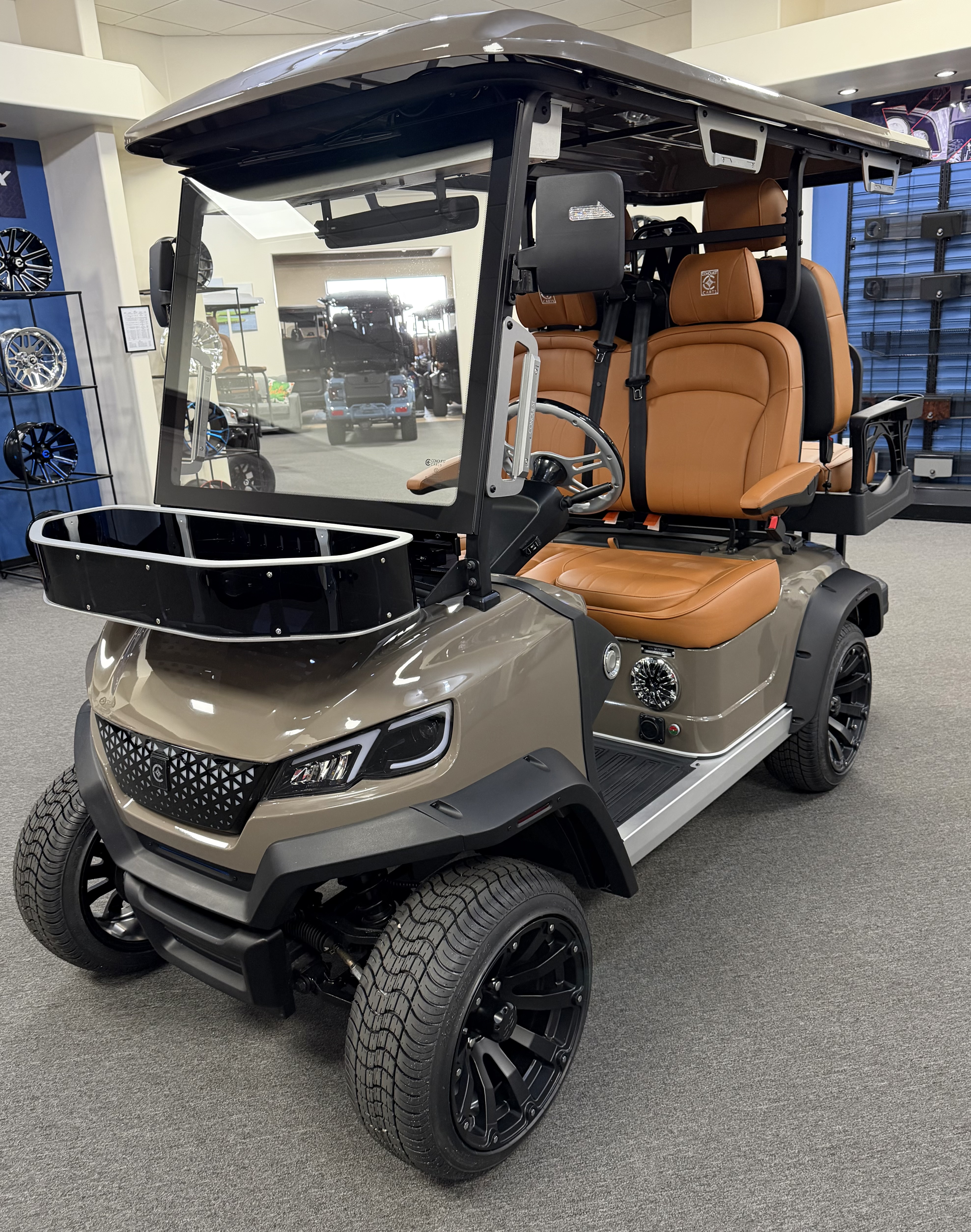 2026 Conquest S40, Lithium Battery ( 5 Year Full Replacement ), 10” Rotating Entertainment Touch Screen, Backup Camera, Apple/Android Carplay, Wireless Phone Charging, LED Side Mirrors, 4 Mount Speakers with Subwoofer, Keyless/Push Button Start, Heated Front Seats, Front Basket, Voice Controlled Ambient Lights, Electric Power Adjustable Steering Wheel, Adjustable Arm Rest, In-dash Umbrella Holder, Custom 14” Wheels.