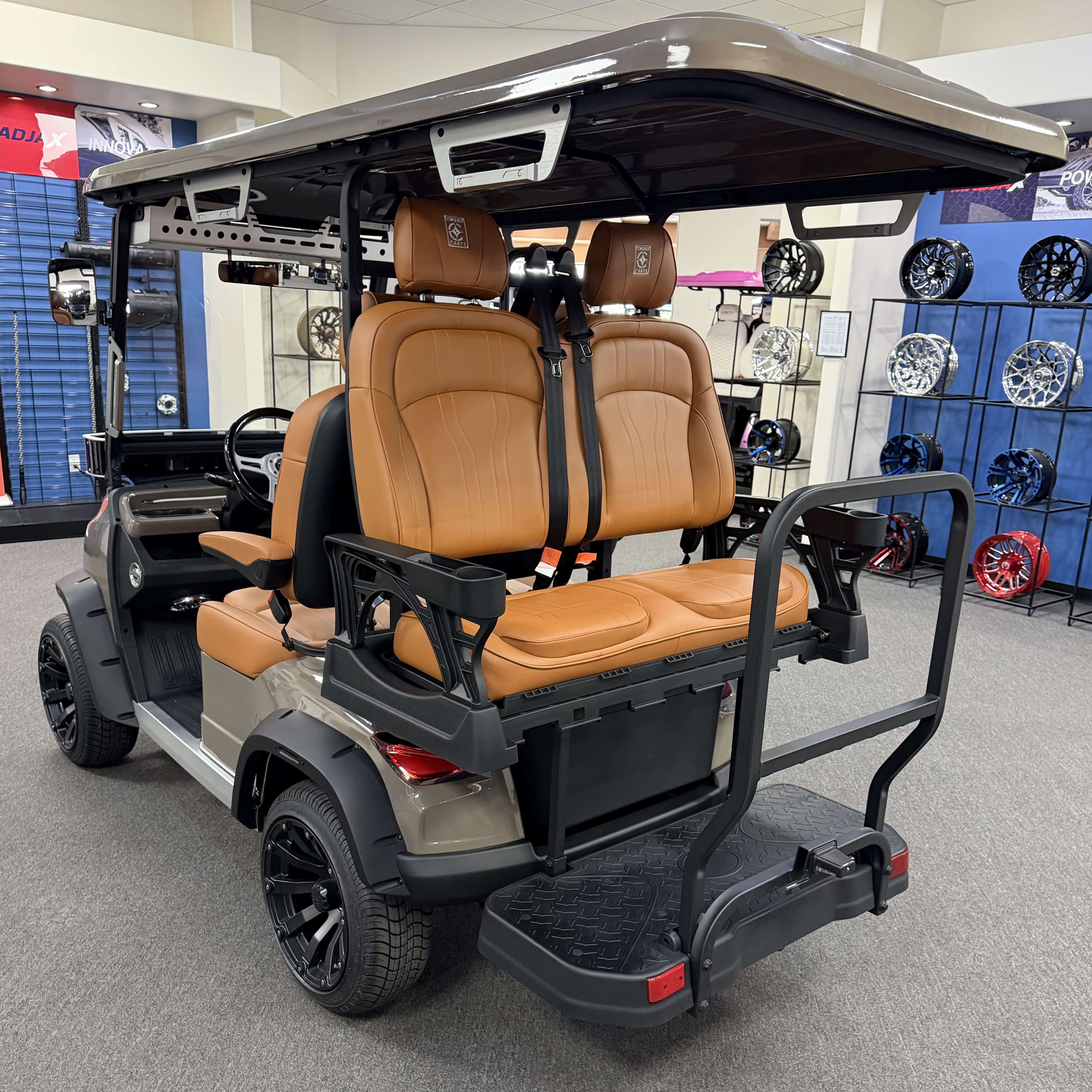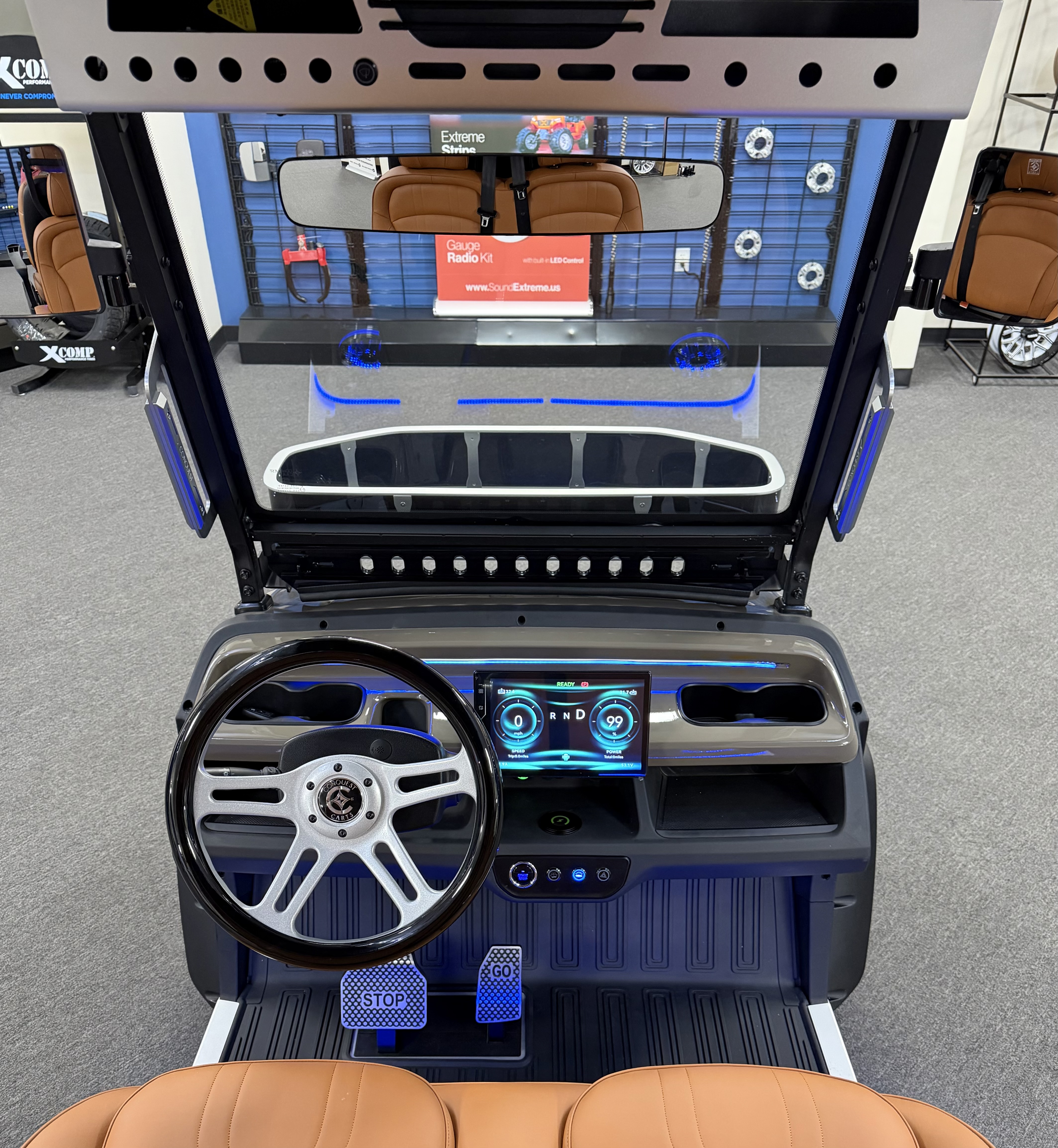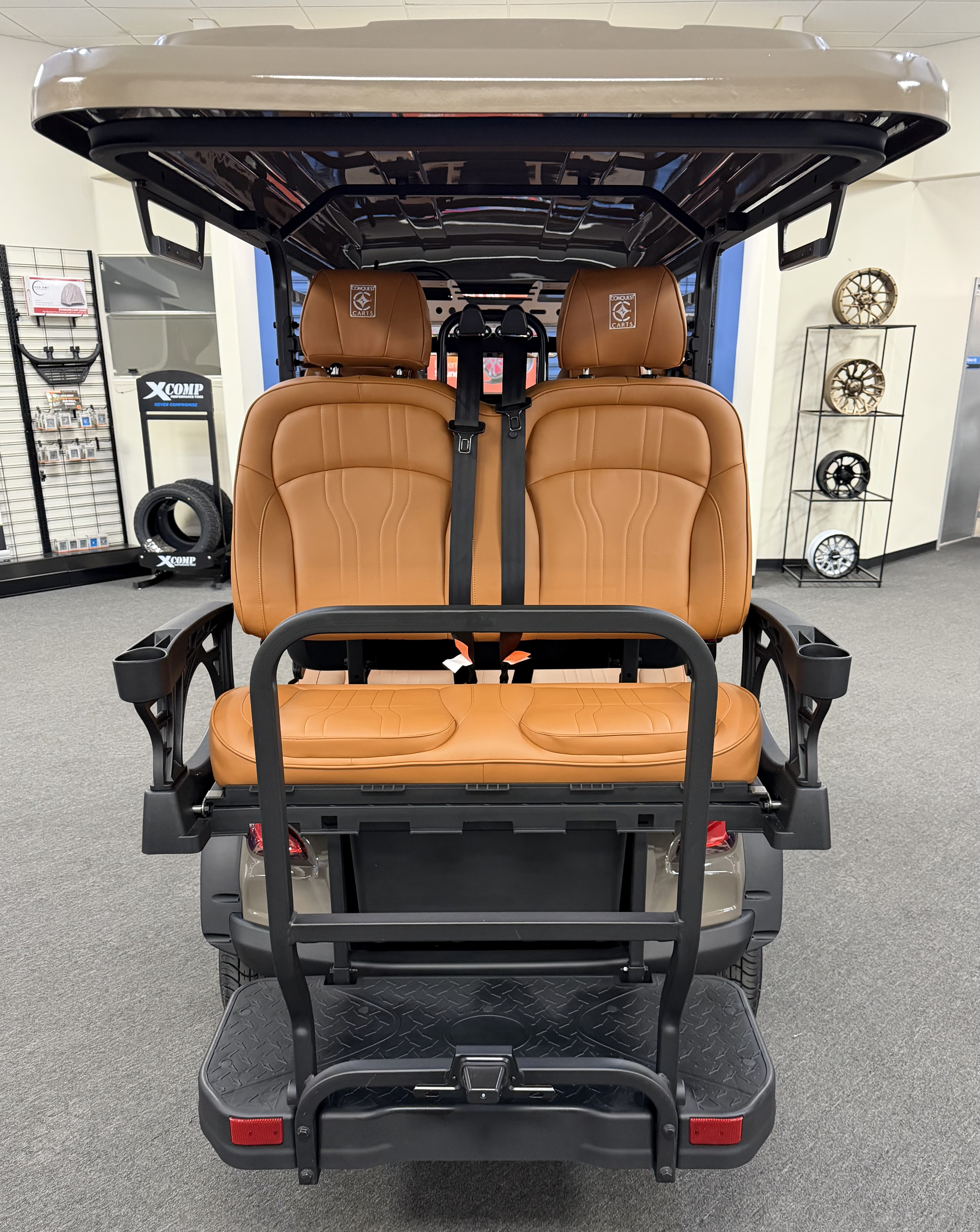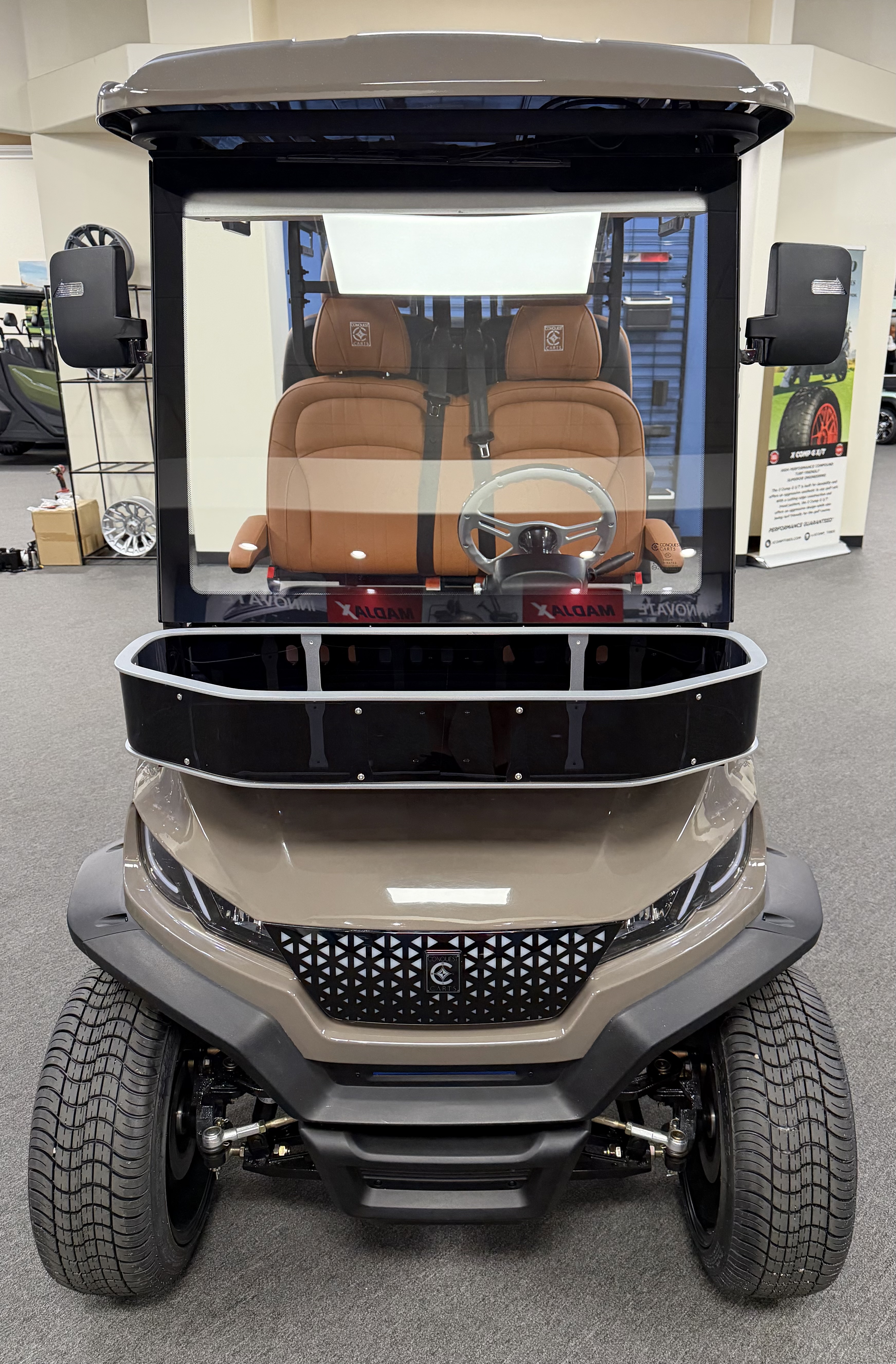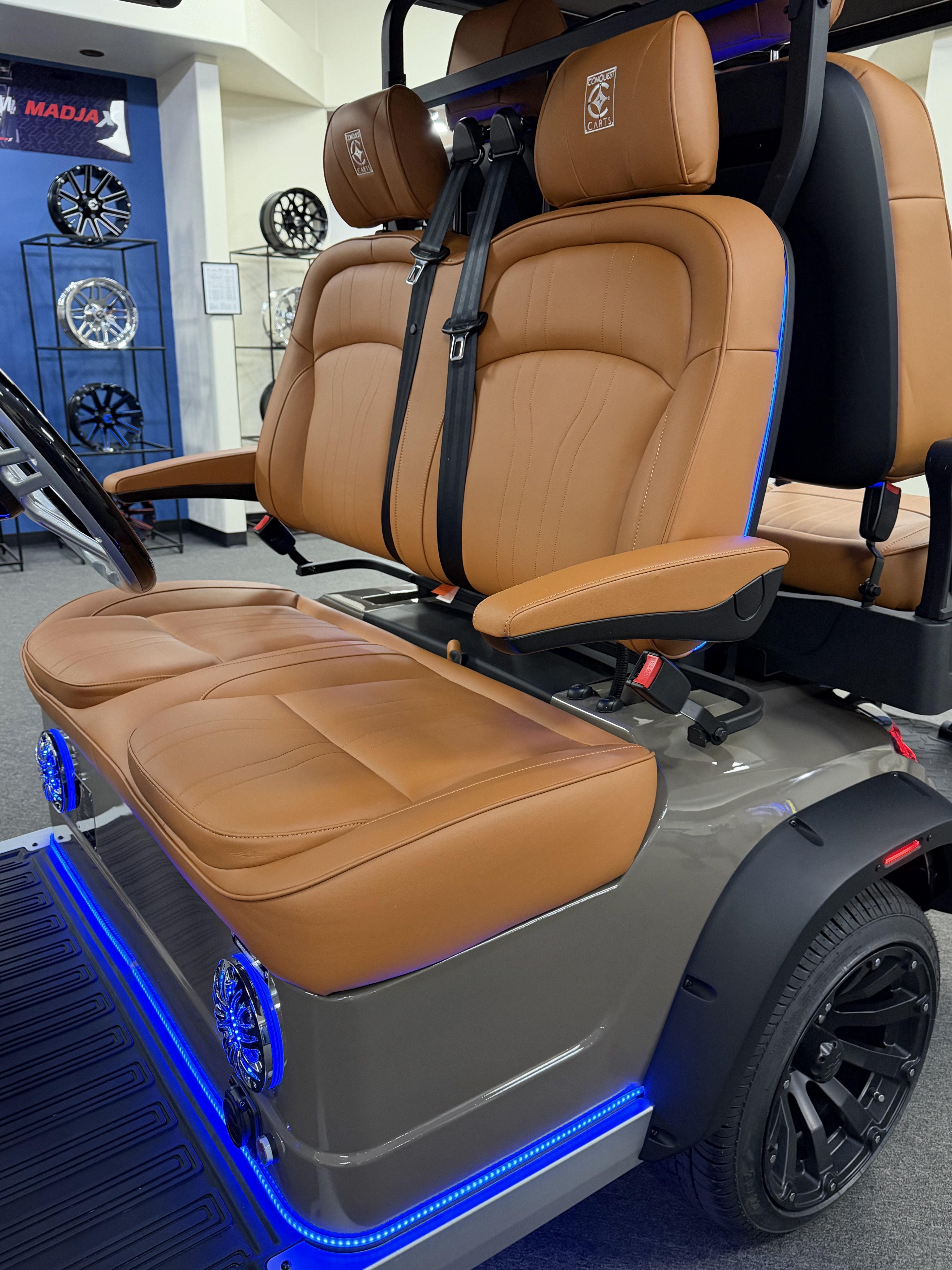 2026 Conquest S40, Lithium Battery ( 5 Year Full Replacement ), 10” Rotating Entertainment Touch Screen, Backup Camera, Apple/Android Carplay, Wireless Phone Charging, LED Side Mirrors, 4 Mount Speakers with Subwoofer, Keyless/Push Button Start, Heated Front Seats, Front Basket, Voice Controlled Ambient Lights, Electric Power Adjustable Steering Wheel, Adjustable Arm Rest, In-dash Umbrella Holder, Custom 14” Wheels.