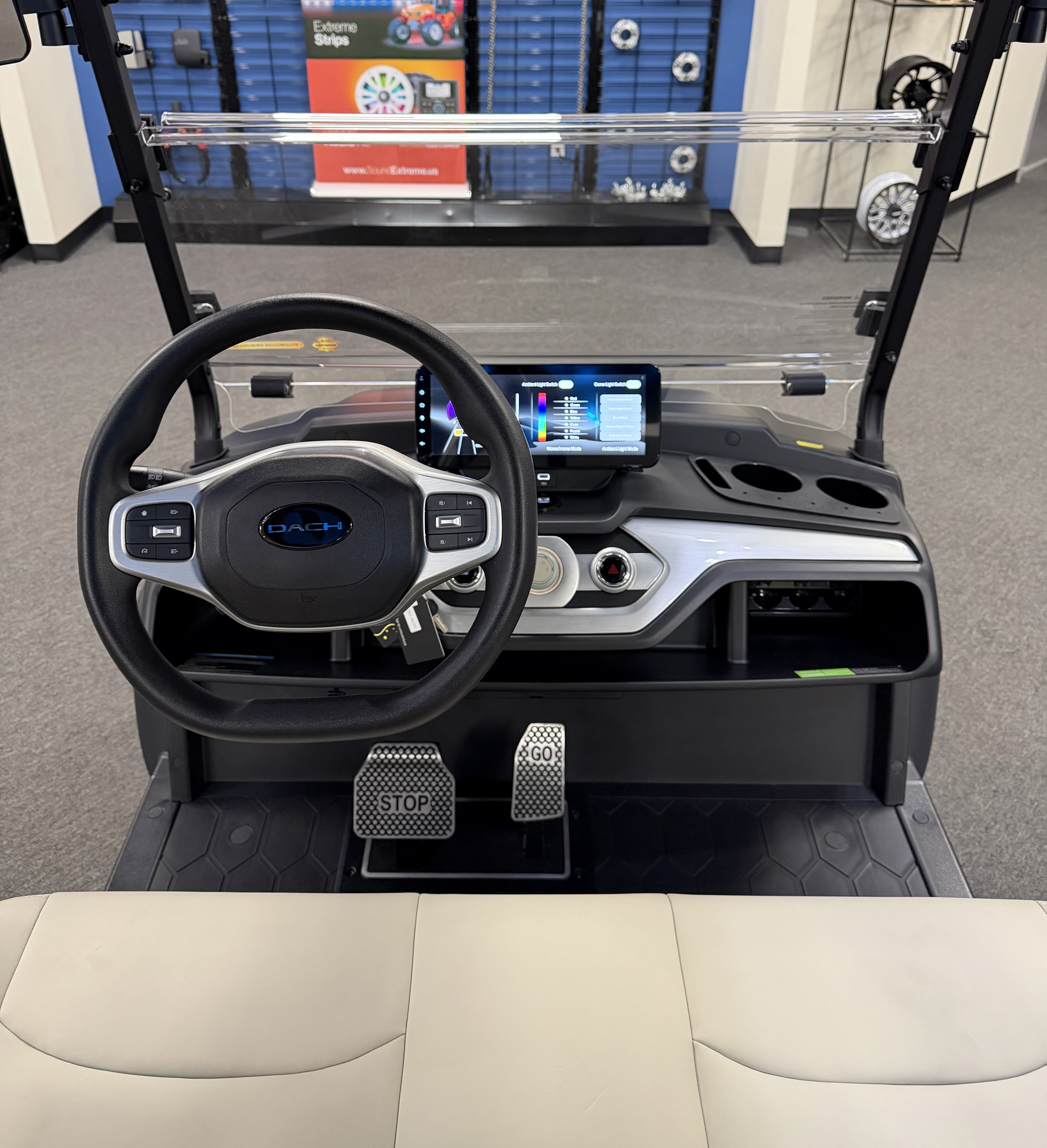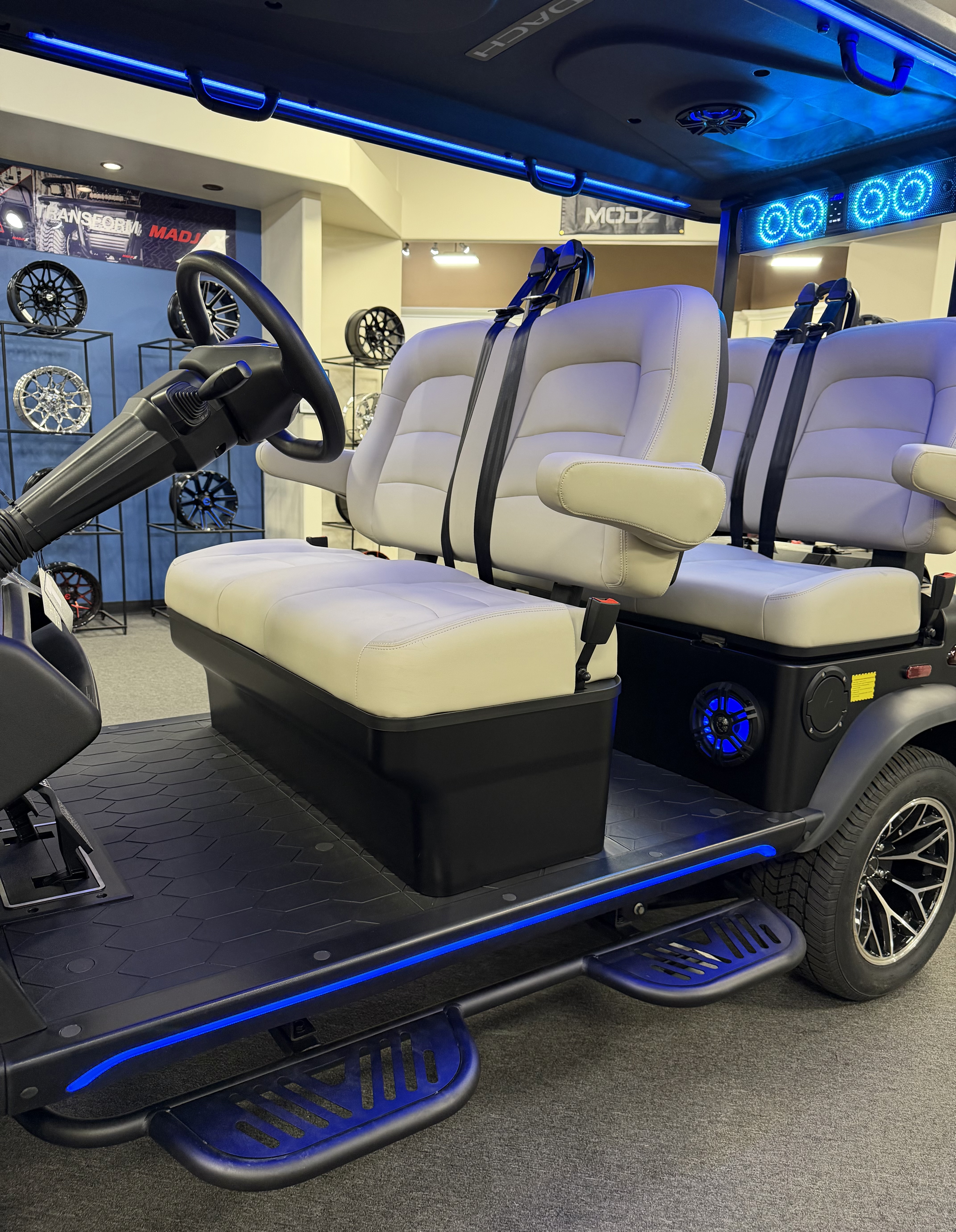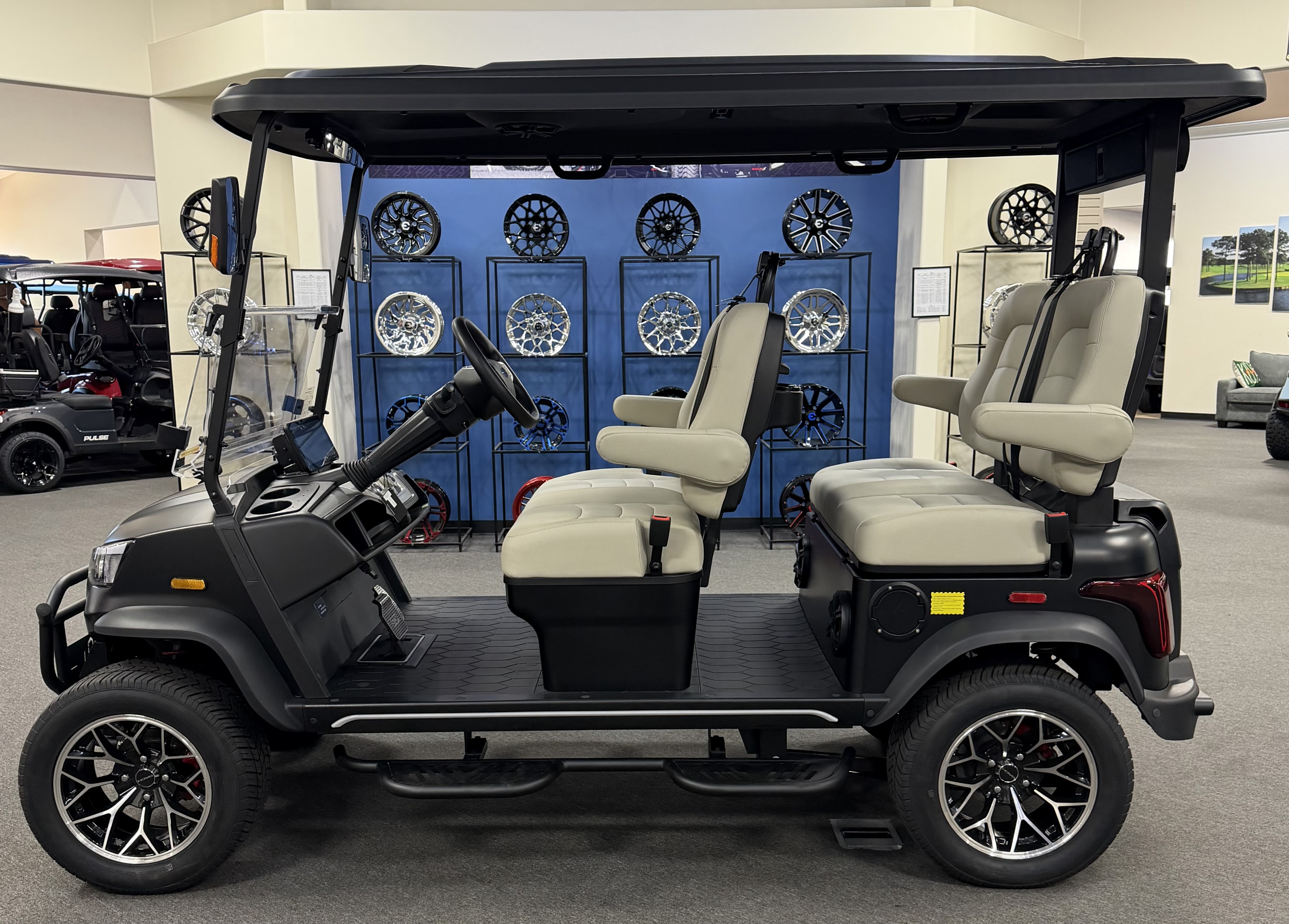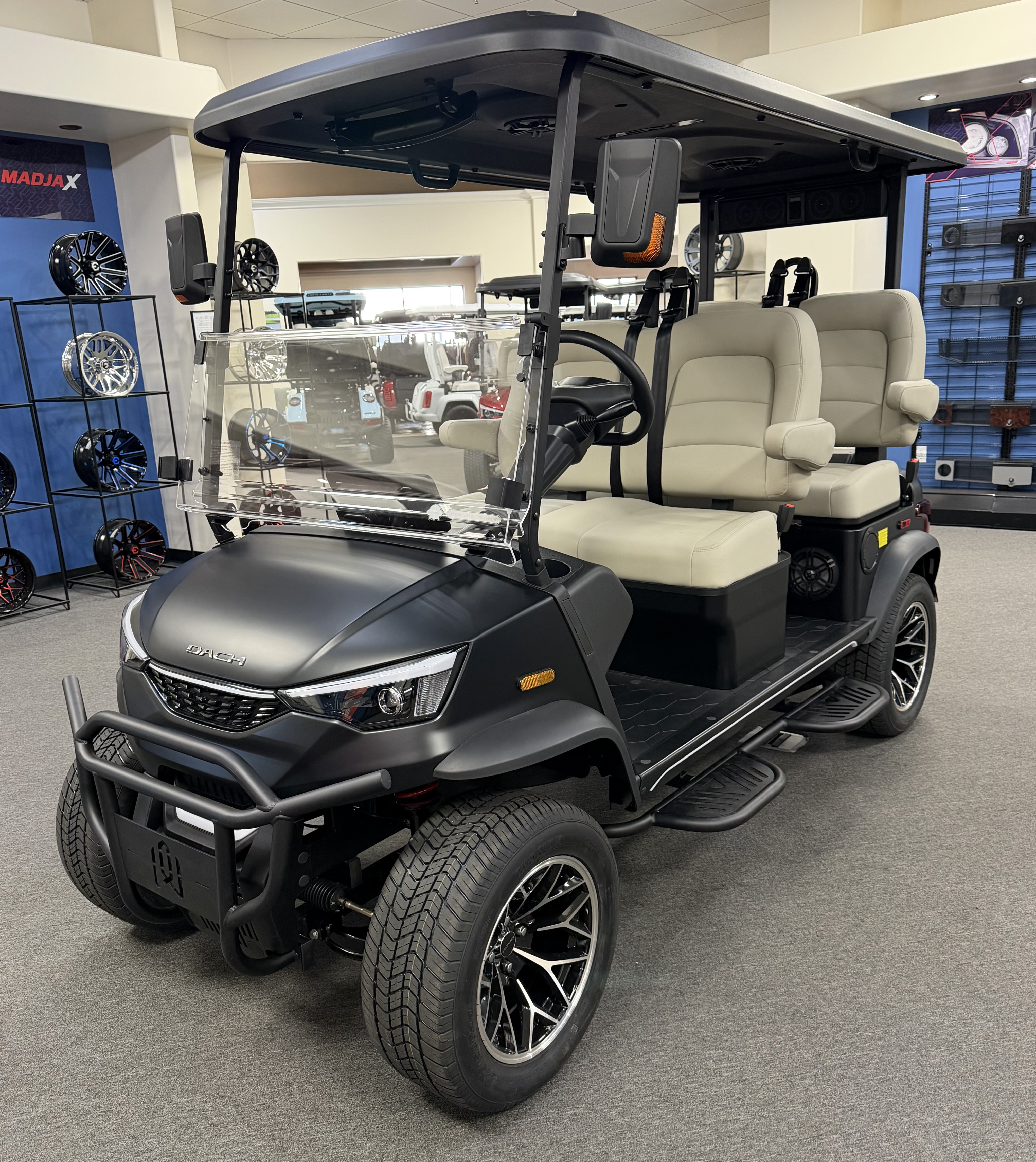 DACH 2026 Apollo Elite 4: 4 Seat Forward Facing Golf Cart, 72V/105AH Lithium Battery, New Add Ons to the Elite, ( Larger Removable Rear Storage, Dual-Function Charging & Discharging Port, Two Extra 6.5” Speakers, Side Trim LED Lighting Strips, Dome Light Switch Off/On Capabilities ) 12.3” Touch Screen, Backup Camera, Apple/Android Carplay, Bluetooth soundbar, Roof Lining includes 2- 6 ½” speakers, Ambient lights, Roof logo light, High mounted brake lights, Cruise control ( YES Cruise control) Tilt steering, Wireless phone charging, Turn signal side mirrors, Front LED headlights, Running boards, Push Button Start, Folding armrests, Premier seats, Front push bar, Steering wheel radio controls,4-wheel Disc brakes, and much more. We Also Have a Full Line of Accessory Upgrades Along with Financing Available.