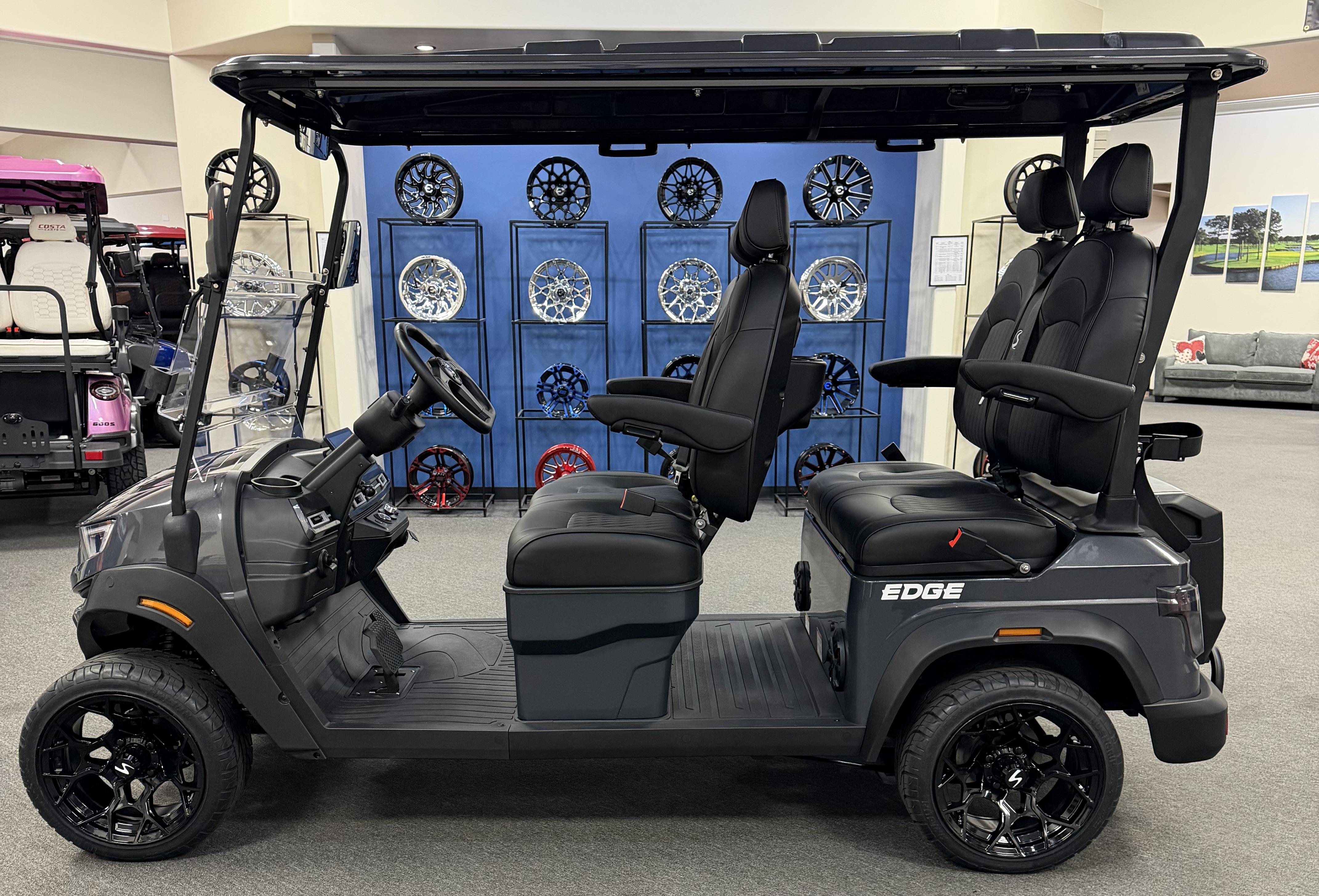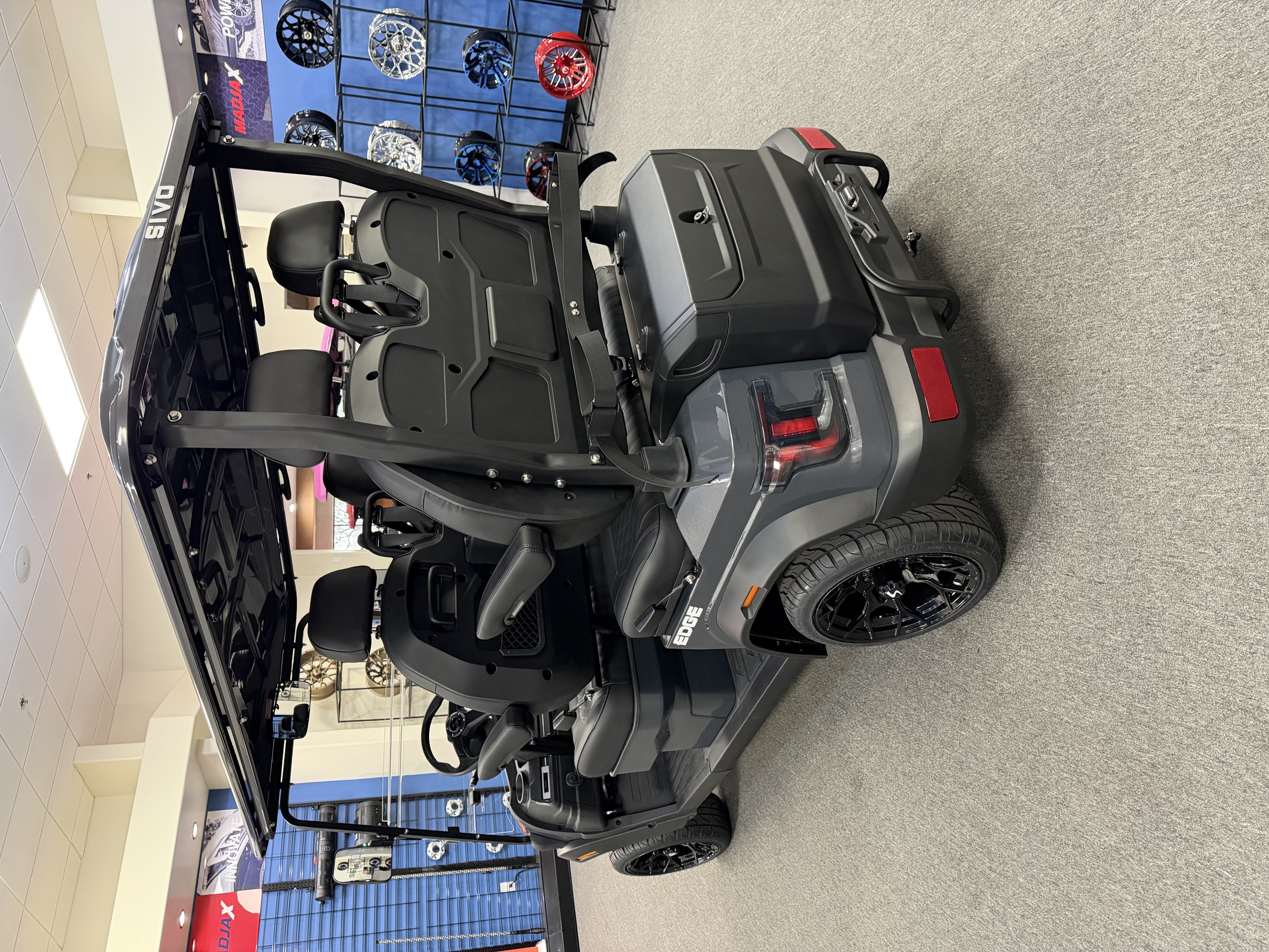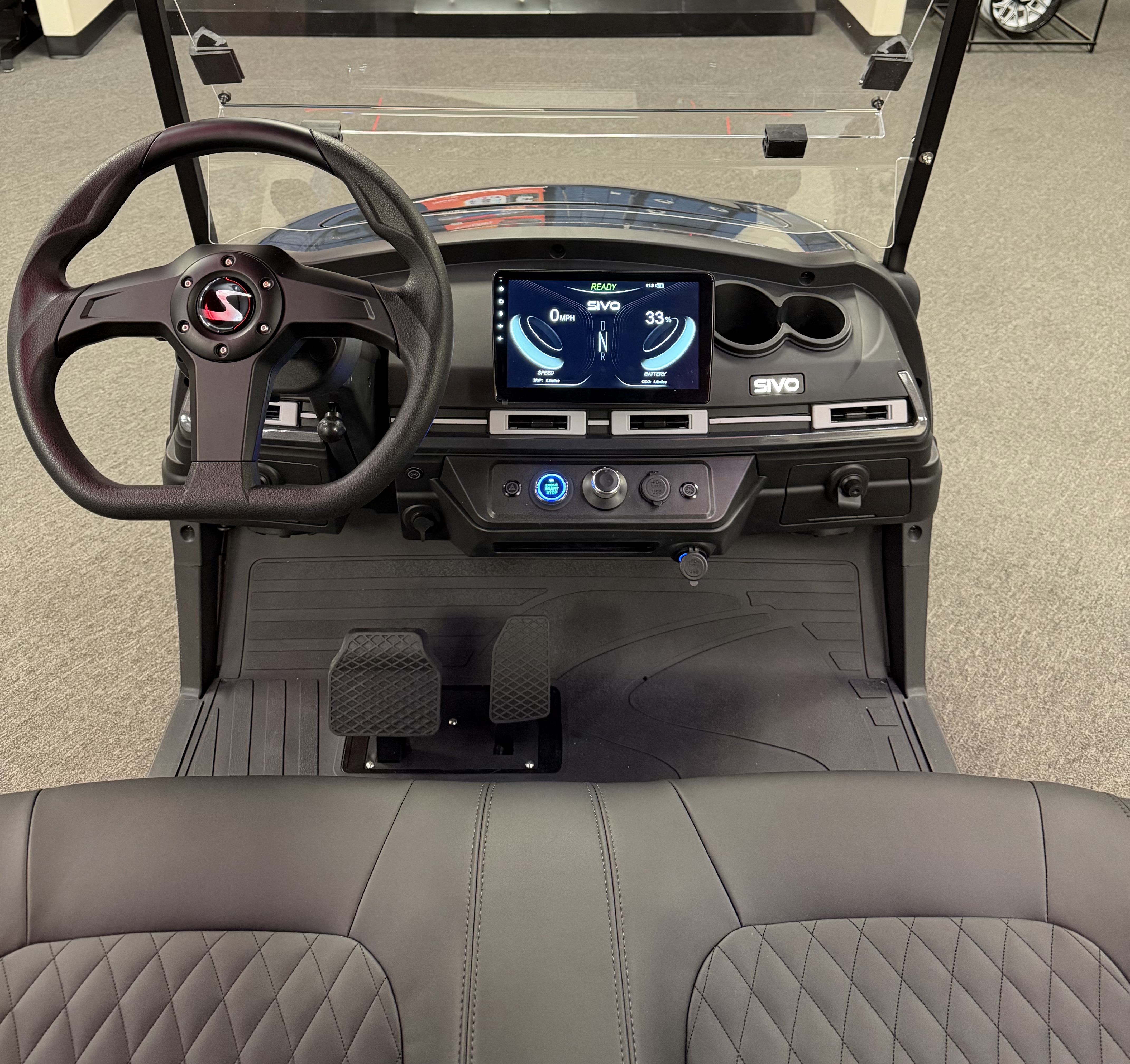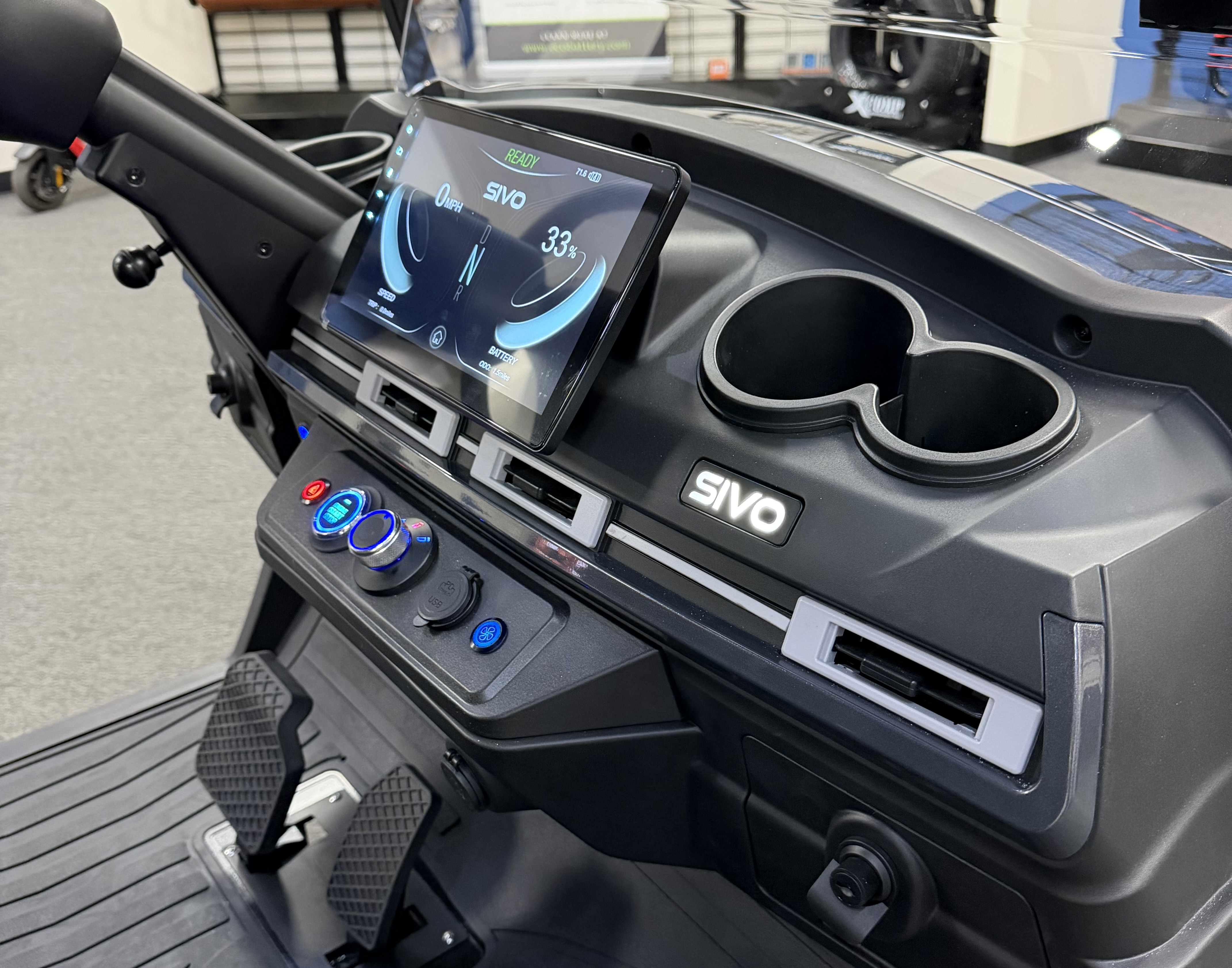 2026 SIVO Edge 4F, Eco Lithium Battery ( 10 Year Warranty ), 10.1” LCD Touch Screen, Apple Car Play, Android Play, Back Up Camera, LED Touch Screen, LED Roof Lights, LED Under Glow Lights, LED Speaker Lights, 3 Speed Cooling Fan System, Keyless/Push Button Start, Adjustable Steering Column, Self-Canceling Turn Signals, Front Trunk, Rear Truck/ With Built In Golf Bag Attachment, Adjustable Arm Rest, Custom 14 Inch Wheels.