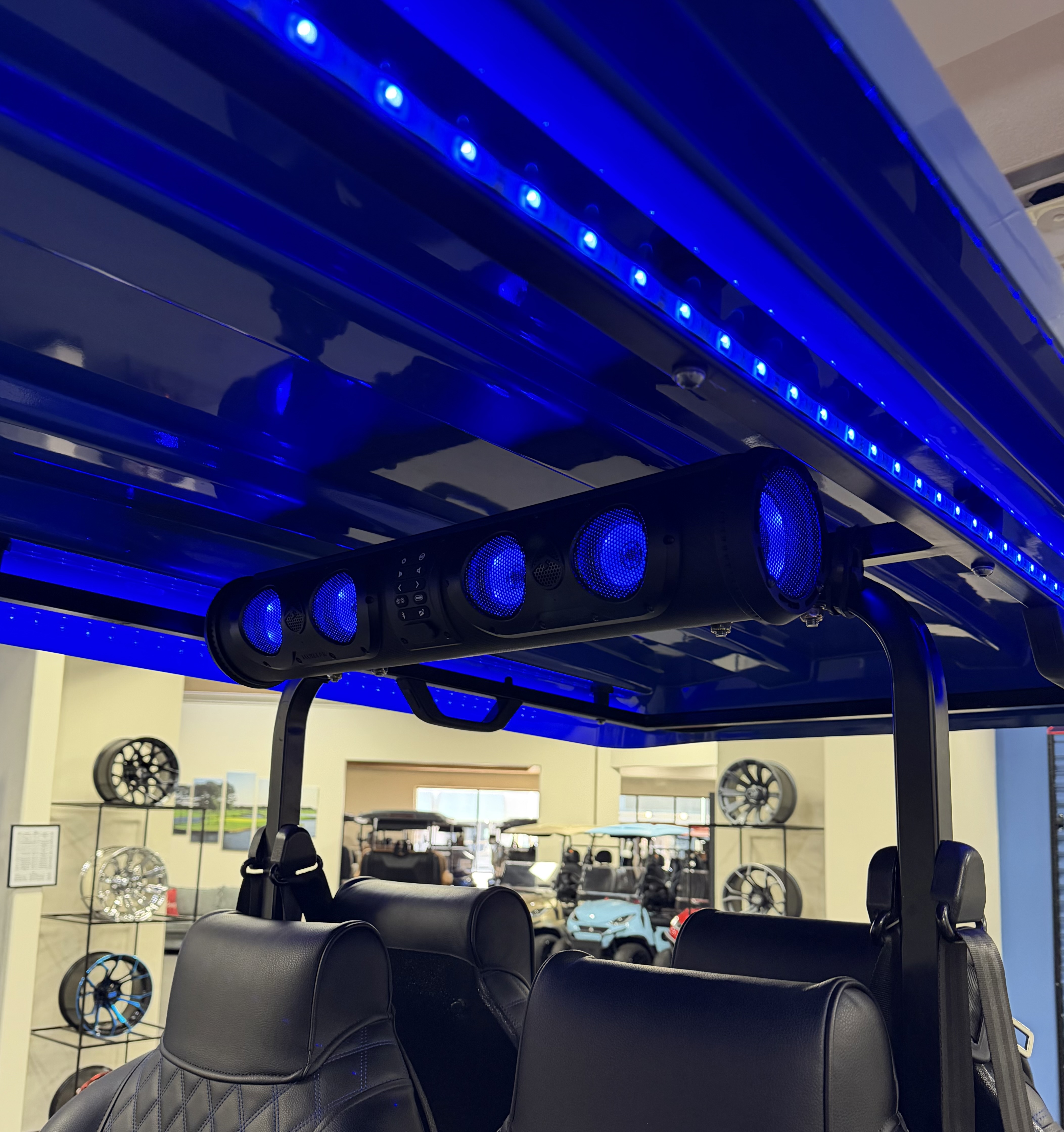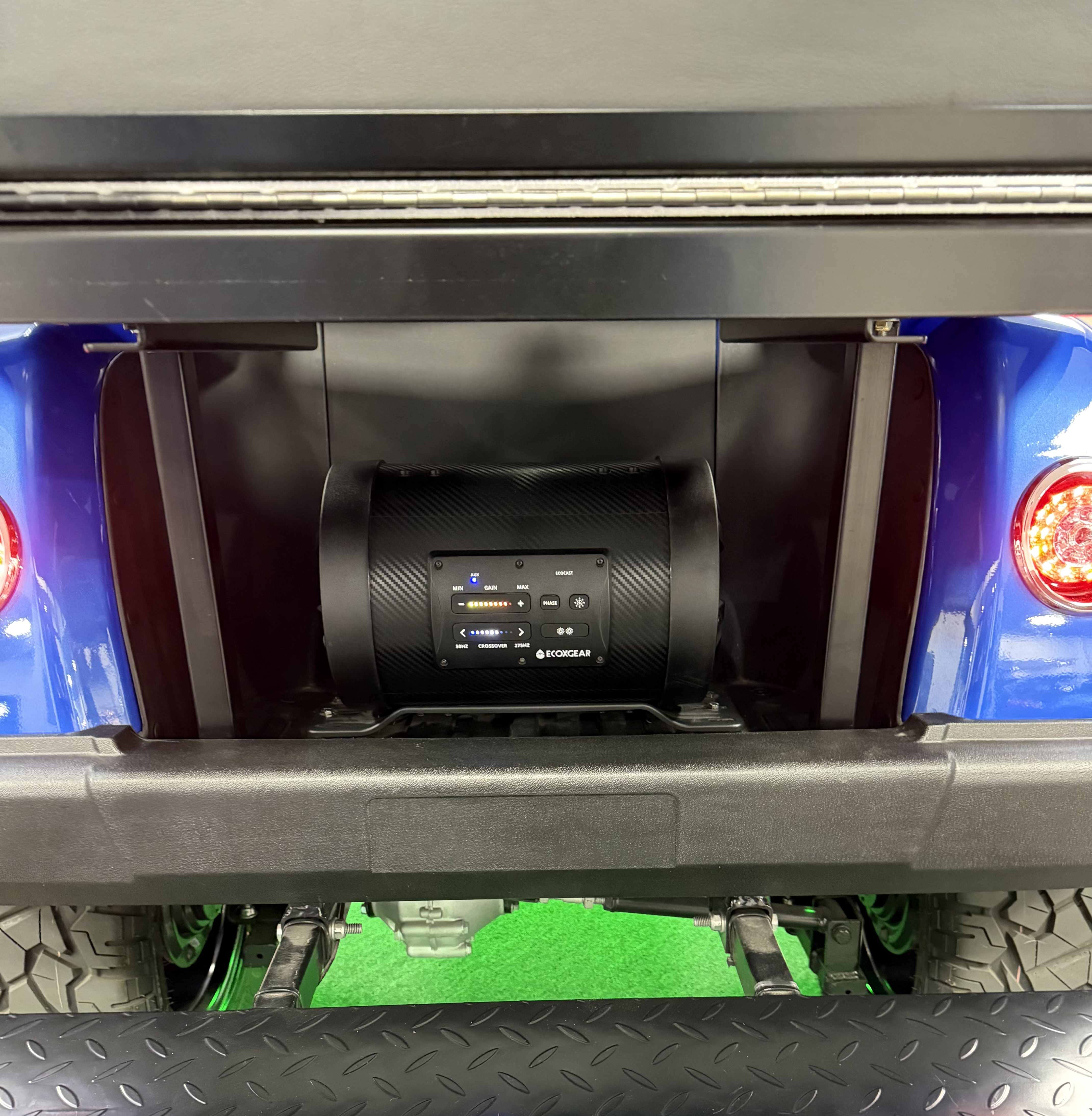 2023 Epic E40L Lifted, Eco Lithium Battery, ECOXGEAR Bluetooth Sound Bar, ECOXGEAR Subwoofer, Upper And Lower LED Lights, LED Light Bar, Backup Camera, Turn Signal Mirrors, Roof Rear Taillights, Flip Rear Seat, Custom Wheels with XCOMP Tires. This Cart Has It All.