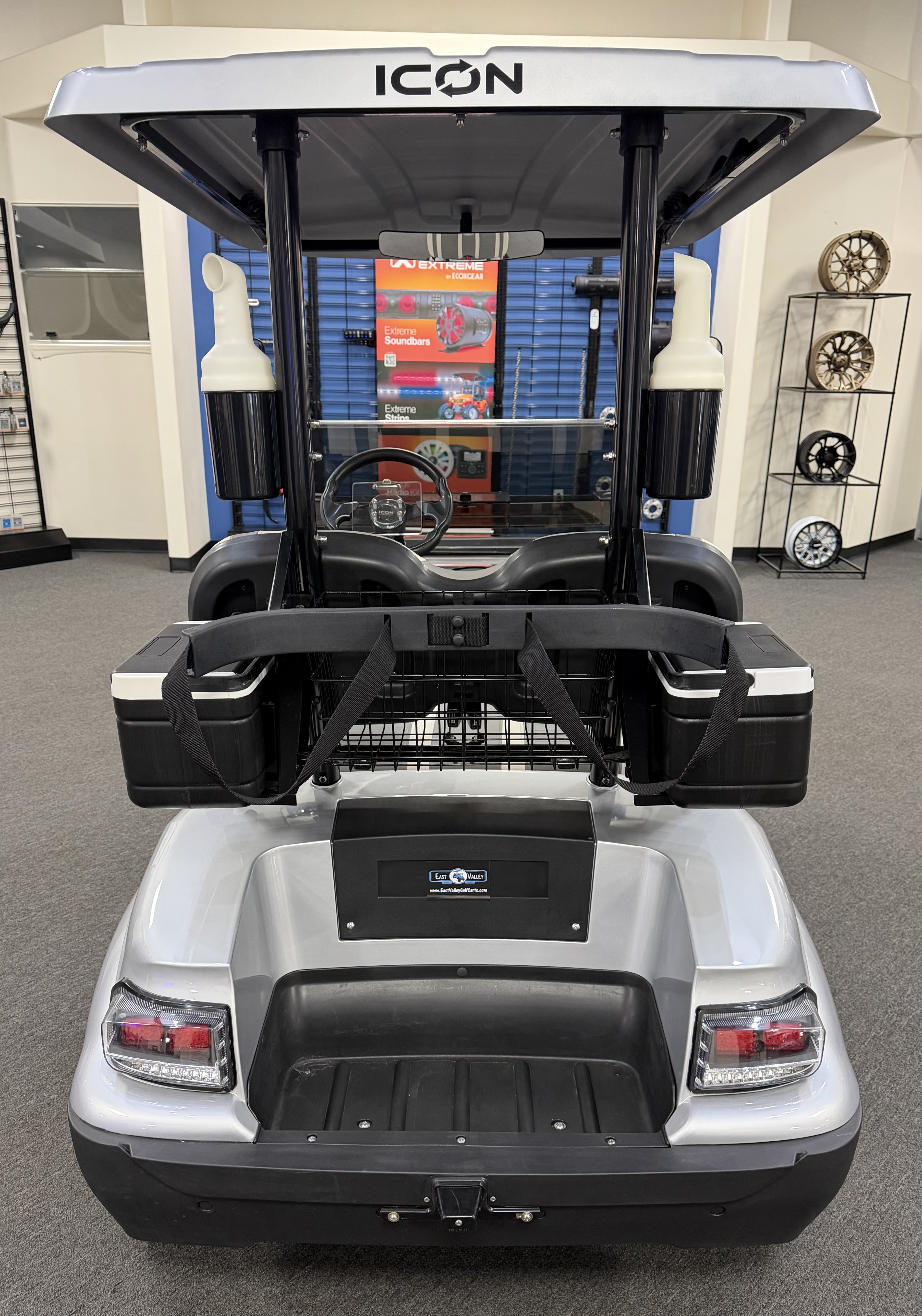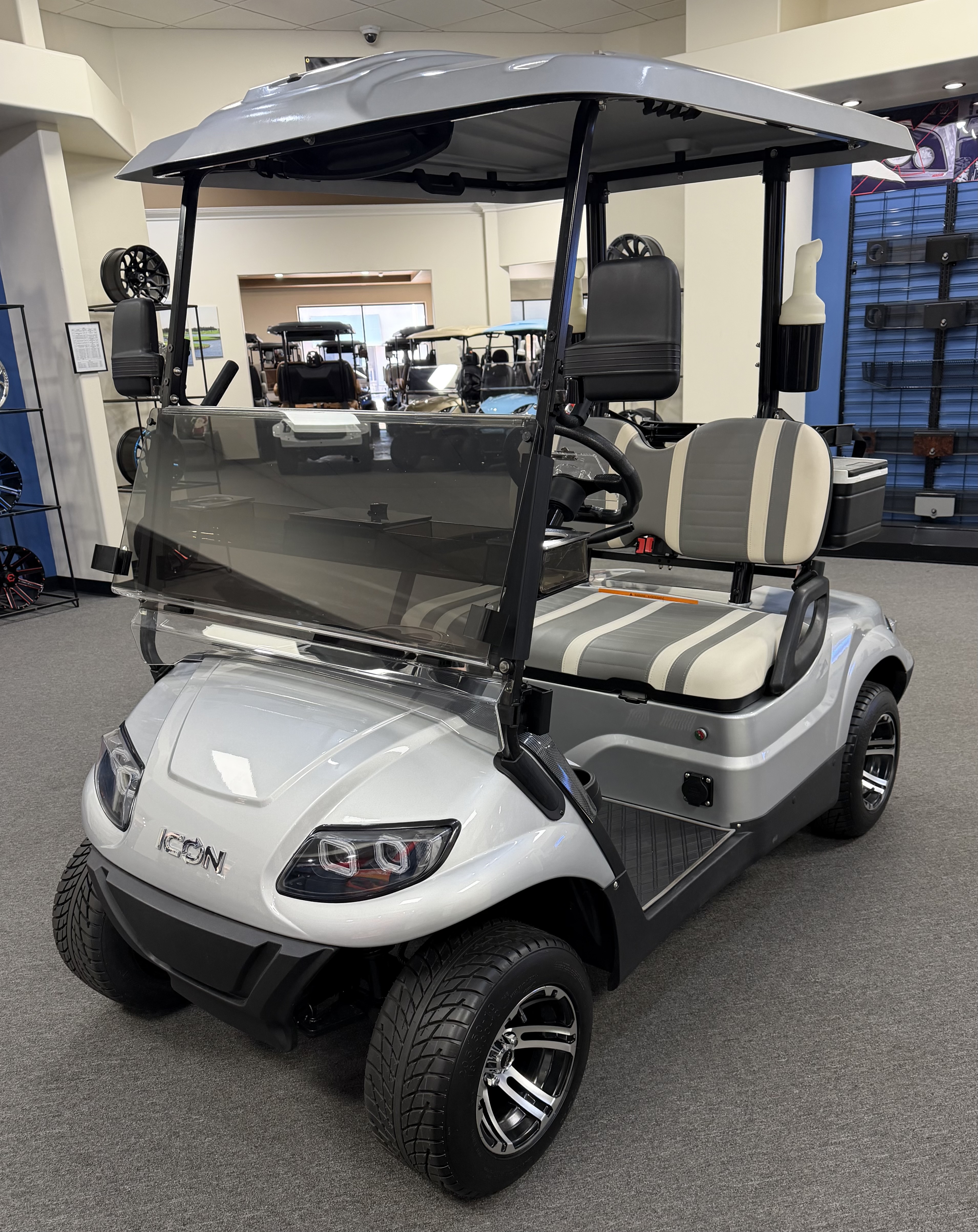 FRESH TRADE.  BRAND NEW ECO BATTERY LITHIUM, 2023 Icon i20 Golf Cart, NEW Eco Battery Lithium With 10 Year Warranty, Xtreme Floor Mate, Interior Clay Basket, Customer Steering Wheel With Score Card Holder, Golf Ball Holders and Dual Coolers.
