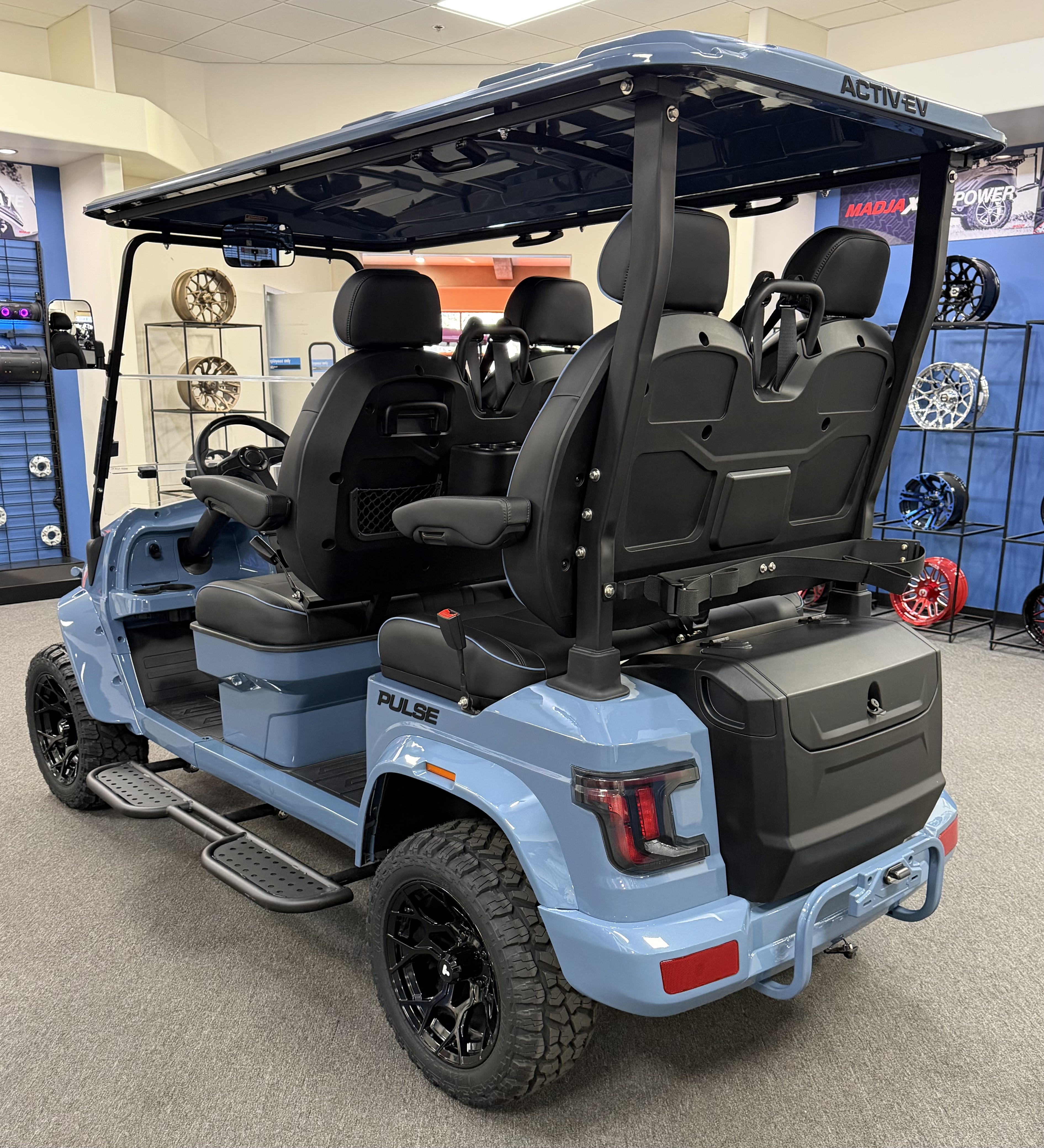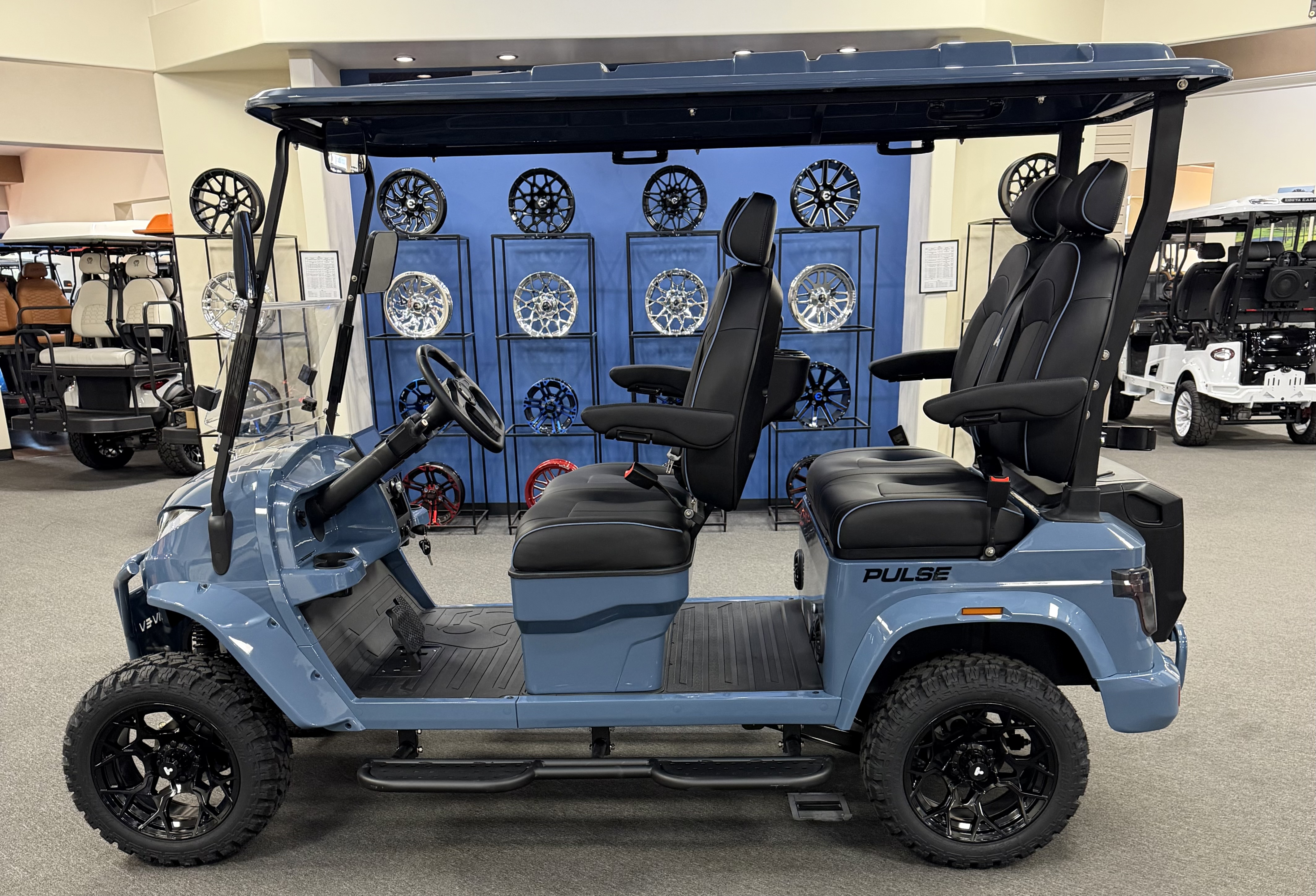 2026 ActivEV Pulse 4PFL, Lifted, Eco Battery Lithium, 10.1” LCD Touch Screen, Apple Car Play, Android Play, Back Up Camera, Wireless Phone Charger, Sound System, Premium Captain’s Chairs, LED Head Lights, LED Turn Signal Mirrors, Adjustable Arm Rest, Unique Keys, Built In Golf Bag Attachment, Rear Storage Box, Running Boards, and Much More. We Also Have a Full Line of Accessory Upgrades Along with Financing Available.